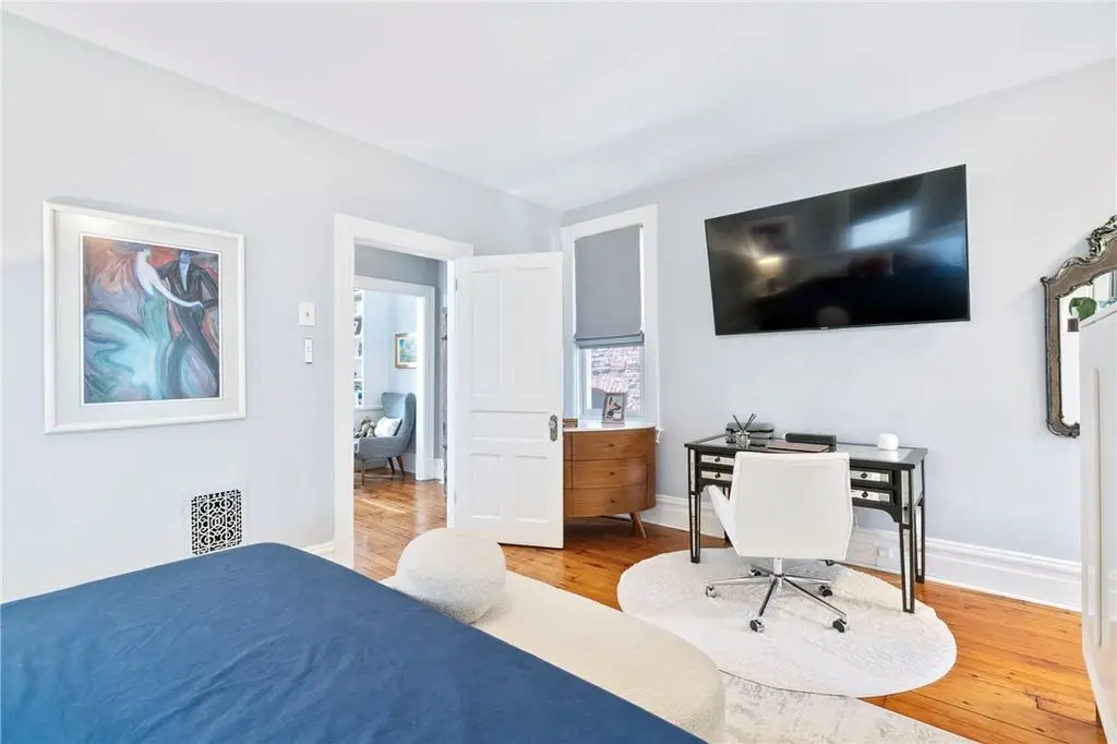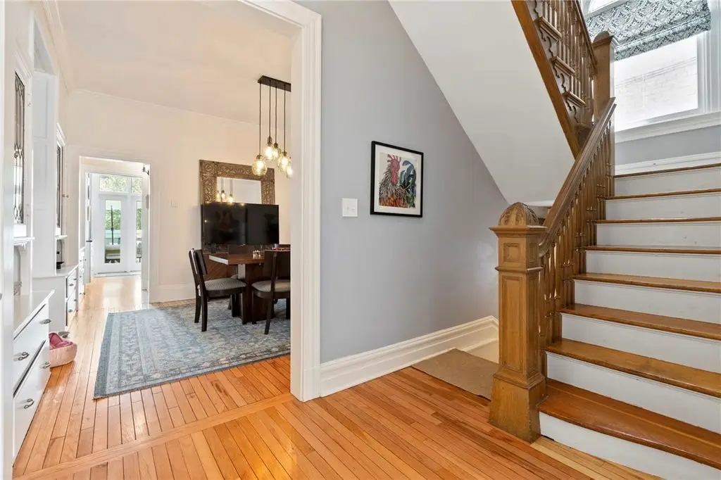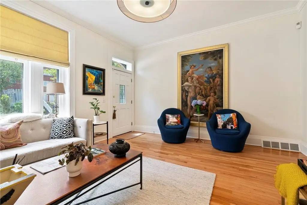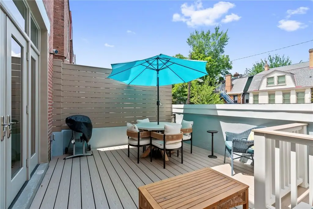 Beautiful Shadyside Brownstone just steps from Walnut Street shopping and dining. High ceilings and light filled rooms grace this chic residence. Glass doors off of white cooks kitchen lead to a beautiful deck and two car garage. Second floor has massive family room with exquisite built ins and master bedroom with new spa like bath and ample closet space. Third level has two full sized bedrooms and bath . New mechanics and tasteful decor make this a must see.