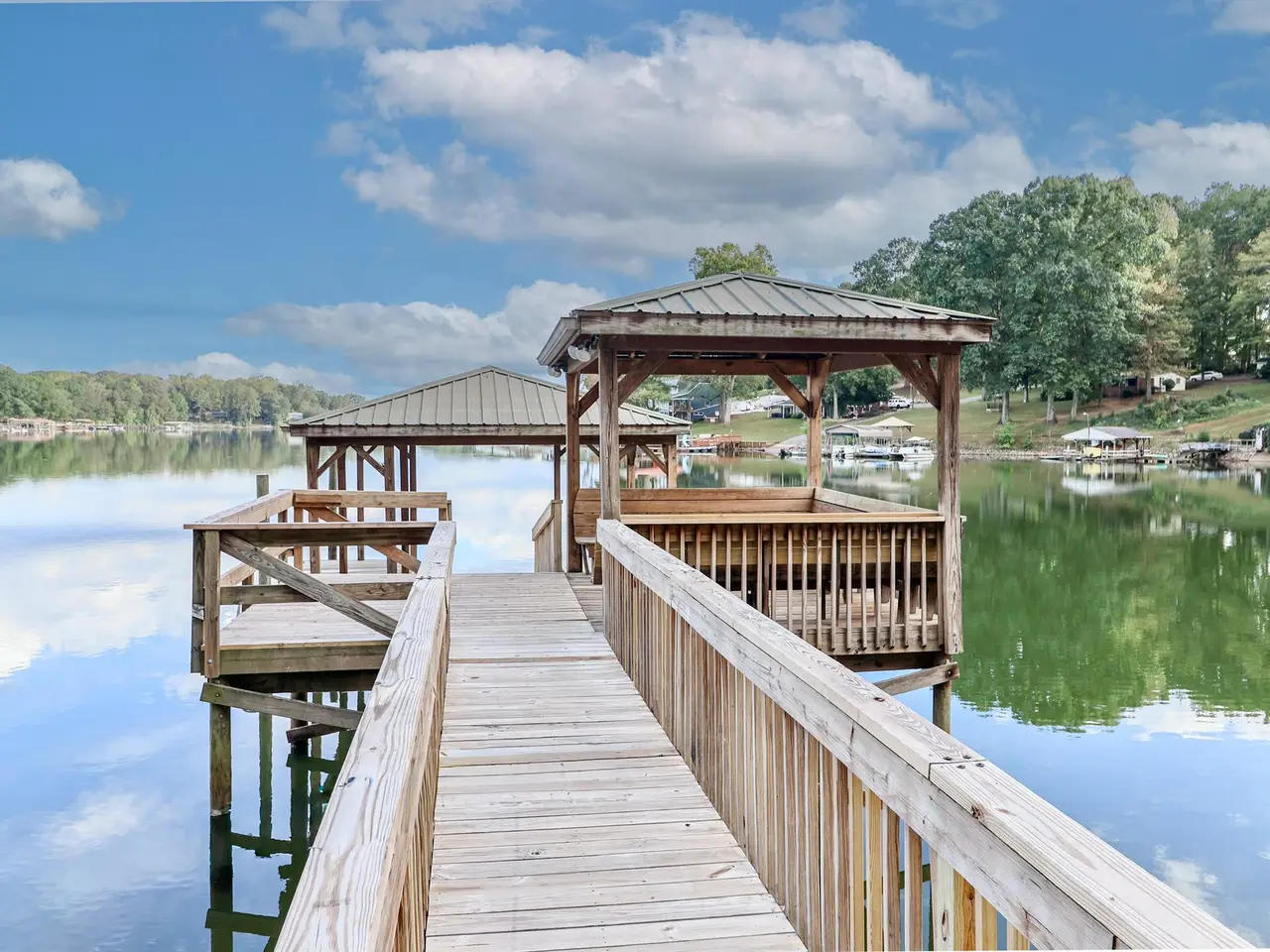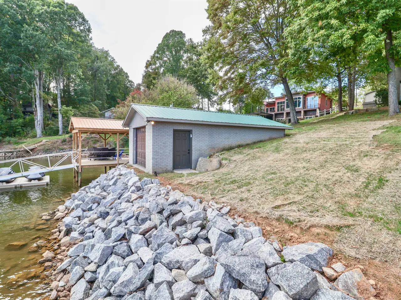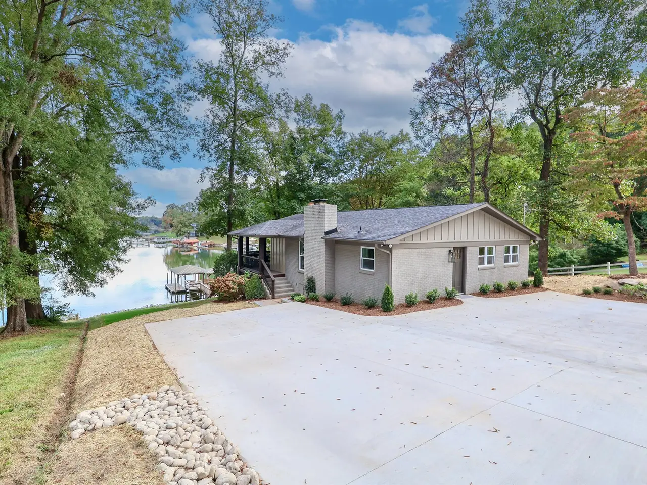 This 1964 lake house has been completely transformed and now looks like 2025 new construction. Every surface has been updated, and you will not be disappointed. Gutted to the studs with new plumbing and electrical throughout, this home features a fabulous new kitchen with modern appliances, a living room with fireplace, and an amazing 675 square foot covered deck with a fireplace and million-dollar lake views. The main level offers two bedrooms and one full bath, along with a half bath. The walkout basement includes a family room with working fireplace, sink, and refrigerator, plus two additional rooms that can serve as a bunk room and flex space, along with a full bath. The septic system was installed in 2015 and is rated for two bedrooms, but the home provides plenty of space to spread out with family and guests. Additional updates include an electric water heater (2025), furnace and central air (2015), roof (2015), and two thermostats for upstairs and downstairs. The dock has new electrical and a fan, and the garage with a new door offers lake views and works well for storage or a workshop, but is not suitable for vehicles or boats. Exterior updates include a new seawall, new driveway and parking areas, fresh landscaping, and new steps leading to the dock. Mountain Creek Park is located within one mile of the property.