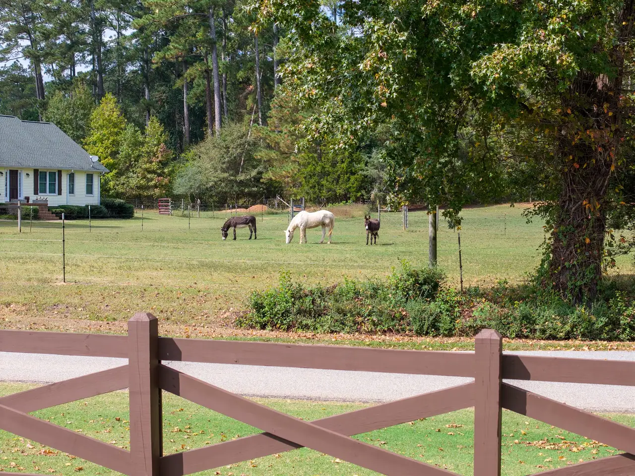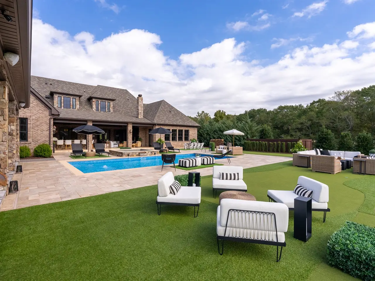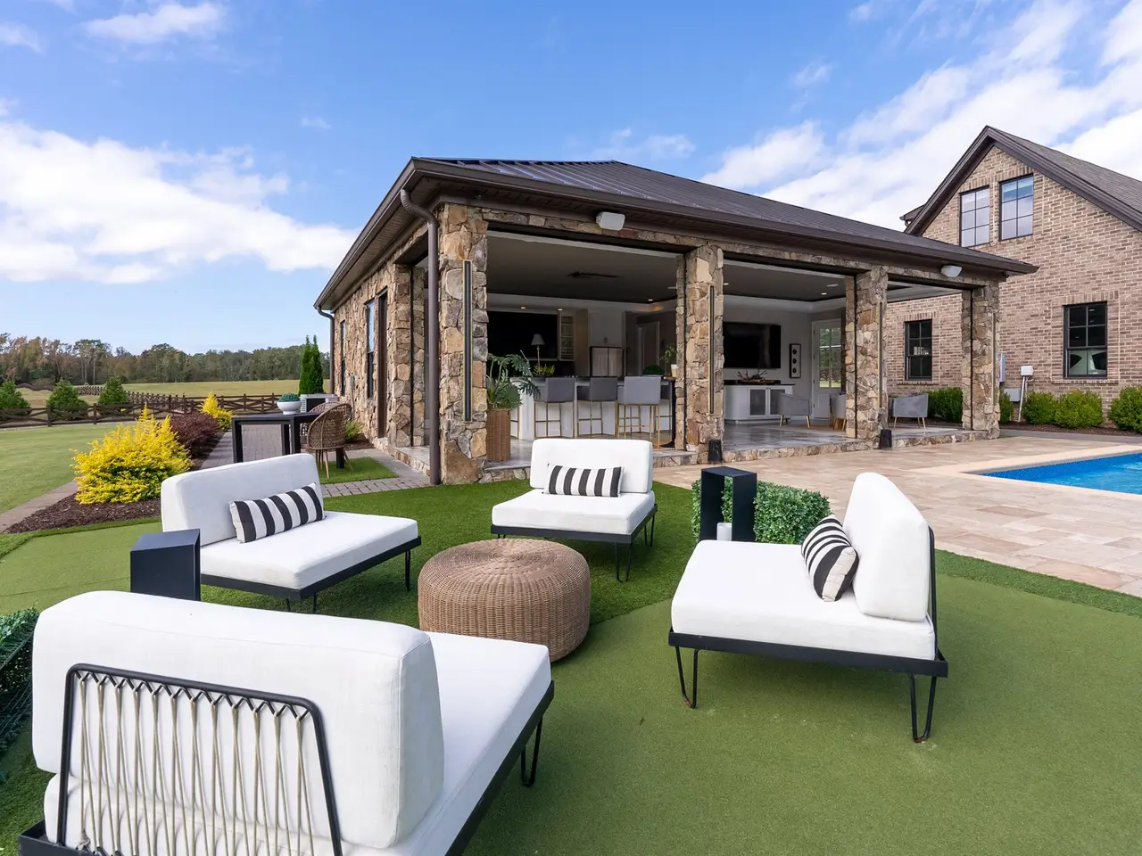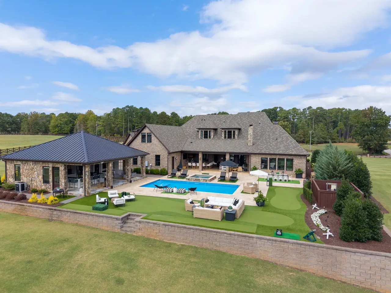 Imagine more than ten acres of pristine, perfectly curated land with an extraordinary home designed for entertaining at every level. Agape Acres Estate is tucked behind private gates, down a tree-lined paver driveway where a graceful fountain welcomes you home. This grand estate feels worlds away from everything, yet remains perfectly positioned close to all modern amenities in Simpsonville, SC. While every corner holds its own charm, the backyard truly steals the show- breathtaking, functional, and unforgettable. A sparkling saltwater pool with a spillover spa glistens beneath the Carolina blue sky, with a nearby putting green ready for friendly poolside competitions. An expansive covered porch spans the width of the home, featuring an outdoor living room, wood-burning fireplace, and full kitchen/grilling area. This space can be fully enclosed and climate-controlled for year-round comfort. Perfect for hosting holiday gatherings that flow effortlessly from indoors to the outdoor fireplace. Enjoy your morning coffee as the mist rises off the pond or unwind fireside beneath the stars. From game days to quiet nights, all the outdoor space has been intentionally designed for every South Carolina season. The pool house feels like a private resort suite, luxurious, stylish, and perfectly situated in the Carolina countryside. Inside, you'll find a hotel-inspired bedroom with ensuite luxury bath overlooking the lush backyard, an additional full guest bath, laundry area, and an attached garage with extensive storage. The poolside kitchen features a large hibachi grill ideal for brunches or alfresco dinners, and like the main porch, this entire area can be fully enclosed, and temperature controlled. These are the spaces where good food and laughter linger long after the plates are cleared. The land itself invites exploration, whether by four-wheeler or alongside a few barnyard friends. Horses or goats would feel right at home here, grazing by the pond stocked with Large Mouth Bass and Bream. The perfect spot for a quiet afternoon of fishing. Roughly four acres are fully fenced, offering a sense of peace, privacy, and panoramic views at every turn. Inside, the same sense of warmth and refinement continues. Rich hardwoods and elegant tile run throughout, with no carpet in sight. The great room, anchored by a grand fireplace and custom built-ins, flows seamlessly into the chef's kitchen, breakfast area, and elegant dining room. The formal dining space feels both sophisticated and inviting, complete with an adjoining bar that turns dinner parties into lasting memories. Imagine hosting the upcoming holidays in this elegant yet comfortable setting. The main-level primary bedroom suite is a serene retreat with a showstopper gas-log fireplace, sitting area, and two custom closets with washer/dryer area. It has the most amazing view of the backyard/pool. Two additional bedrooms with full ensuite baths, an elegant office or sitting room with a gas fireplace, and a home theater room with a wet bar/kitchenette for movie nights are all located on the main level. You'll also find two conveniently placed powder rooms and a spacious walk-in laundry room on this floor. Head to the second level to find two additional ensuite bedrooms, each with beautifully custom-tiled baths, along with an extra office, and a spacious recreation/living area featuring a well-appointed kitchenette. This home is ideal for multi-generational living or hosting long-term guests. With over ten acres of land, there's enough room to add future home sites or additional amenities. Every detail of this grand estate has been carefully curated, from the custom ceiling designs and designer lighting, to the fully finished, epoxy-coated five-car garage. Every closet custom, and every space designed to showcase exceptional craftsmanship. This is a home that seamlessly blends indoor and outdoor living spaces together. You will certainly have a hard time choosing your favorite spot.