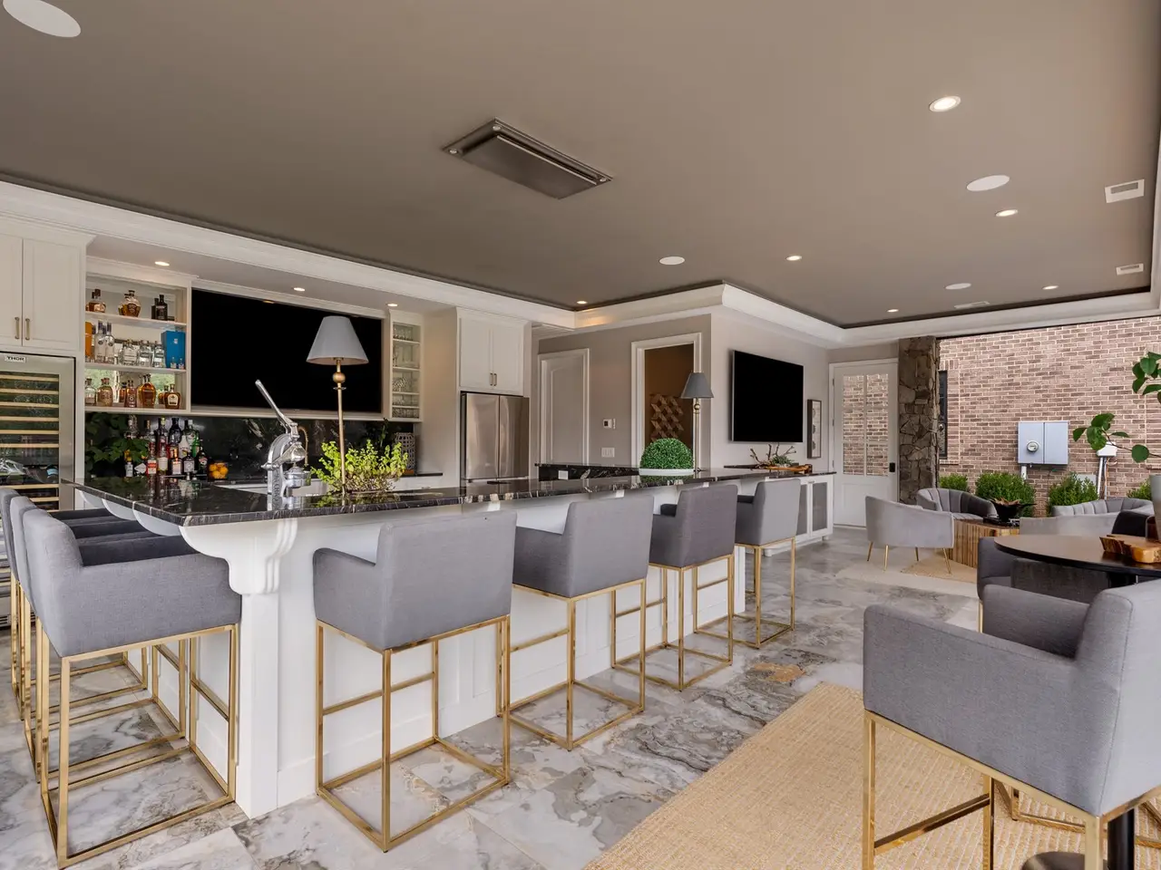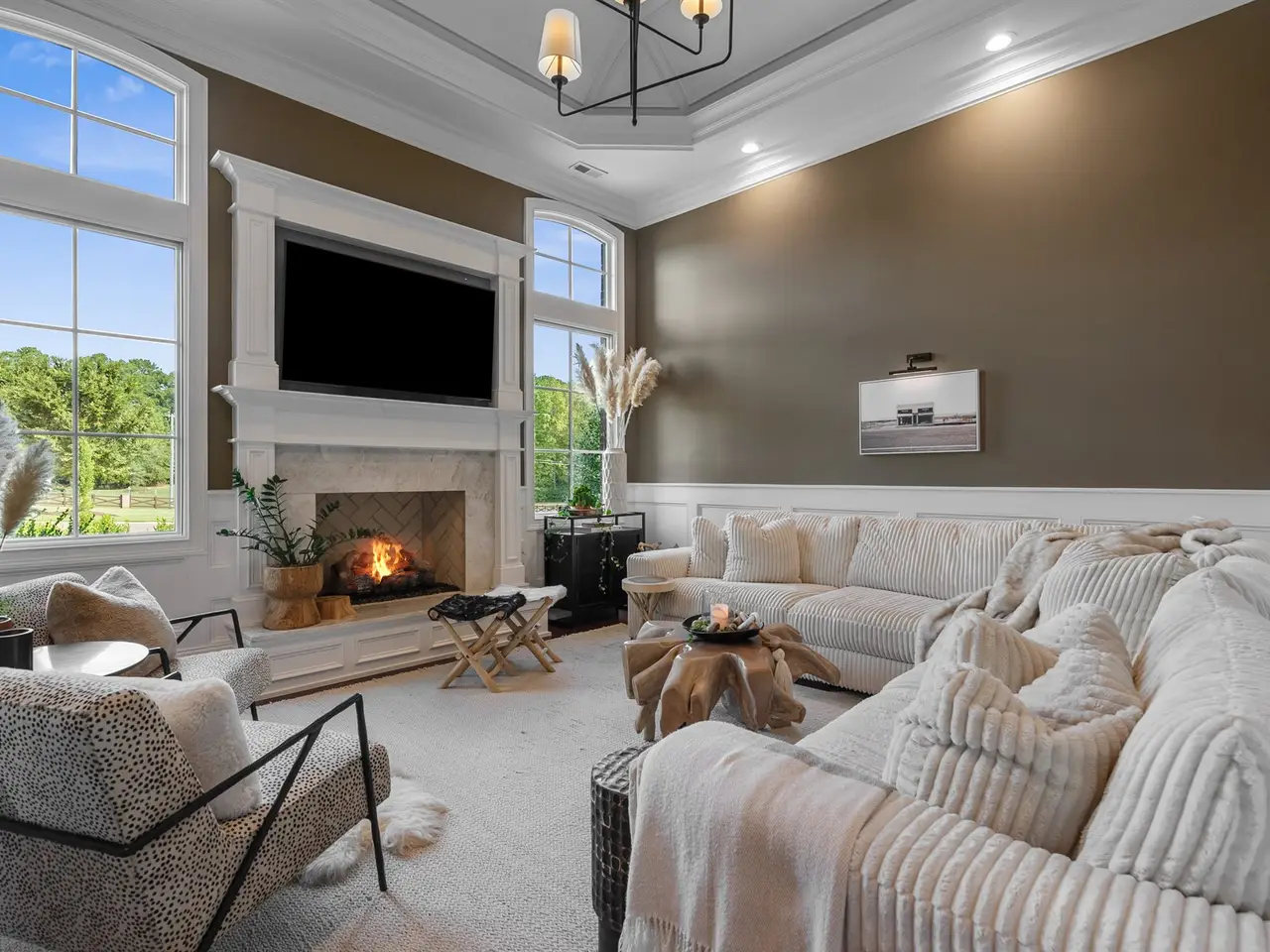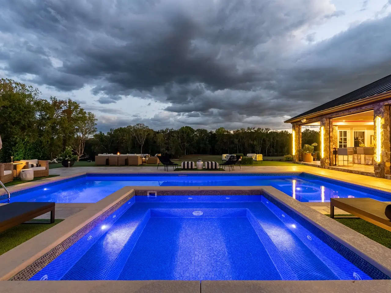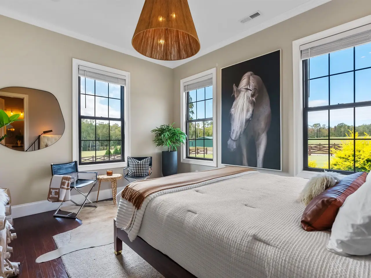 Imagine more than ten acres of pristine, perfectly curated land with an extraordinary home designed for entertaining at every level. Agape Acres Estate is tucked behind private gates, down a tree-lined paver driveway where a graceful fountain welcomes you home. This grand estate feels worlds away from everything, yet remains perfectly positioned close to all modern amenities in Simpsonville, SC. While every corner holds its own charm, the backyard truly steals the show- breathtaking, functional, and unforgettable. A sparkling saltwater pool with a spillover spa glistens beneath the Carolina blue sky, with a nearby putting green ready for friendly poolside competitions. An expansive covered porch spans the width of the home, featuring an outdoor living room, wood-burning fireplace, and full kitchen/grilling area. This space can be fully enclosed and climate-controlled for year-round comfort. Perfect for hosting holiday gatherings that flow effortlessly from indoors to the outdoor fireplace. Enjoy your morning coffee as the mist rises off the pond or unwind fireside beneath the stars. From game days to quiet nights, all the outdoor space has been intentionally designed for every South Carolina season. The pool house feels like a private resort suite, luxurious, stylish, and perfectly situated in the Carolina countryside. Inside, you'll find a hotel-inspired bedroom with ensuite luxury bath overlooking the lush backyard, an additional full guest bath, laundry area, and an attached garage with extensive storage. The poolside kitchen features a large hibachi grill ideal for brunches or alfresco dinners, and like the main porch, this entire area can be fully enclosed, and temperature controlled. These are the spaces where good food and laughter linger long after the plates are cleared. The land itself invites exploration, whether by four-wheeler or alongside a few barnyard friends. Horses or goats would feel right at home here, grazing by the pond stocked with Large Mouth Bass and Bream. The perfect spot for a quiet afternoon of fishing. Roughly four acres are fully fenced, offering a sense of peace, privacy, and panoramic views at every turn. Inside, the same sense of warmth and refinement continues. Rich hardwoods and elegant tile run throughout, with no carpet in sight. The great room, anchored by a grand fireplace and custom built-ins, flows seamlessly into the chef's kitchen, breakfast area, and elegant dining room. The formal dining space feels both sophisticated and inviting, complete with an adjoining bar that turns dinner parties into lasting memories. Imagine hosting the upcoming holidays in this elegant yet comfortable setting. The main-level primary bedroom suite is a serene retreat with a showstopper gas-log fireplace, sitting area, and two custom closets with washer/dryer area. It has the most amazing view of the backyard/pool. Two additional bedrooms with full ensuite baths, an elegant office or sitting room with a gas fireplace, and a home theater room with a wet bar/kitchenette for movie nights are all located on the main level. You'll also find two conveniently placed powder rooms and a spacious walk-in laundry room on this floor. Head to the second level to find two additional ensuite bedrooms, each with beautifully custom-tiled baths, along with an extra office, and a spacious recreation/living area featuring a well-appointed kitchenette. This home is ideal for multi-generational living or hosting long-term guests. With over ten acres of land, there's enough room to add future home sites or additional amenities. Every detail of this grand estate has been carefully curated, from the custom ceiling designs and designer lighting, to the fully finished, epoxy-coated five-car garage. Every closet custom, and every space designed to showcase exceptional craftsmanship. This is a home that seamlessly blends indoor and outdoor living spaces together. You will certainly have a hard time choosing your favorite spot.