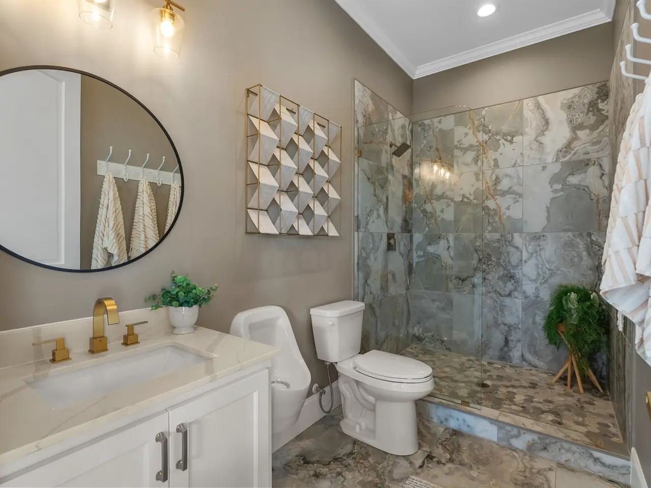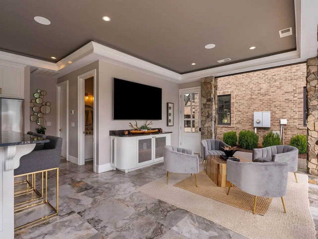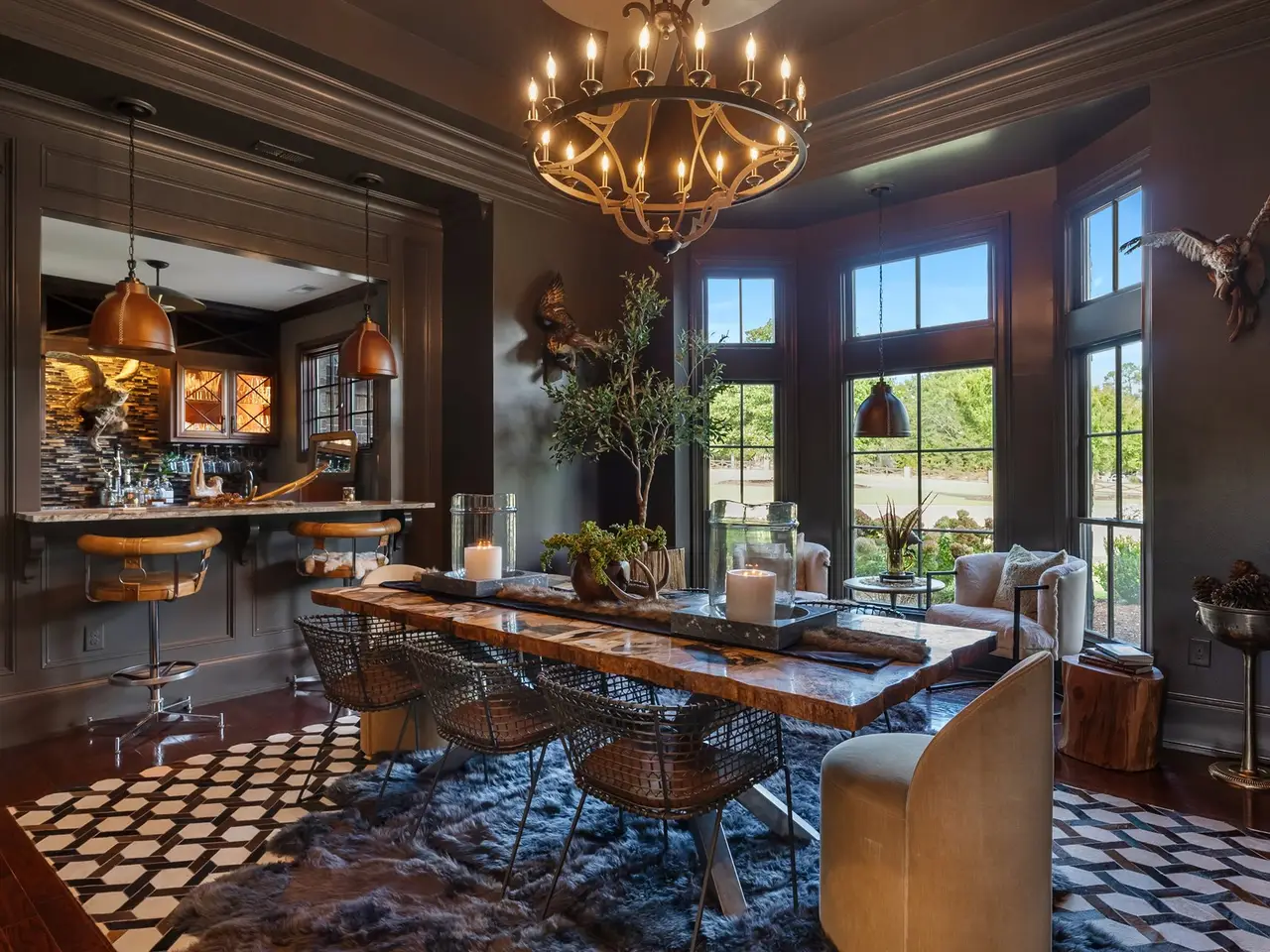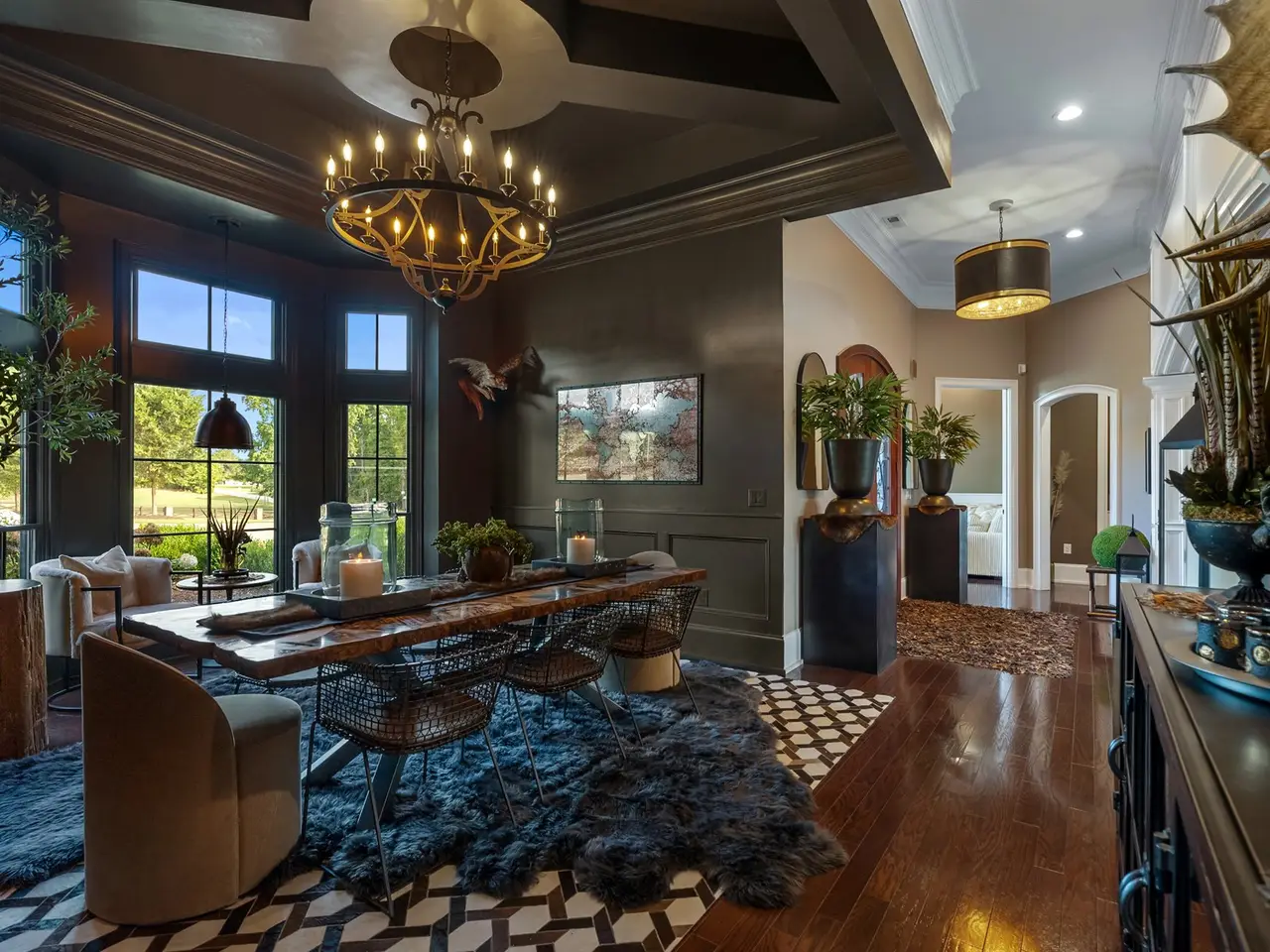 Imagine more than ten acres of pristine, perfectly curated land with an extraordinary home designed for entertaining at every level. Agape Acres Estate is tucked behind private gates, down a tree-lined paver driveway where a graceful fountain welcomes you home. This grand estate feels worlds away from everything, yet remains perfectly positioned close to all modern amenities in Simpsonville, SC. While every corner holds its own charm, the backyard truly steals the show- breathtaking, functional, and unforgettable. A sparkling saltwater pool with a spillover spa glistens beneath the Carolina blue sky, with a nearby putting green ready for friendly poolside competitions. An expansive covered porch spans the width of the home, featuring an outdoor living room, wood-burning fireplace, and full kitchen/grilling area. This space can be fully enclosed and climate-controlled for year-round comfort. Perfect for hosting holiday gatherings that flow effortlessly from indoors to the outdoor fireplace. Enjoy your morning coffee as the mist rises off the pond or unwind fireside beneath the stars. From game days to quiet nights, all the outdoor space has been intentionally designed for every South Carolina season. The pool house feels like a private resort suite, luxurious, stylish, and perfectly situated in the Carolina countryside. Inside, you'll find a hotel-inspired bedroom with ensuite luxury bath overlooking the lush backyard, an additional full guest bath, laundry area, and an attached garage with extensive storage. The poolside kitchen features a large hibachi grill ideal for brunches or alfresco dinners, and like the main porch, this entire area can be fully enclosed, and temperature controlled. These are the spaces where good food and laughter linger long after the plates are cleared. The land itself invites exploration, whether by four-wheeler or alongside a few barnyard friends. Horses or goats would feel right at home here, grazing by the pond stocked with Large Mouth Bass and Bream. The perfect spot for a quiet afternoon of fishing. Roughly four acres are fully fenced, offering a sense of peace, privacy, and panoramic views at every turn. Inside, the same sense of warmth and refinement continues. Rich hardwoods and elegant tile run throughout, with no carpet in sight. The great room, anchored by a grand fireplace and custom built-ins, flows seamlessly into the chef's kitchen, breakfast area, and elegant dining room. The formal dining space feels both sophisticated and inviting, complete with an adjoining bar that turns dinner parties into lasting memories. Imagine hosting the upcoming holidays in this elegant yet comfortable setting. The main-level primary bedroom suite is a serene retreat with a showstopper gas-log fireplace, sitting area, and two custom closets with washer/dryer area. It has the most amazing view of the backyard/pool. Two additional bedrooms with full ensuite baths, an elegant office or sitting room with a gas fireplace, and a home theater room with a wet bar/kitchenette for movie nights are all located on the main level. You'll also find two conveniently placed powder rooms and a spacious walk-in laundry room on this floor. Head to the second level to find two additional ensuite bedrooms, each with beautifully custom-tiled baths, along with an extra office, and a spacious recreation/living area featuring a well-appointed kitchenette. This home is ideal for multi-generational living or hosting long-term guests. With over ten acres of land, there's enough room to add future home sites or additional amenities. Every detail of this grand estate has been carefully curated, from the custom ceiling designs and designer lighting, to the fully finished, epoxy-coated five-car garage. Every closet custom, and every space designed to showcase exceptional craftsmanship. This is a home that seamlessly blends indoor and outdoor living spaces together. You will certainly have a hard time choosing your favorite spot.