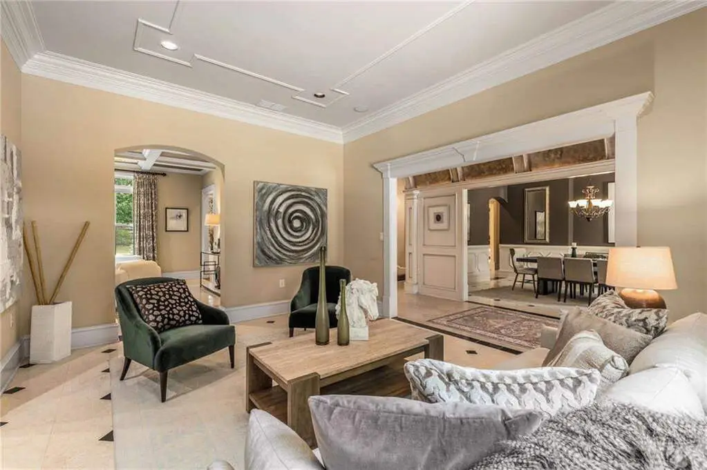 Refined luxury meets resort-style living in this extraordinary 6-bedroom, 5.5-bath European style estate, set on nearly five private acres in the heart of Smyrna. Offering close to 7,000 square feet of beautifully designed living space, this home is the perfect blend of elegance, comfort, and functionality. With a newer roof and a spacious four car garage, the property has been meticulously maintained and thoughtfully upgraded throughout. From the moment you step inside, you're welcomed by a grand chisel stone arch hallway and a dramatic spiral staircase that immediately sets the tone for the craftsmanship and detail that define the home. Imported Italian tile flows underfoot, leading you into the heart of the home a custom-designed chef's kitchen featuring a large island with counter seating, prep sink, custom cabinetry, and stainless steel appliances. The kitchen opens into an inviting informal dining space with a built-in bar, creating an ideal layout for entertaining and everyday living. The main level also features a bright and airy living room filled with natural light, a formal dining room, a cozy great room, a laundry closet, a versatile multi-use room, and a private bedroom with ensuite bath perfectly suited for a nanny suite, in-law suite, or guest accommodations. Movie nights are elevated in the private, theater-style media room, complete with surround sound, a projector, and tiered seating for the ultimate in-home cinema experience. Just beyond the living spaces, step out into your own personal backyard resort. Lush, manicured landscaping surrounds the saltwater pool, jacuzzi, covered outdoor fireplace, firepit, and basketball court offering endless opportunities for relaxation, entertaining, and recreation. Upstairs, the expansive owner's suite is a true sanctuary. Vaulted ceilings and large windows create an open and serene environment, while the luxurious en-suite bath features a soaker tub, walk-in shower, and an oversized custom closet. The suite al