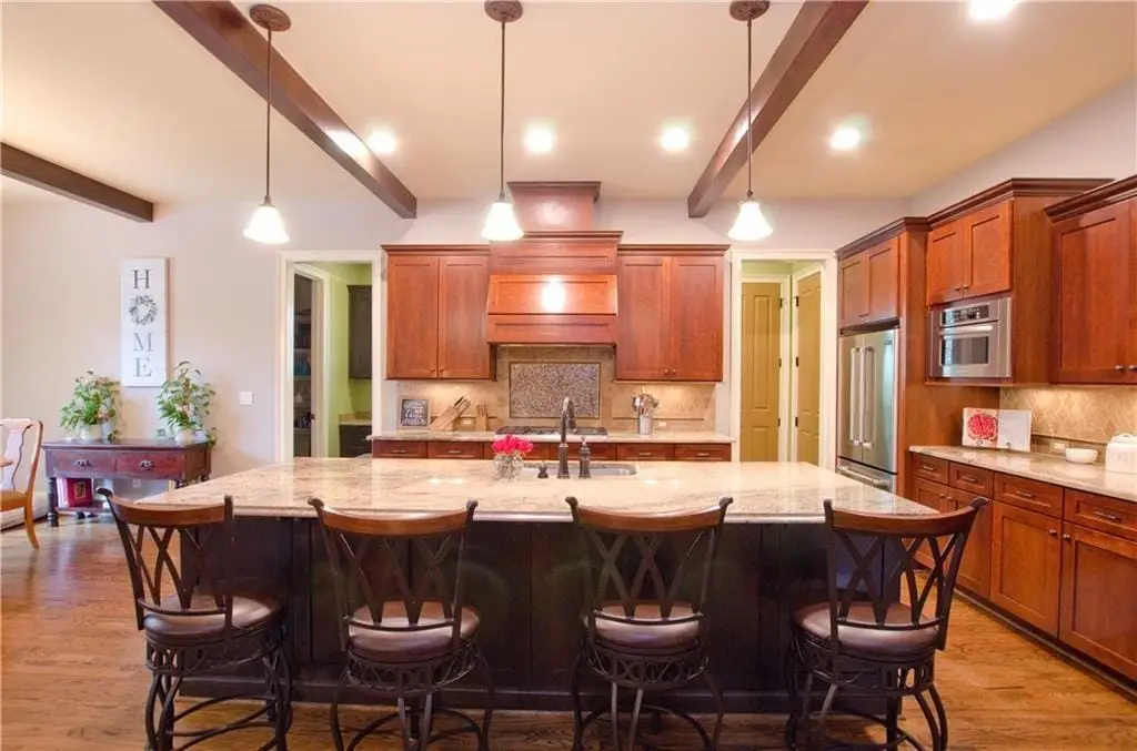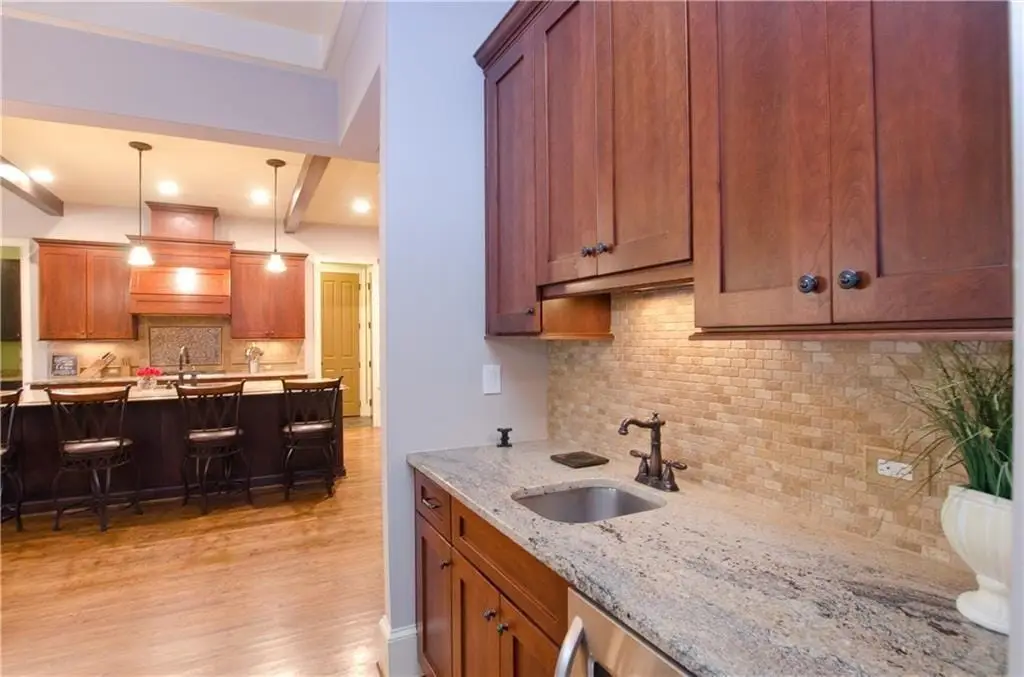 Location, Location, Location! Discover timeless sophistication in this exceptional Monte Hewett-built brick home offers timeless elegance, exceptional craftsmanship, and thoughtful upgrades throughout. Ideally located with easy access to Truist Park, The Battery, Home Depot HQ, major highways, shopping, and dining - this home truly has it all. This stately residence exudes craftmanship and style across all three levels, with rich hardwood floors, soaring ceilings, custom millwork. A welcoming two-story foyer leads to a spacious, open floor plan designed for refined living and effortless entertaining. A formal dining room with a butlers pantry offers the ideal setting for elegant dinner parties, while a private home office with custom built-ins bookcases provides both functionality and charm perfect for work from home professionals. At the heart of the home is a chefs dream kitchen featuring stainless steel appliances, double ovens, stained cabinetry, granite countertops, a large center island, and a generous walk-in pantry. The kitchen flows seamlessly into the impressive great room, complete with exposed wood beams, a striking stone fireplace with gas logs, custom built-ins bookcases, a wall of windows and a wet bar with a wine cooler. Retreat upstairs to a luxurious primary suite complete with a private sitting area, trey ceiling, and spa-inspired bath featuring dual vanities, a whirlpool tub, frameless glass shower, and a fully customized walk-in closet. Three additional spacious bedrooms ensure versatility for family, guests, or a second office. The fully finished terrace level - featuring a custom bar, wine cellar, fireside den with built-ins bookcases, exercise room, full bath, and a spacious game/billiards room for hosting in style. Seamless indoor-outdoor living includes a serene, screened porch, open-air deck, and a lower-level patio overlooking the professionally landscaped, irrigated yard - your private oasis in the city. This distinguished home combines elegance, comfort, and convenience in a premier community - offering a lifestyle of true luxury.