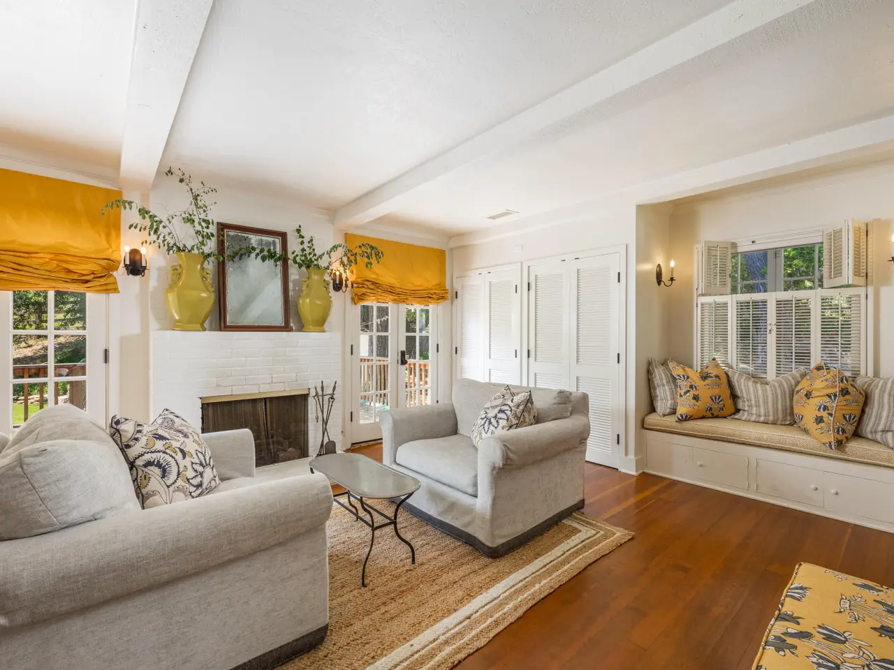 Nestled along the Alamo Pintado wine trail, this enchanting 37-plus-acre estate is located in the heart of Santa Ynez Valley, within the sought-after Ballard School District. This private retreat offers a sense of home and quality, evoking early Santa Ynez and California ranch living. The property's in-town location provides convenience, while its secluded setting among majestic old-growth oak trees ensures privacy. A gated entrance leads to a tree-lined driveway, flanked by antique stone pillars, winding over a bridge and through park-like grounds, creating a sanctuary-like atmosphere. The 1930s farmhouse is nestled amid mature trees and a seasonal creek. This classic California ranch house exudes warmth and charm, featuring a sun-filled living room with a large wood-burning fireplace... and a marvelous, screened sunroom. Over time, the home expanded to include 6 bedrooms, centered around a kitchen with a dual-sided fireplace and French doors opening to the patio and BBQ areas. A butler's pantry leads to a formal dining room and an additional screened porch, perfect for larger gatherings. The home retains much of its original charm, including hardwood floors, brick fireplaces, tongue-and-groove ceilings, and French doors, while blending old-world charm with modern comforts. The house is complete with a two-car garage, two additional covered car spaces, and an office. The estate also features a detached one-bedroom guest house, stables, barns, and two front pastures. Seventeen acres of land on the upper plateau offer opportunities for vines, pastures, or natural preservation. The outdoor amenities include a sparkling swimming pool, spa, tri-tip BBQ area, and tennis/pickleball court, all set against a backdrop of stunning natural beauty. Positioned at the forefront of the renowned wine trail, it's just a stone's throw from the beautiful areas of Ballard, Solvang, Santa Ynez, and Los Olivos. Conveniently close to schools, specialty grocery stores, award-winning bakeries, local coffee shops, boutiques, and prized restaurants, this property offers both tranquility and accessibility.