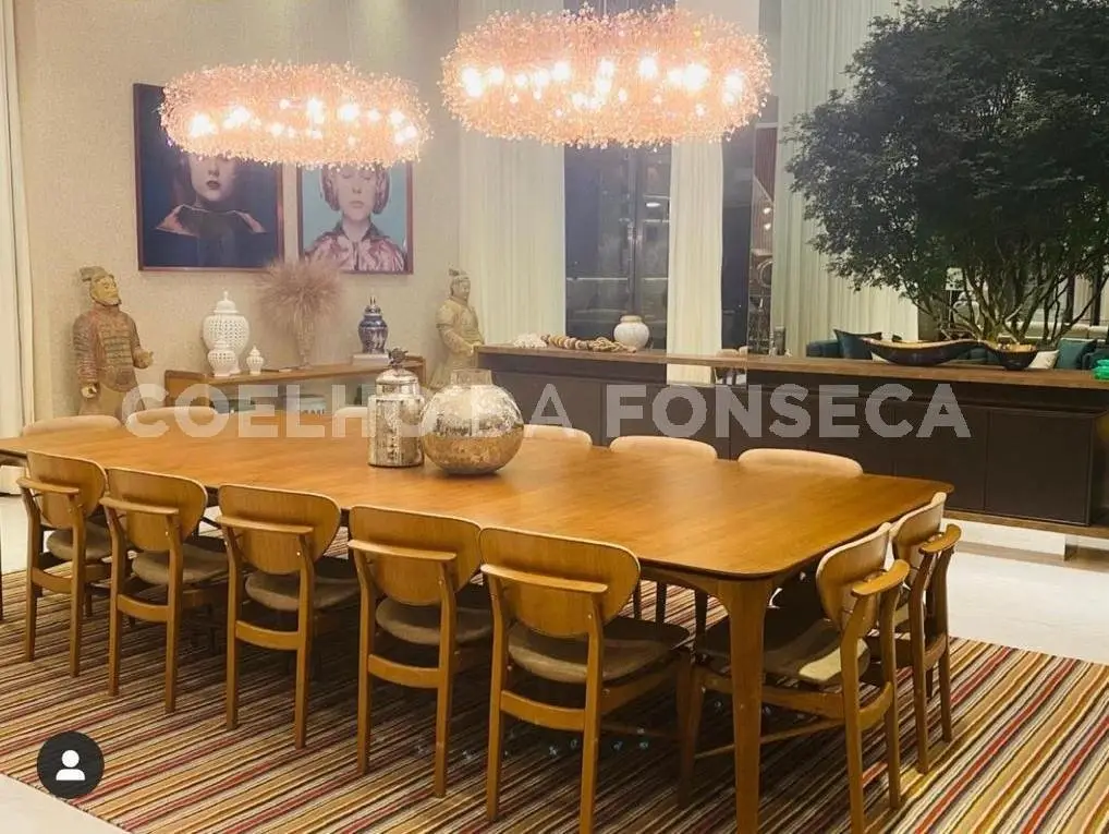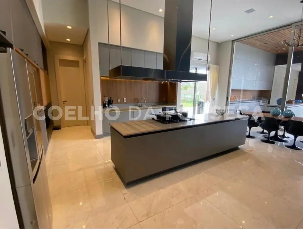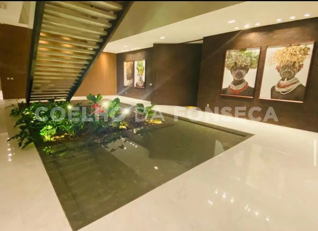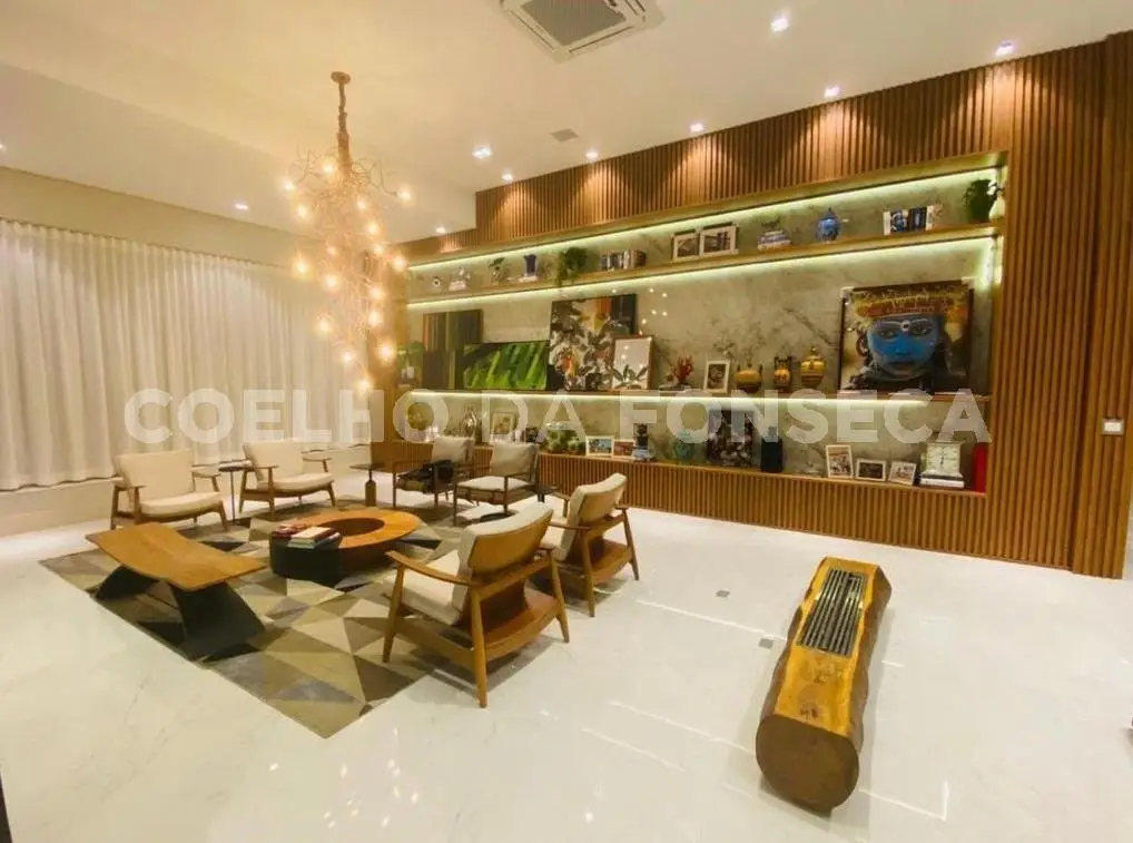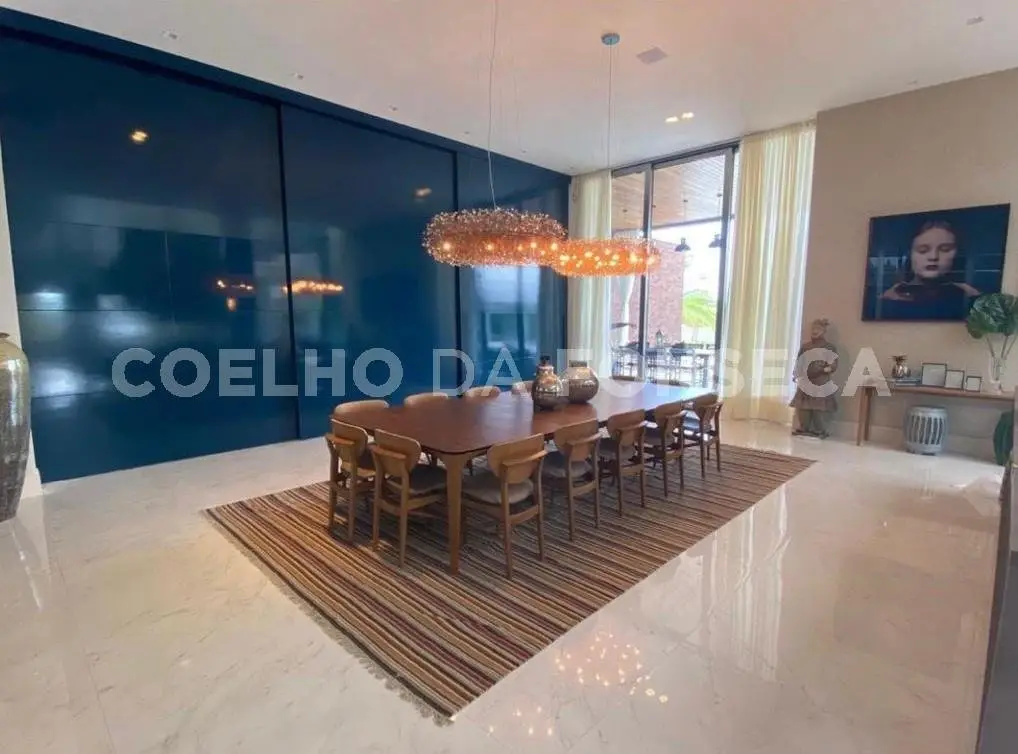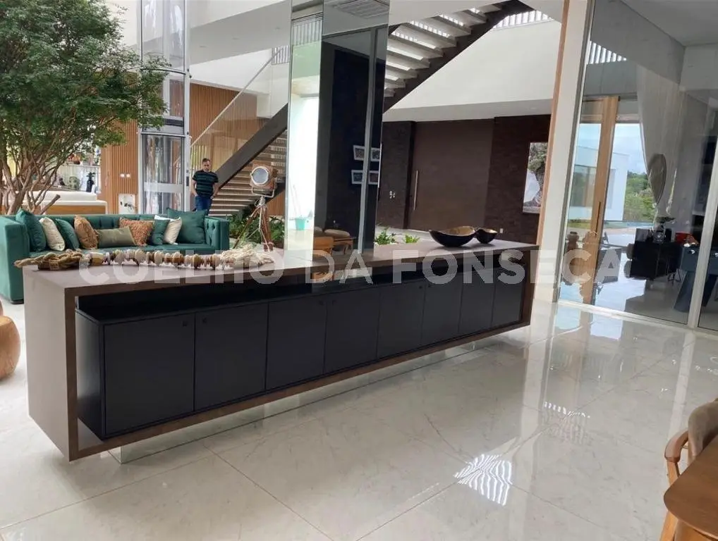 With a 4.5-meter ceiling and a 9-meter entrance hall, this open-concept, contemporary home fully integrates the indoor and outdoor areas. There are two swimming pools, one 27x12-meter outdoor infinity pool and another 25-meter indoor lap pool, both heated. The spectacular gourmet area accommodates 60 people. There is also a tennis court and a fully equipped gym, playground, beautiful garden and lots of greenery. Fully technological, the home has an automation system (lighting, sound, curtains and irrigation), solar heater, photovoltaic energy, camera system with 32 points, elevator, electric car station with fast charger. On the ground floor there is a large master suite with TV room, closet and balcony, as well as a home office, library, wine lounge with a cellar for 2,500 bottles. Cinema with 120-inch screen, playroom. Living room with 3 areas and dining room with 14 seats. On the upper floor, another master suite with a closet of over 40m2 and 3 other large suites, all with a whirlpool bath, closet and balcony. House in a condominium in the Parque Reserva Fazenda Imperial neighborhood with 1800m² of built area, 5 bedroom(s), 5 suite(s), 25 parking space(s), 5 bathroom(s), swimming pool, tennis court, office, sauna, air conditioning, maid's room, renovated, balcony, elevator, solar heater, double height ceiling.