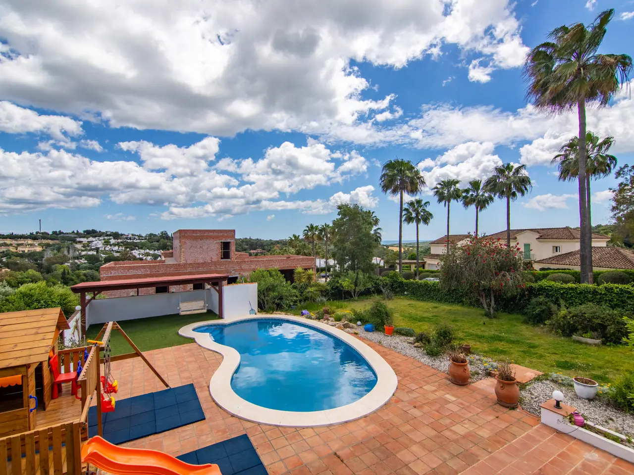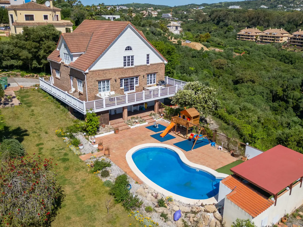 PRICE DROP!! This independent and cozy villa is located in the exclusive Zone F of Sotogrande Alto. With a built area of 557m² and a plot of 2,127m², this property has all the amenities to enjoy a sophisticated life. The villa stands out for its design and unique architecture in the purest Alpine style. The wooden interior offers impressive ceilings and an interior structure that creates a warm and cozy atmosphere. On the main floor, we find two bedrooms, one of them with a dressing room, a bright living room, a modern kitchen, and an open plan dining area, perfect for entertaining family and friends. This floor opens onto a terrace with breathtaking panoramic views of the sea. The upper floor houses the master suite, which features a private bathroom and a study area, ideal for working from home. On the lower floor of the villa, there is a guest room, a laundry area, an additional kitchen, and a room that can be used as a gym or game room. It also has a private and enclosed garage with space for one vehicle, with additional parking available outside the property. The exterior of the property is equally impressive. The villa has a private pool at the foot of a porch with a swing sofa, ideal for enjoying the Mediterranean climate. Next to the pool, there is a playground with padded flooring, perfect for children to have fun safely. From the villa, you can enjoy incredible panoramic views of the sea and Sotogrande. In addition, its privileged location puts it close to renowned golf courses such as Valderrama, Almenara, or San Roque Club Golf, as well as the International School, making it an ideal choice for families. Security is a priority in this urbanization, with 24-hour surveillance. This villa offers luxury, comfort, and tranquility in a privileged location. Feel free to contact us for more information and to book a visit.