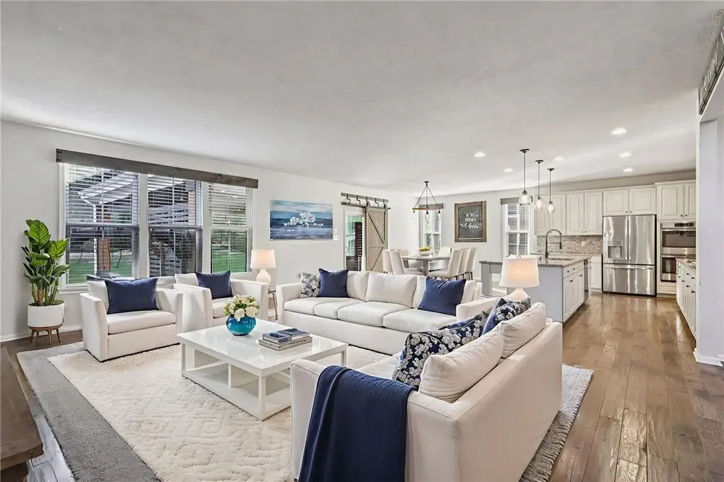 Welcome to 4462 Walnut Ridge, a stunning 4-bed, 5-bath home with a 3-car garage and open floor plan. The living room features a gas fireplace and flows into the dining area and gourmet kitchen with granite countertops, stainless steel appliances, walk-in pantry, and soft-close cabinetry. A private den with French doors, engineered hardwood floors, and elegant mouldings offers space for a home office or playroom. A mudroom with built-in storage is located at the garage entrance. The dining room opens to a concrete covered patio with sun shades, recessed lighting, ceiling fans, and serene views of the fenced backyard. Upstairs, the primary suite boasts 2 walk-in closets and a spa-like bath. Three additional bedrooms and two baths, a study nook, and laundry room complete the second floor. The finished lower level includes a game room with live edge bar and barrel sink, an exercise room, and full bath. A truly spectacular home - where luxury, comfort, and convenience merge in perfect harmony.
