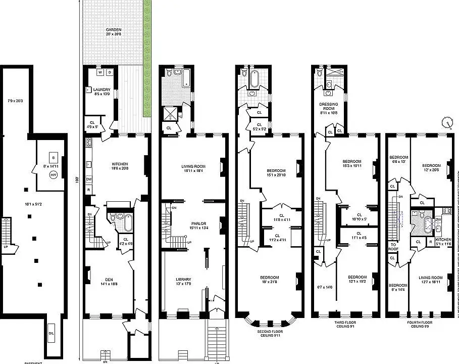 This Mount Morris Park Historic District gem built in 1909 is loaded with preserved original details including nine fireplaces, wood floors (some with intricate inlay), crown molding, ceiling medallions, wainscoting and beautifully detailed banisters and stairwells. At 20' wide and approximately 6,500 square feet, each floor is about 1,300 square feet with a multitude of design options. The parlor level has almost 12-foot ceilings and the upper floors are between 9 and 10 feet. The current configuration is a two-family with eight bedrooms and five full bathrooms. The ground floor has a living room, full bath with clawfoot tub, laundry room, and an enormous chefs kitchen leading to the backyard. The Parlor floor consists of a library, center hall with grand staircase, living/dining room and a large unfinished full bathroom. Floors 3 and 4 each have two very large bedrooms with vast walk-in closets/dressing rooms and an expansive full bathroom. The third floor has a washer/dryer hookup and the fourth floor has an additional bedroom. The top floor is currently set up as the second unit (without a separate entrance). It consists of a living room, kitchen, full bath with clawfoot, two small bedrooms and one large bedroom. There are skylights over the stairwell and bathroom plus charming arched windows in the front facing living room. The roughly 9x14-foot extension extends to the 4th floor leaving a potential deck opportunity on the 5th floor. 6 West 121 is on the south side of the block with north and south exposures. It is situated just a half block to Marcus Garvey Park and a half block to a charming section of Lenox Avenue lined with small privately owned businesses and restaurants. The Mount Morris Park Historic District is a stunning section of Harlem with wide brownstones and tree-lined streets. Lenox Avenue is lined with conveniences from Whole Foods to Trader Joe's (opening in August), dry cleaners, CVS, a wonderful selection of privately owned restaurants and boutiques, the 2/3 express train, M60 to LaGuardia and much more! Mount Morris Park Historic District Homes qualify for The historic homeownership rehabilitation credit, equal to 20% of your qualified rehabilitation expenditures. not to exceed $50,000 per taxpayer per year. Spouses are eligible to claim up to $50,000 credit each.