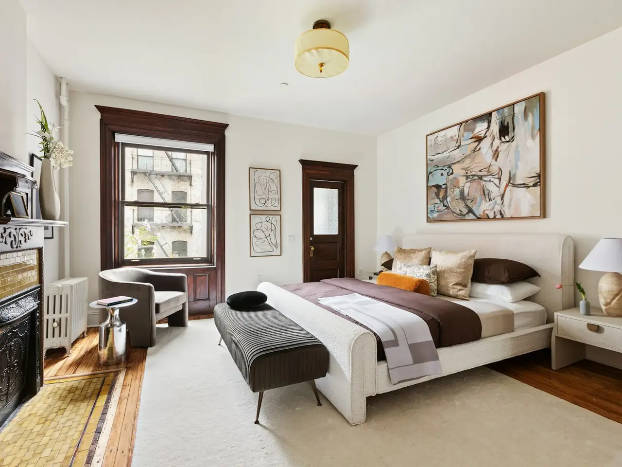 This grand and meticulously restored townhouse, located just north of Central Park and moments from Morningside Park, is perfectly tailored for elevated city living and effortless entertaining. From the garden-level wet bar outfitted with dual Summit wine coolers to the expansive private backyard and patio, this home was designed with hosting in mind. Period details including arched woodwork, ornate lighting fixtures, and stunning fireplace mantels have been lovingly preserved and paired with contemporary upgrades throughout, creating a warm, curated aesthetic across all levels. The parlor floor features a sprawling open-concept layout where sunlight spills across gleaming hardwood floors, seamlessly connecting the formal living room, dining area, and state-of-the-art kitchen. The kitchen is a chef's dream, with a large center island, Caesarstone quartz countertops, custom cabinetry, a striking tile backsplash, and a full suite of professional-grade appliances, including a gas range with hood, refrigerator, and dishwasher. A bonus pantry adds charm and function, showcasing original built-ins with abundant storage. The garden level is a standout, offering a lounge and recreation space, laundry area, full bath, and additional bedroom. The oversized front bedroom features a decorative fireplace mantel, custom closet, and nearby washroom with beautifully preserved cabinetry. A second seating area on this level easily transforms into a home office, media room, or guest space. The upper floors are dedicated to private living quarters. The primary suite is a true retreat with oversized windows, a walk-in custom closet, and a spa-like en-suite bath. All secondary bedrooms include ample custom storage, and the top floor bedroom opens to a sun-drenched rooftop deck-a secluded perch with endless potential. Ideally situated in the heart of South Harlem, you'll enjoy proximity to Morningside Park, Central Park, and some of the neighborhood's most beloved eateries. With the A, B, C, 2, and 3 subway lines just a few blocks away, the rest of the city is always within easy reach.