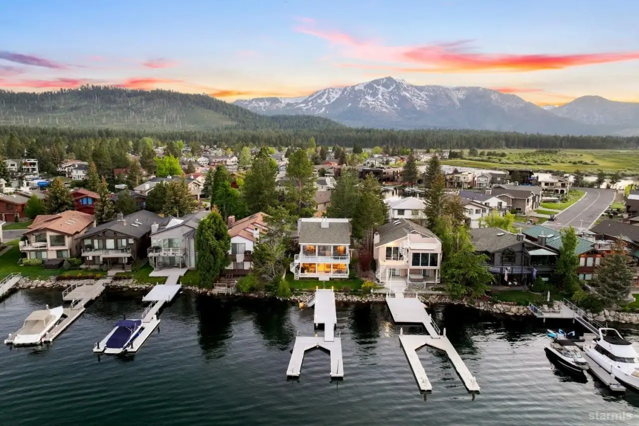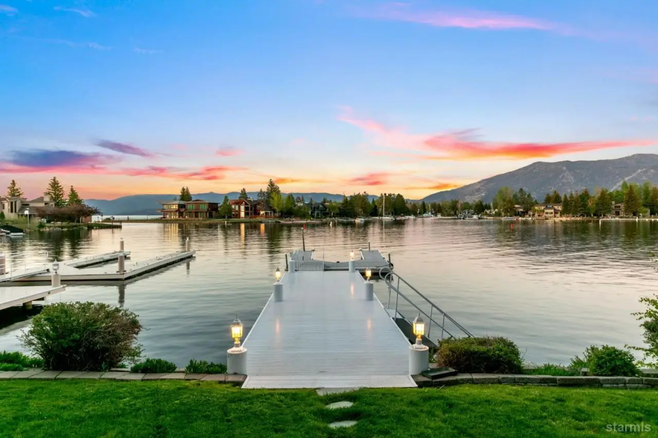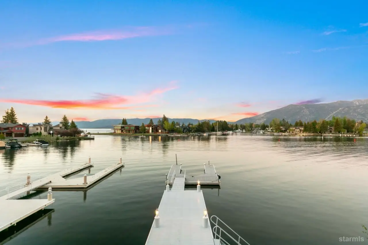 Situated in the prestigious Tahoe Keys, this waterfront home offers direct lake access and sweeping views of Lake Tahoe and the surrounding waterways. Step out your back door to your own private dock and set off for a perfect day of boating on the crystal-clear waters of the Lake Tahoe. Upstairs, a bright and spacious open-concept living area features a beautifully designed kitchen and an elegant dining and living space, all framed by floor-to-ceiling picture windows that showcase breathtaking lake views. Step outside to the deck perfect for relaxing, enjoying the sunshine, and hosting evening BBQs. This level also includes two well-appointed bedrooms and a finished loft space, ideal for additional lounging or guest accommodations. The lower level is designed for entertaining and comfortable living, featuring a stylish butler's station with a sink, refrigerator, and wine cooler, perfect for effortless summer gatherings. This level also includes a spacious family room, two additional bedrooms, a full laundry room, and a generous two-car garage. As a resident of the exclusive Tahoe Keys Property Owners Association, you'll enjoy access to a host of premium amenities, including a private beach, indoor and outdoor pools, a clubhouse, tennis courts, and more. This is a rare opportunity to experience luxurious waterfront living with unparalleled access to all that Lake Tahoe has to offer.