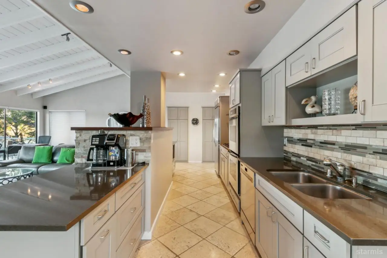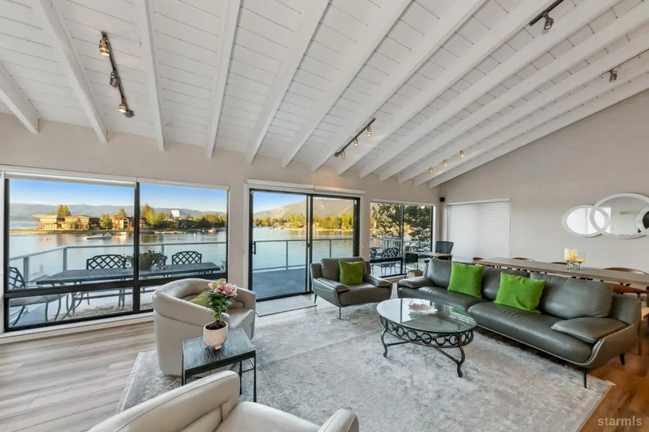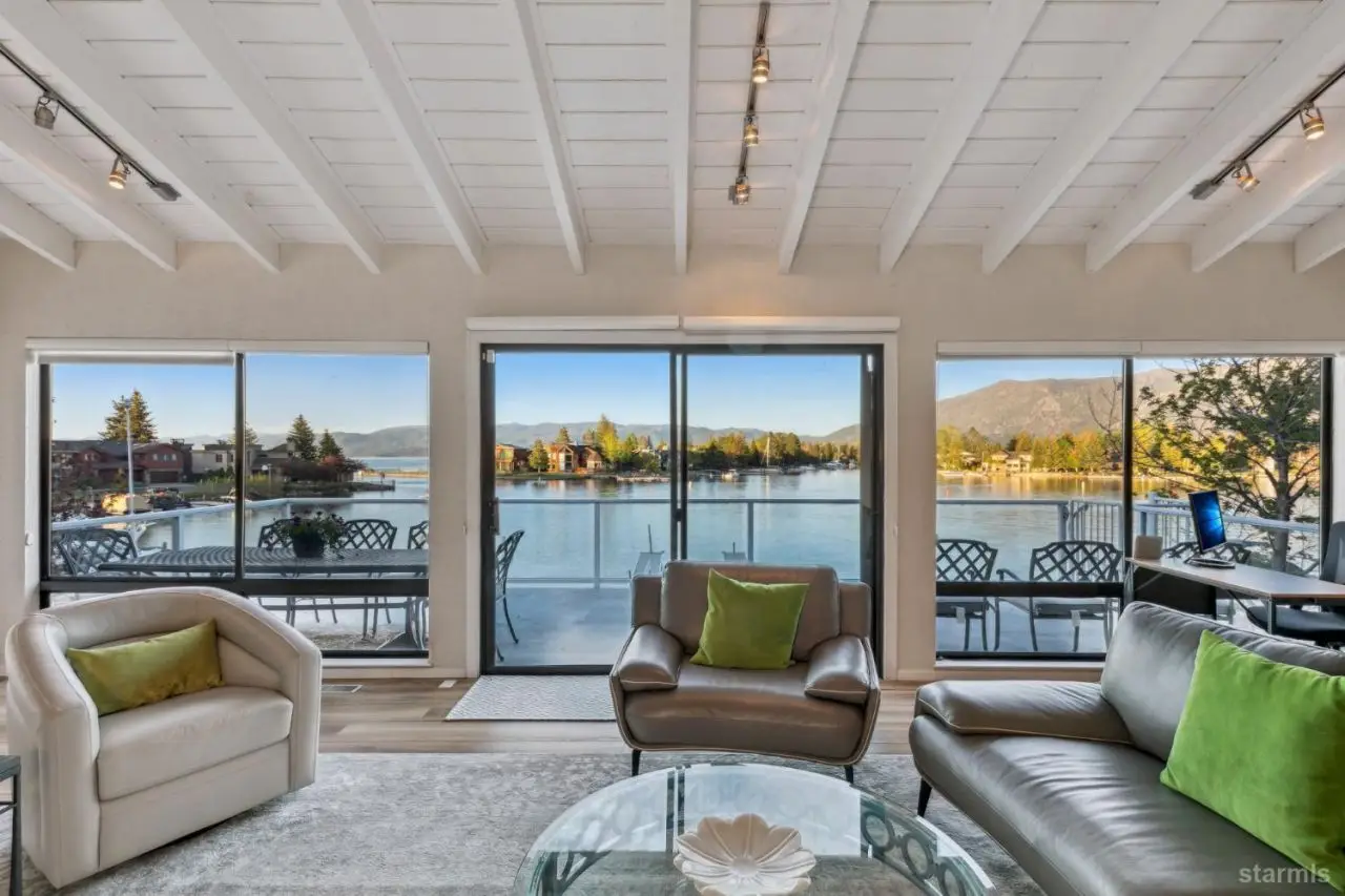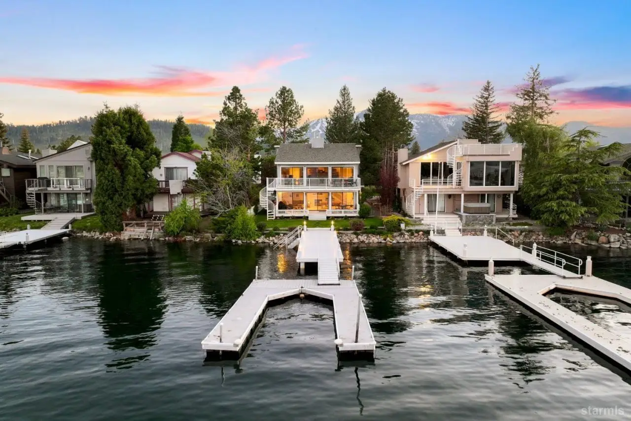 Situated in the prestigious Tahoe Keys, this waterfront home offers direct lake access and sweeping views of Lake Tahoe and the surrounding waterways. Step out your back door to your own private dock and set off for a perfect day of boating on the crystal-clear waters of the Lake Tahoe. Upstairs, a bright and spacious open-concept living area features a beautifully designed kitchen and an elegant dining and living space, all framed by floor-to-ceiling picture windows that showcase breathtaking lake views. Step outside to the deck perfect for relaxing, enjoying the sunshine, and hosting evening BBQs. This level also includes two well-appointed bedrooms and a finished loft space, ideal for additional lounging or guest accommodations. The lower level is designed for entertaining and comfortable living, featuring a stylish butler's station with a sink, refrigerator, and wine cooler, perfect for effortless summer gatherings. This level also includes a spacious family room, two additional bedrooms, a full laundry room, and a generous two-car garage. As a resident of the exclusive Tahoe Keys Property Owners Association, you'll enjoy access to a host of premium amenities, including a private beach, indoor and outdoor pools, a clubhouse, tennis courts, and more. This is a rare opportunity to experience luxurious waterfront living with unparalleled access to all that Lake Tahoe has to offer.