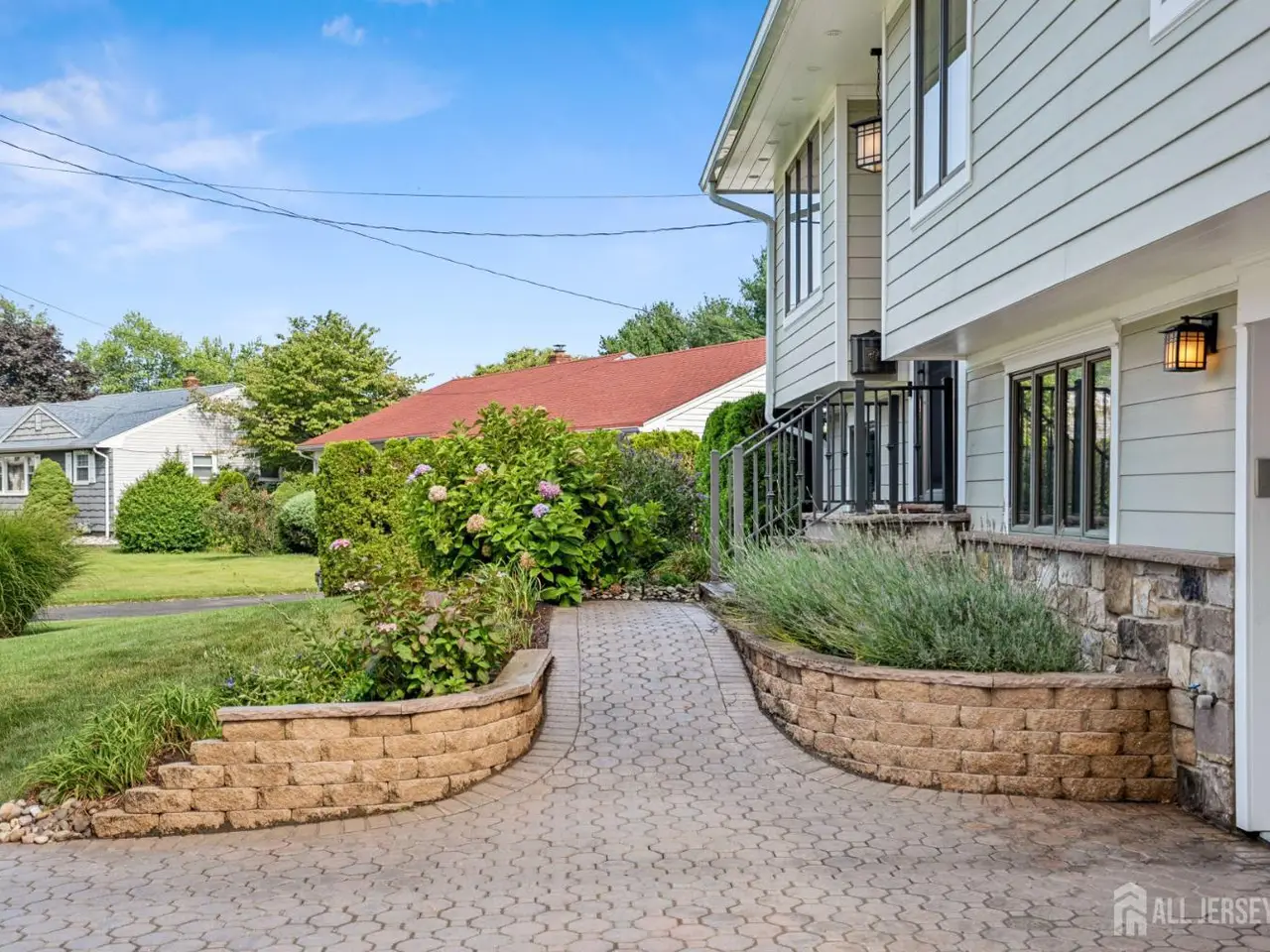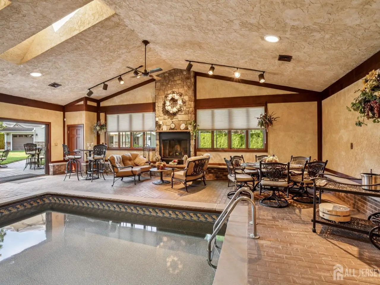 Your Private Poolside Paradise Awaits! At the heart of this property lies a one-of-a-kind all-season pool house retreat-a true destination in itself with over 2,000 sq. ft. of resort-style living. Enjoy a 16' x 32' in-ground pool, framed by elegant finishes and anchored by a floor-to-ceiling stone fireplace that brings warmth and ambiance year-round. A dedicated game room with pool table ensures endless entertainment, while the fully equipped kitchenette is perfect for cocktails, snacks, and poolside dining. A full bathroom with washer/dryer and large soundproof windows make the space as practical as it is luxurious. Whether you're hosting lively gatherings, unwinding with family, or enjoying a private swim, this pool house is designed for unforgettable entertaining and total relaxation. Complementing the pool house is a beautifully maintained 4-bedroom, 3.5-bath home with custom upgrades, Corian countertops, a lower-level family room with wet bar, and a spacious primary suite. Outdoors, professional landscaping with over 300 arborvitae, underground sprinkling system, multiple patios with pavers, and accent lighting create an ideal setting for both privacy and entertainment. Close to shopping, to New Jersey Transit, and major highways. This property is more than a home-it's a lifestyle.