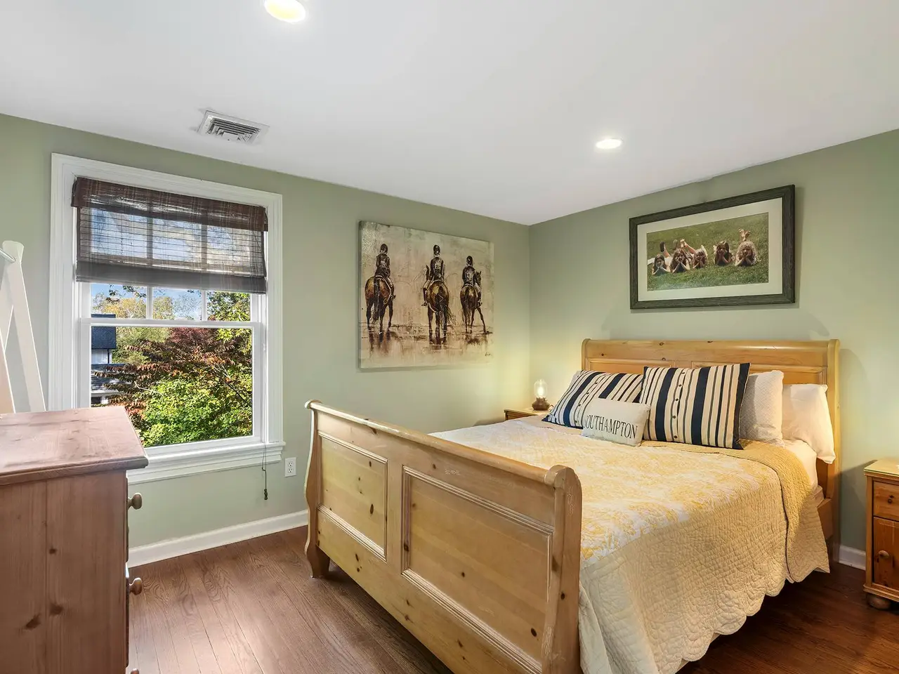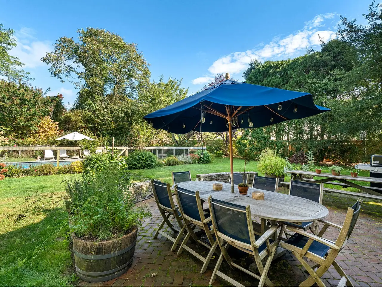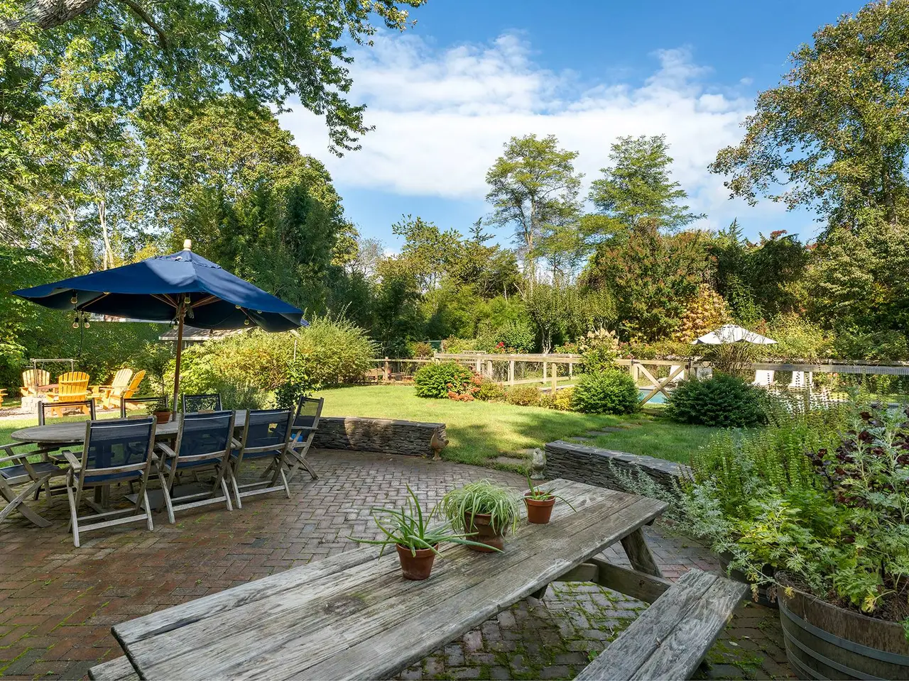 This sunny farmhouse is nestled between three major golf courses and close to the sandy beaches of Peconic Bay. In minutes, you can also be in the center of Southampton village enjoying the shops and restaurants. The gracious layout lends itself to both entertaining and relaxation with a large living room, country dining room and large Mediterranean kitchen with gourmet appliances. A pretty backyard is just made for lazy summer days.