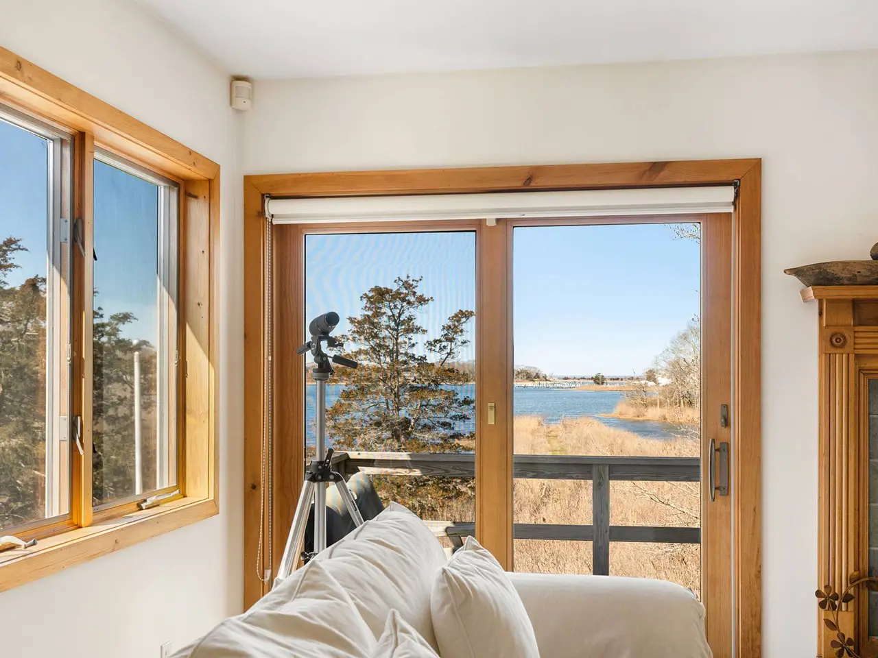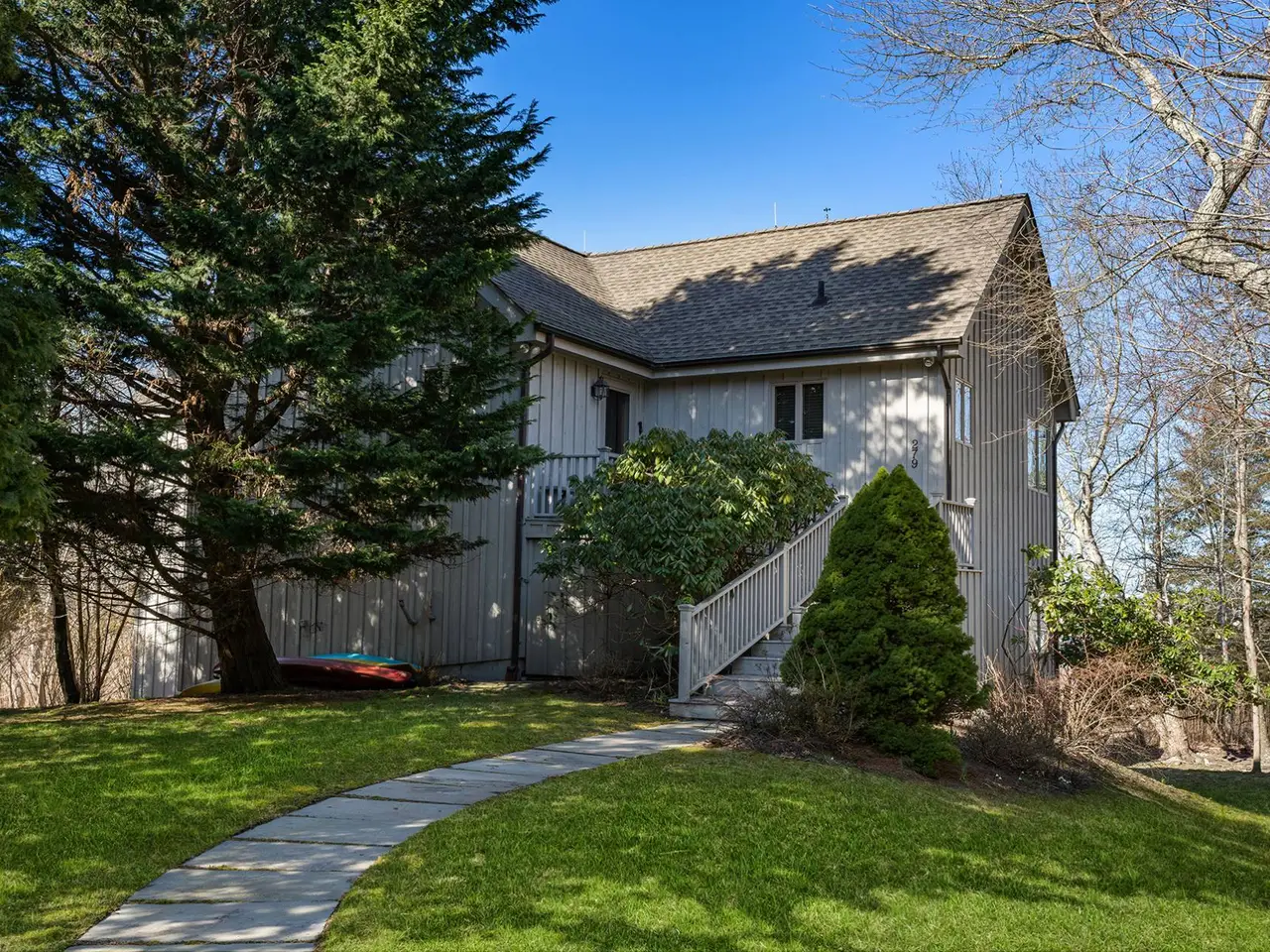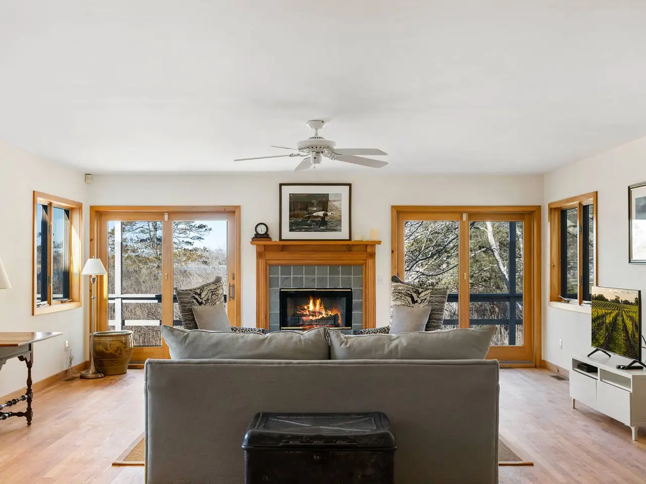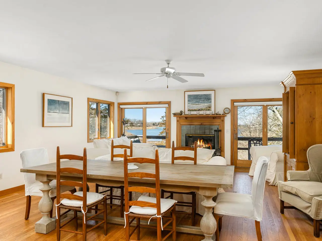 RP240645 - Enjoy tranquil water views and sunsets daily from this contemporary four bedroom, three and one half bath home. Open kitchen, living and dining area with cozy fireplaces make this a wonderful place to to entertain your summer guests. Take advantage of living on the water, one is able to moor a boat in Bullhead Bay in the summer with a permit. Located near 4 world class golf courses, Wolf Swamp Sanctuary and Scallop Pond Preserve this home is in a quiet and natural area to be enjoyed every day.