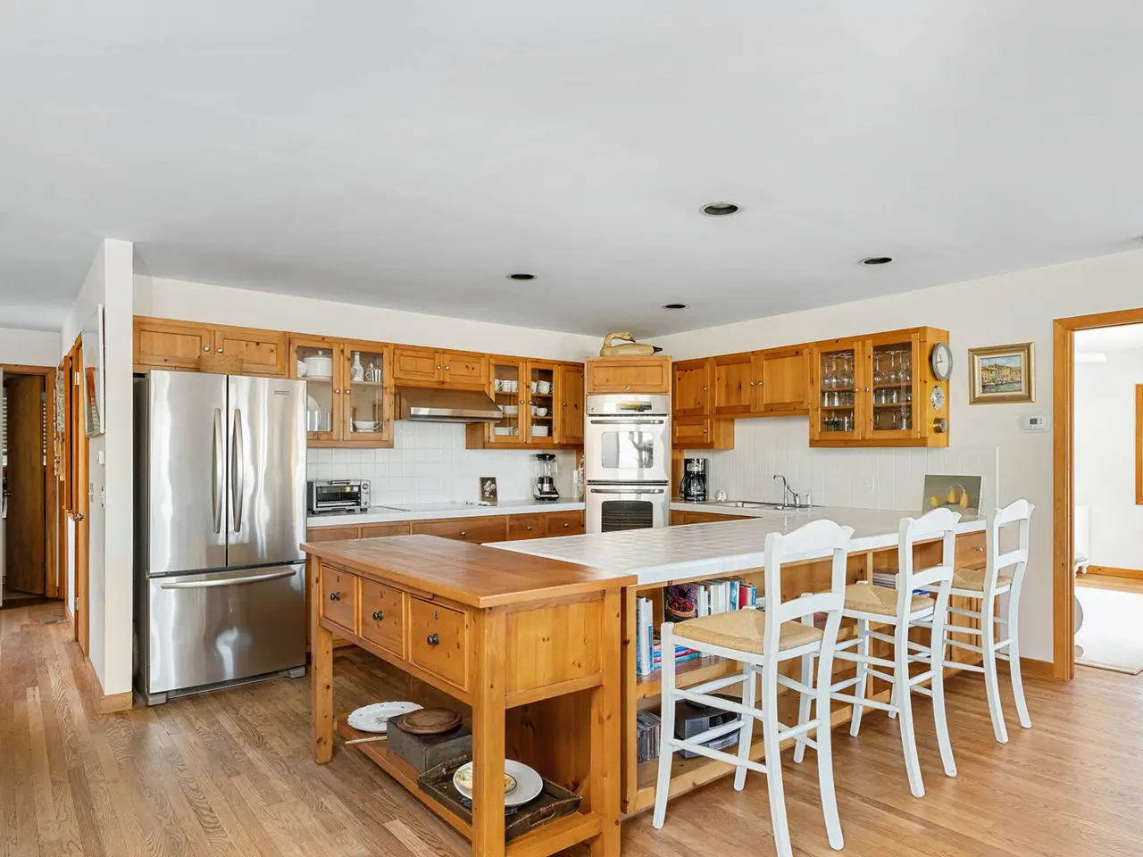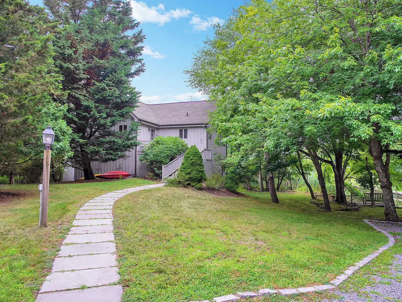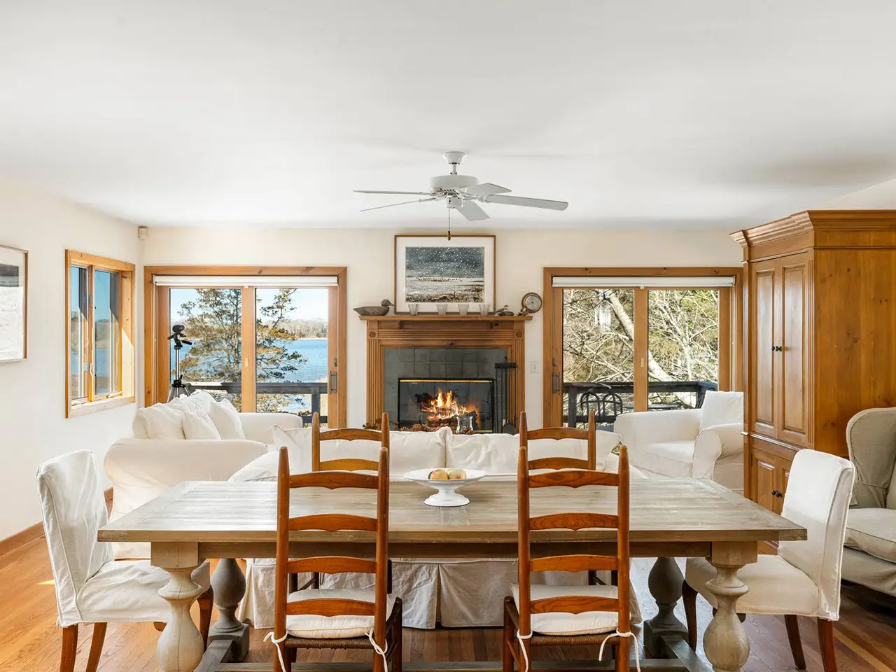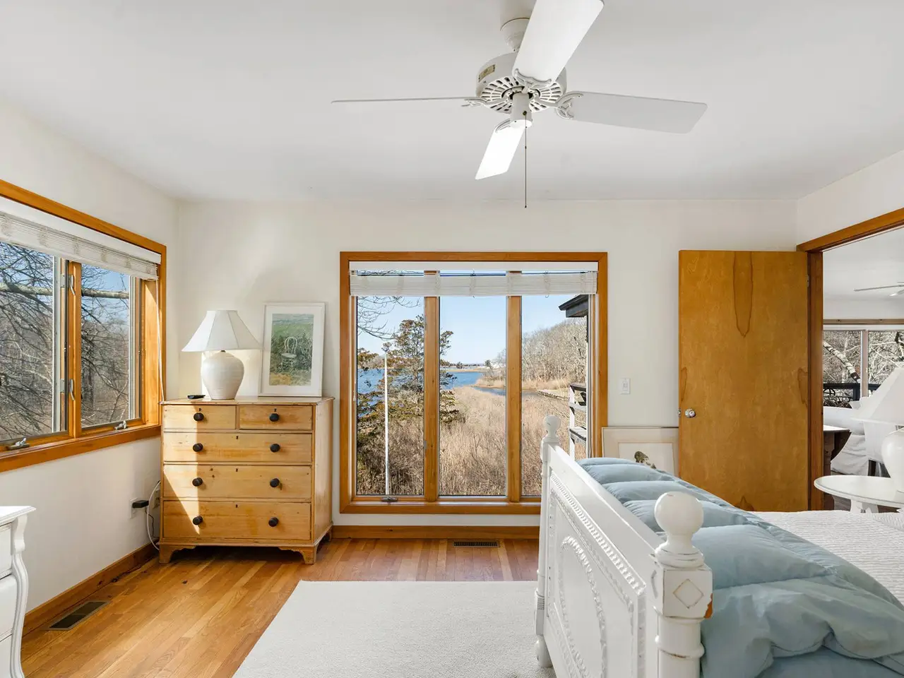 RP240645 - Enjoy tranquil water views and sunsets daily from this contemporary four bedroom, three and one half bath home. Open kitchen, living and dining area with cozy fireplaces make this a wonderful place to to entertain your summer guests. Take advantage of living on the water, one is able to moor a boat in Bullhead Bay in the summer with a permit. Located near 4 world class golf courses, Wolf Swamp Sanctuary and Scallop Pond Preserve this home is in a quiet and natural area to be enjoyed every day.