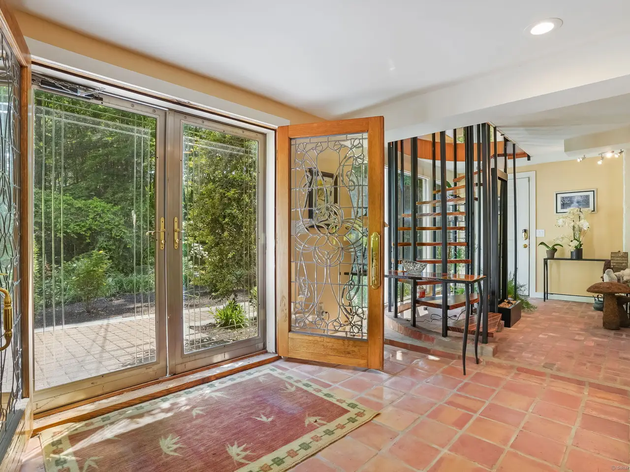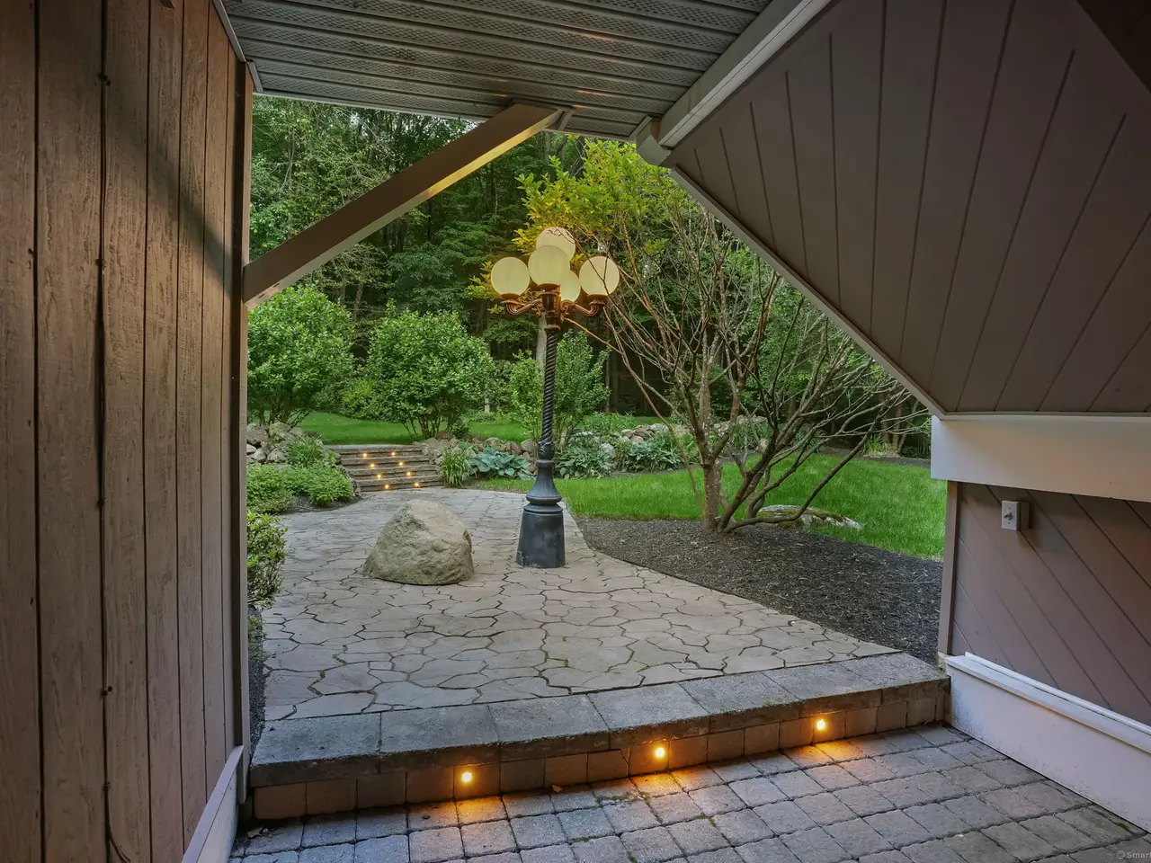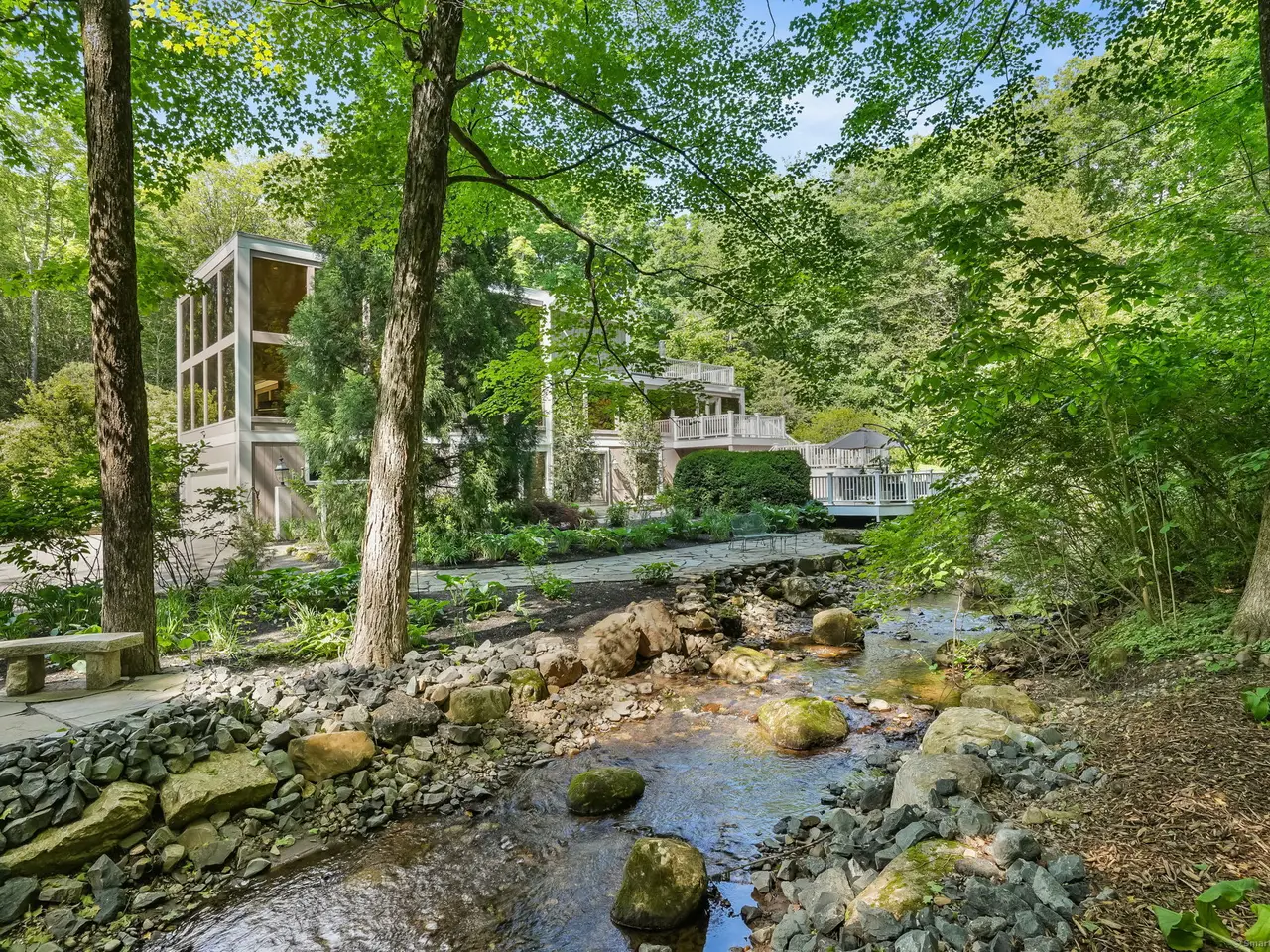 Welcome to the glass house of Southbury! Truly a home of style and distinction with its three levels of 5000+ sqft. Enjoy your own private oasis on over 3 secluded wooded acres landscaped for color from early Spring until the beautiful New England Fall. This one of a kind contemporary style home with glass walls in every major room brings the outside world in 24/7. Enter the lower level through the Garden Room hallway which leads to a Family Rm with fireplace & entrance to Patio with view of the KOI pond. The main level boasts of a Living Room with fireplace and floor to ceiling glass walls on three sides offering stunning views of the outdoors. Adjacent, is a recently remodeled Eat-in Kitchen with Thermador appliances, reflective big blue granite countertops and a deck right off the dining area. Also featured, is a lovely Primary Bedroom suite with motorized blinds, large custom Walk-in closet, and a newly renovated Bath featuring heated floors, large granite enclosed heated tub, bidet, & steam shower. The upper level offers an office with fireplace & Large room leading to the upper deck and a full bathroom. With its many rooms, this home offers the potential for five bedrooms for your family and guests with four full Baths. Perfect for entertaining whether inside or out. A very unique property! So much to see, so much detail. It must be viewed! Features: Thermador appliances: double oven, wine rack, microwave, warming drawer, & frameless induction cook top. Kitchen-ample counter space. 48 (4ft x 6ft) Custom double paned glass windows. 4 Double French Doors. Decks- 2 off Kitchen, 3 off Primary Bedrm & 1 off third level. 4 Fireplaces. Lighted Bridge. 5 Skylights throughout. Ceiling Fans. 22 KW Generax whole house generator. 500 gal Propane tank. Electric pet fence around the property. Wired speakers and sound system in LR, Kitchen & both front and back Decks. KOI Pond. ATD Security System. Programmable Thermostat.