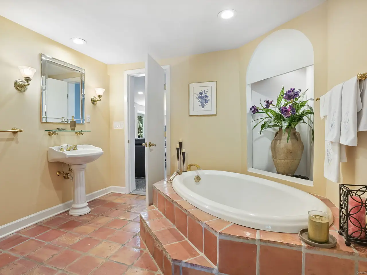 Heated floors, large granite enclosed heated tub, bidet, & steam shower