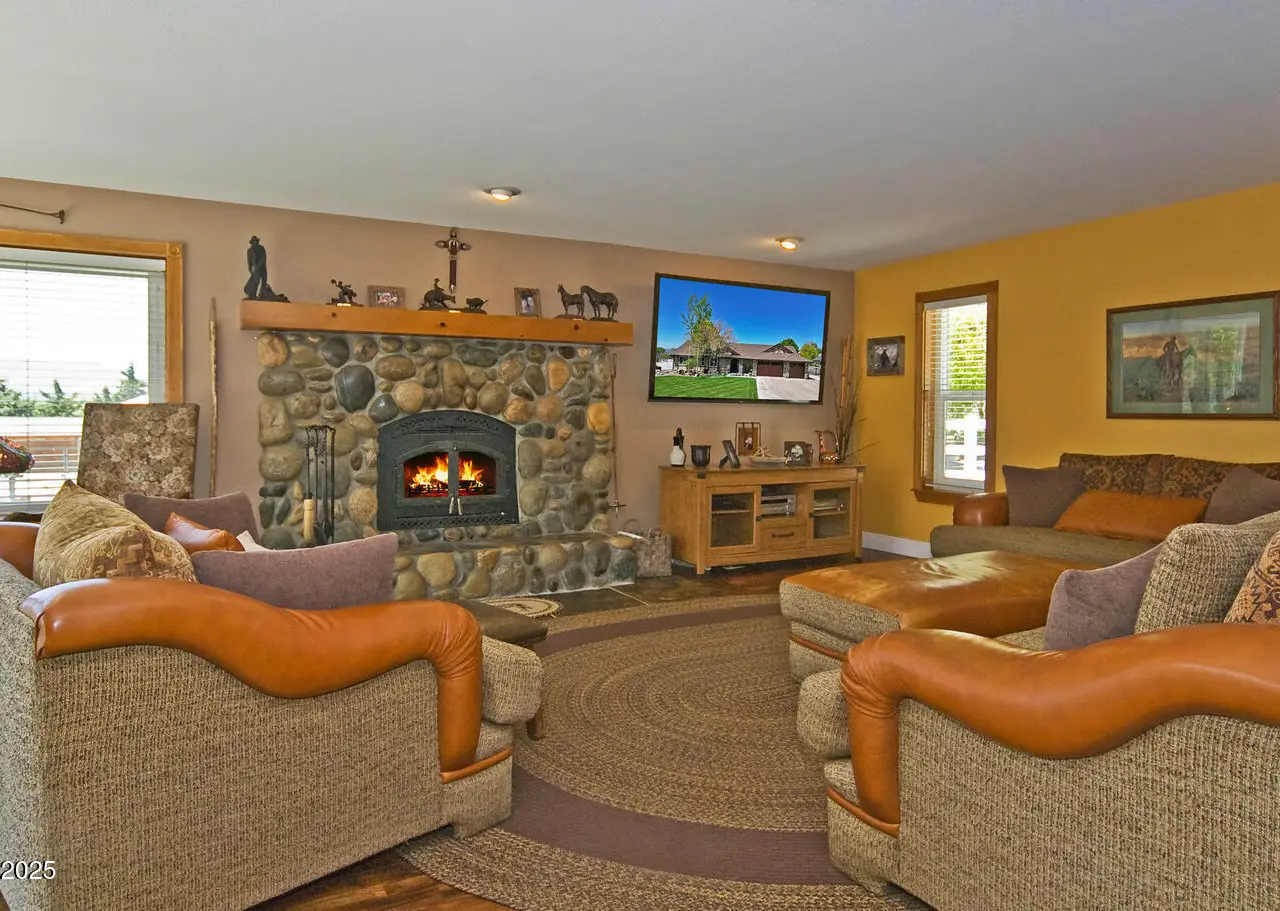 Tucked away on a quiet cul-de-sac in one of the area's most desirable communities, this exceptional home sits on over an acre with open views, privacy, and all the upgrades you've been searching for. Step inside to find triple-pane windows, new guaranteed paint, storm doors, and a brand-new HVAC system and water heater for true peace of mind. The gourmet kitchen is a chef's dream, featuring knotty alder cabinetry with abundant drawers, granite countertops, a huge Thermador range/oven (with warranty), a KitchenAid convection microwave with warming drawer, and a stylish wet bar—perfect for entertaining. Elegant details continue throughout with engineered hardwood and luxury vinyl plank flooring, solid wood baseboards, barn doors, and custom closet organizers. The primary suite is a true retreat, complete with a spa-like steam shower, raised countertops, and new high-rise toilets throughout. Outside, discover your own entertainer's paradise with numerous patio areas, a stunning outdoor stone kitchen, and beautifully landscaped grounds. Horse lovers will appreciate the 3 stalls, tack room with electricity and water, and plenty of room to ride. The property is fully equipped with vinyl fencing, a drive-through RV/horse access secured by a gorgeous wrought iron gate, and oversized solid wood garage doors designed to fit large vehicles. Additional highlights include security lights, rain gutters with leaf guards, a 50-year roof, and new luxury finishes throughout. This Bridle Path gem truly combines luxury living, equestrian amenities, and timeless craftsmanship.