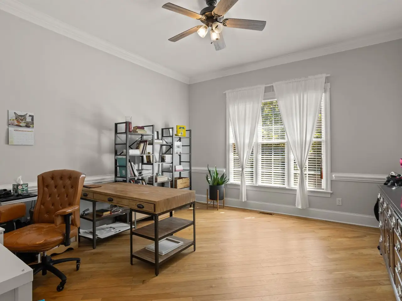 Welcome to this stunning home in the prestigious Carolina Country Club - Spartanburg's premier gated community! Situated on a beautifully landscaped 0.33-acre lot, this elegant residence welcomes you with a circular driveway and an impressive two-story foyer showcasing a grand staircase. Inside, you'll find timeless design and generous spaces throughout. The main level features a formal dining room, a two-story great room with soaring windows and a cozy fireplace, and a secondary living room with vaulted ceilings and its own fireplace - ideal for entertaining or quiet evenings in. The chef's kitchen boasts Monogram appliances, a large island, wet bar, and casual dining area, perfect for gatherings of any size. A spacious office/flex room, walk-in laundry, and powder room add convenience to the main floor. The primary suite provides a private retreat with two oversized walk-in closets and a spa-like en-suite bath featuring a soaking tub and separate walk-in shower. Upstairs, a generous loft area creates added living space, along with three bedrooms - one with a private en-suite and walk-in closet, and two sharing a jack-and-jill style bath. Enjoy serene outdoor living on the expansive back deck, overlooking your lush backyard. With access to Carolina Country Club's renowned amenities, this home combines luxury, comfort, and lifestyle in one of Spartanburg's most sought-after communities.