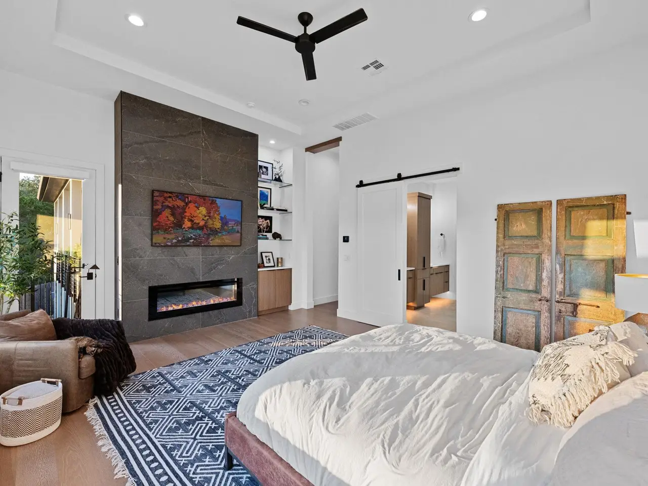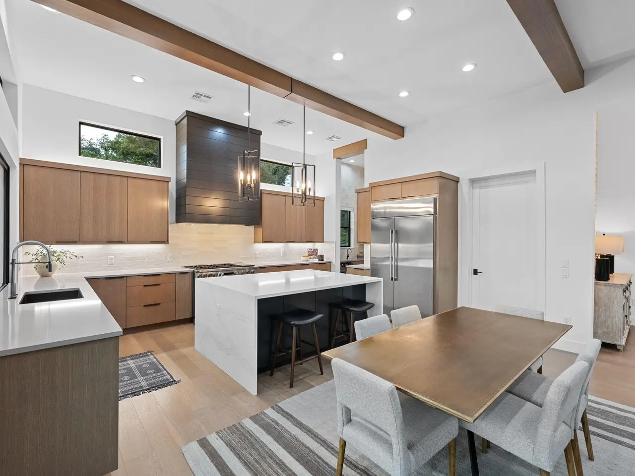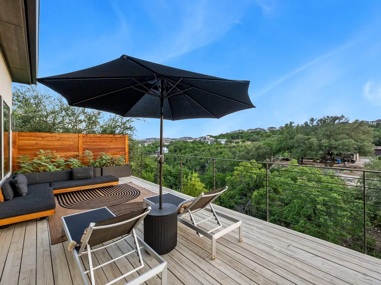 Discover a truly special home in Spicewood's most desirable gated community--Inverness Point. Live the ultimate Lake Travis lifestyle just steps from the water, where you can walk to your private MARINA for boating, fishing, or kayaking. Everyday living feels like a lakeside retreat, surrounded by nature and Hill Country serenity. This rare single-story residence captures stunning Hill Country VIEWS with a meticulously designed layout that's both luxurious and inviting. From the dramatic oversized double front doors to the tranquil courtyard centered around a private POOL and waterfalls, every detail reflects intentional craftsmanship and resort-inspired design. Inside, soaring ceilings, wood beam accents, and walls of glass set the stage for open, light-filled living. The entry features a natural stone wall with recessed grout balanced by a glass-enclosed wine room, introducing the home's sophisticated style. The living area centers around a sleek linear fireplace and flows seamlessly into the chef's kitchen with a waterfall island, commercial-grade appliances, built-in refrigerator, gas range with double oven, and a butler's pantry with beverage fridge, workspace, and coffee bar. The primary suite offers a fireplace, patio access, and a spa-like bath with LED-lit soaking tub, oversized shower, floating vanities, and custom walk-in closet. A separate casita provides its own living room, bedroom, and full bath--perfect for guests or multi-generational living. Outdoor living shines with covered patios, a full kitchen, fireplace, and multiple lounge areas to enjoy Hill Country breezes, sunsets, and sweeping views. A work center with built-ins, oversized laundry room, and storage-rich garage add convenience to the luxury. With a metal roof, LOW HOA fees, LOW tax rate of +/-1.6%, Lake Travis access, private marina, and tennis courts, this home is more than a place to live--it's a lifestyle.