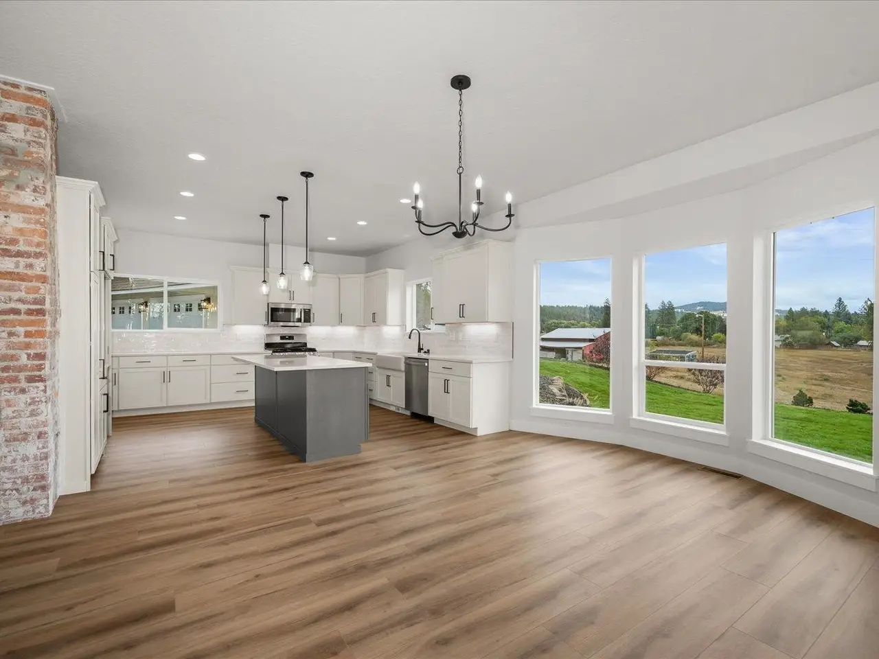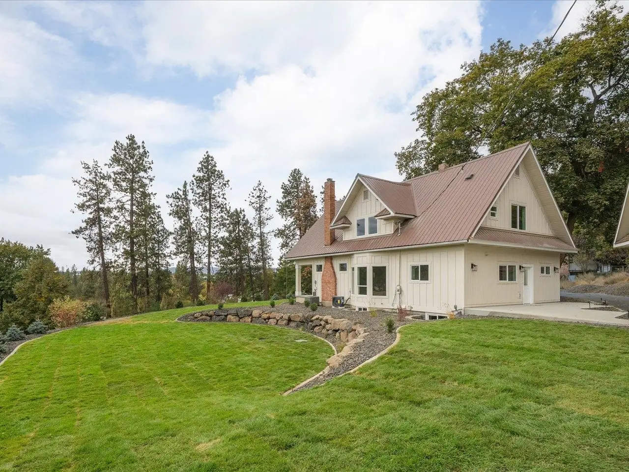 Charming Modern Farmhouse with breathtaking views of the Spokane River! Every inch of this amazing home has been renewed-every wall, every bathroom, every cabinet, every appliance, lighting, as well as all of the unseen essentials- plumbing, electrical, windows & exterior of home. It offers a rare balance of timeless character with the confidence of a fully updated home. Perched on 8.89 acres overlooking the River, Centennial Trail & near Arbor Crest, this home offers a main floor laundry room, an expansive Bonus room upstairs & beautiful finishes: a gorgeous light and bright new white kitchen w/huge island, new stainless appliances & a Primary Suite that will not disappoint w/dual vanities, a large tiled shower & walk in closet! The oversized garage/shop is 1,200 square feet & newly constructed. Yard has been newly landscaped with mature plantings, a level play area, covered front porch & privacy! Lower level is ready to finish!