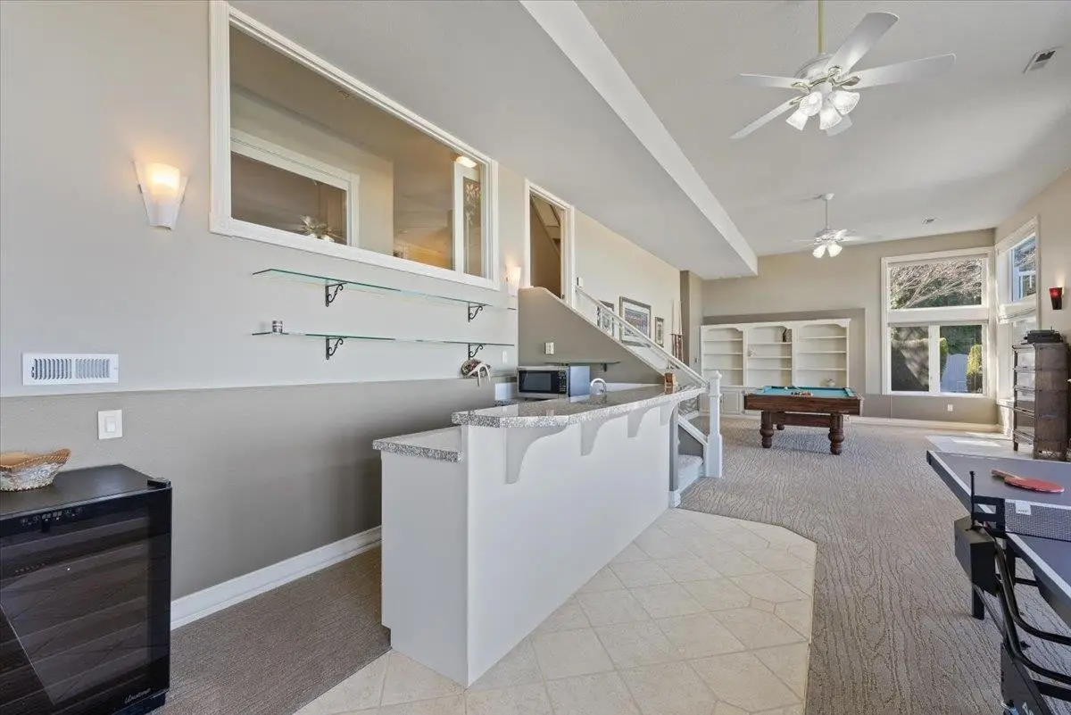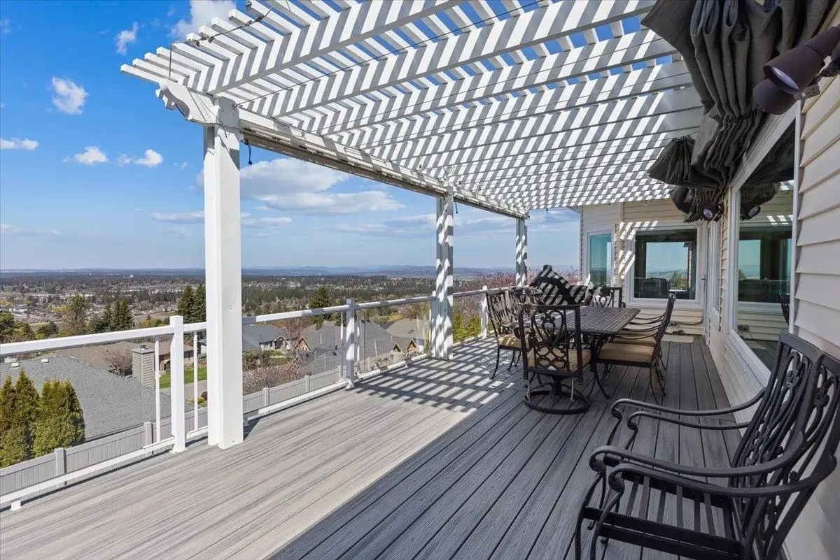 An impressive home on Spokane's South Hill completely updated inside and out with stunning views! Step inside this inviting home to all main floor living and views from every room. The sunsets are gorgeous! The granite kitchen is spacious with white cabinets, big picture windows lets the light pour in. An open living room area with a double sided fireplace brings warmth and relaxation. Great work from home space in the regal office with quality built-ins and a granite-top desk. A large primary suite with a luxurious bathroom and walk-in closet nearby. Off the main bedroom is your separate entrance to an enormous deck overlooking the backyard and views that stretch for miles. Enjoy an in-ground pool with new decking. The daylight basement has 3 bedrooms and a bath with a wet bar and a recreational gathering spot for dozens - pool table, foosball, movies, music, sauna, exercise workout area - it's all there and ready for your enjoyment!