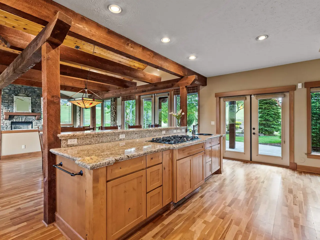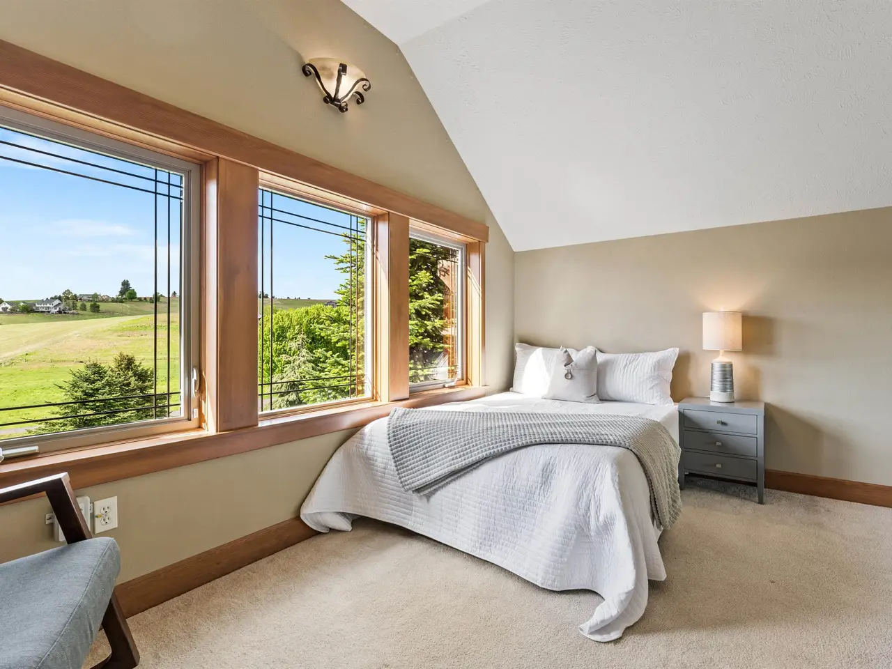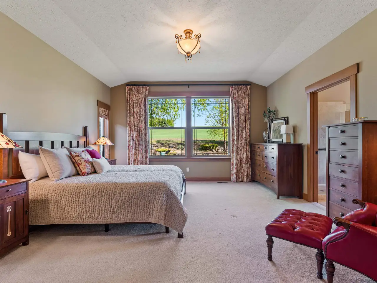 This stunning modern craftsman home, set on 10 acres, offers a unique blend of craftsmanship and contemporary design, creating a stylish yet functional living space while preserving the charm of the original style. An abundance of windows throughout showcases beautiful pastoral views, complemented by professional landscaping, fresh exterior paint, & breathtaking sunsets. The cozy atmosphere is enhanced by a striking stone fireplace, hardwood floors, exposed beams, and natural wood trim. The living, dining, and kitchen areas flow together seamlessly. The culinary kitchen boasts high-end stainless steel appliances, stone counters, two sinks, and a gas range. Main floor living includes a primary suite with doors leading to a patio, and an expansive laundry room offers ample storage. Upstairs, a versatile loft serves as an extra bedroom or reading nook, while the daylight lower level features two additional bedrooms, rec room, bar area and more storage. This remarkable home is a must-see!!