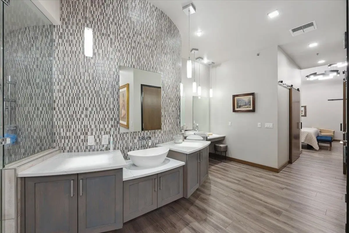 Premier urban living in downtown Spokane across from Riverpark Square! Elegant and modern design in this 3643 sq ft show home with secure underground parking. Incredible kitchen featuring Bosch 6 burner, Bosch double ovens, commercial fridge and expansive kitchen island, perfect bar setup with 3 video screens, 2 wine fridges. Absolutely the best entertaining space for gatherings! Gorgeous main floor primary with multiple walk-in closets and luxury bath. Upstairs loft space features secondary bedroom, additional entertaining or media space, full bath and a doggie wash setup. 24 hour security RP's concierge and 2 heated garage parks!