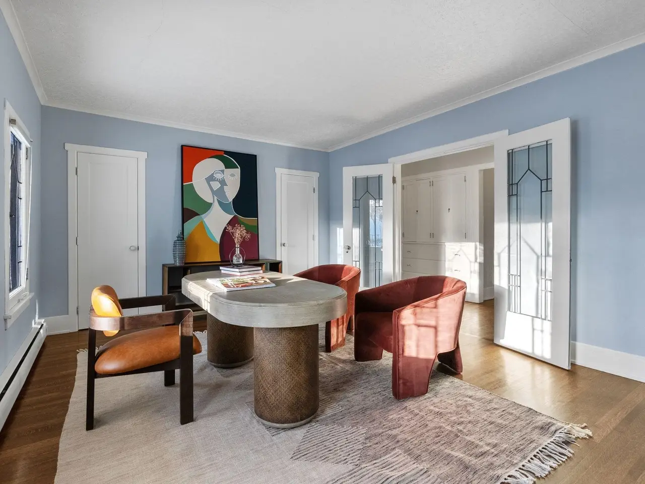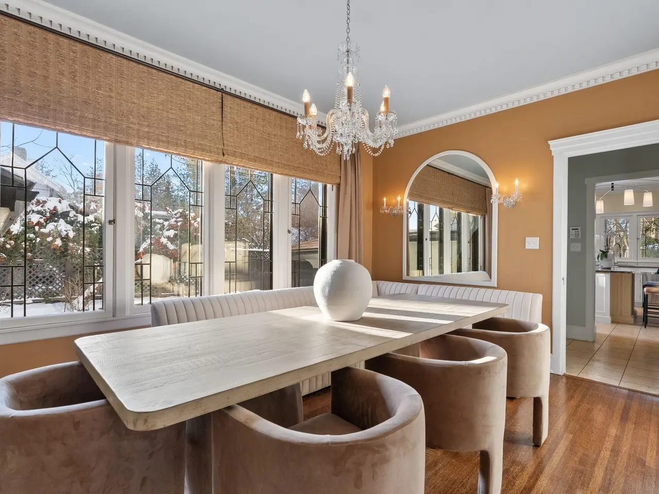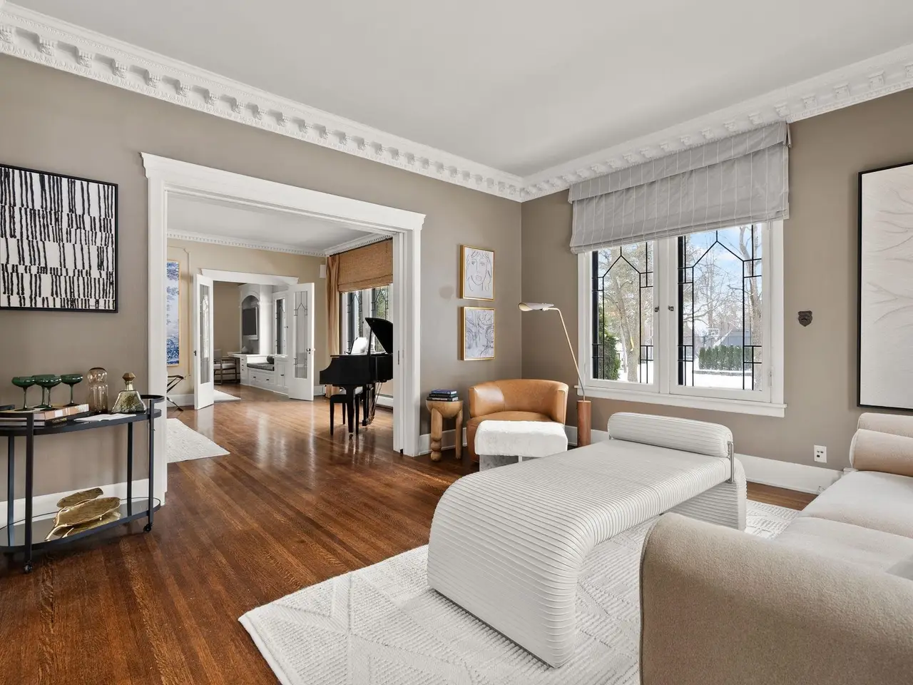 When it comes to location, this home has it, in the most coveted area of Rockwood/Hutton School. With luxury home architecture, this home is far from cookie-cutter & this home's uniqueness adds to the property value in spades. The manicured yard w/2 half circle driveways. The gorgeous entry, hand carved wood staircase, extensive molding, high ceilings & leaded glass windows. The woodwork in this house is art in of itself. Large den leads you into the living area through solid wood pocket doors. Living Room w/marble fireplace, custom drapery, wood floors & dental molding. The heart of the home, the Chef's kitchen w/high end appliances, granite & stone floors, adjoins the dining & family room. Outside is your backyard oasis, south facing paradise w/stretched patio. 2 staircases. Light & bright upstairs, w/wide halls & 5 huge bedrooms & 2 baths, Primary has en-suite bath w/walk-in closet. Basement has storage, rec room, updated laundry & bathroom with new floor, paint & light fixtures. This home is one of a kind!