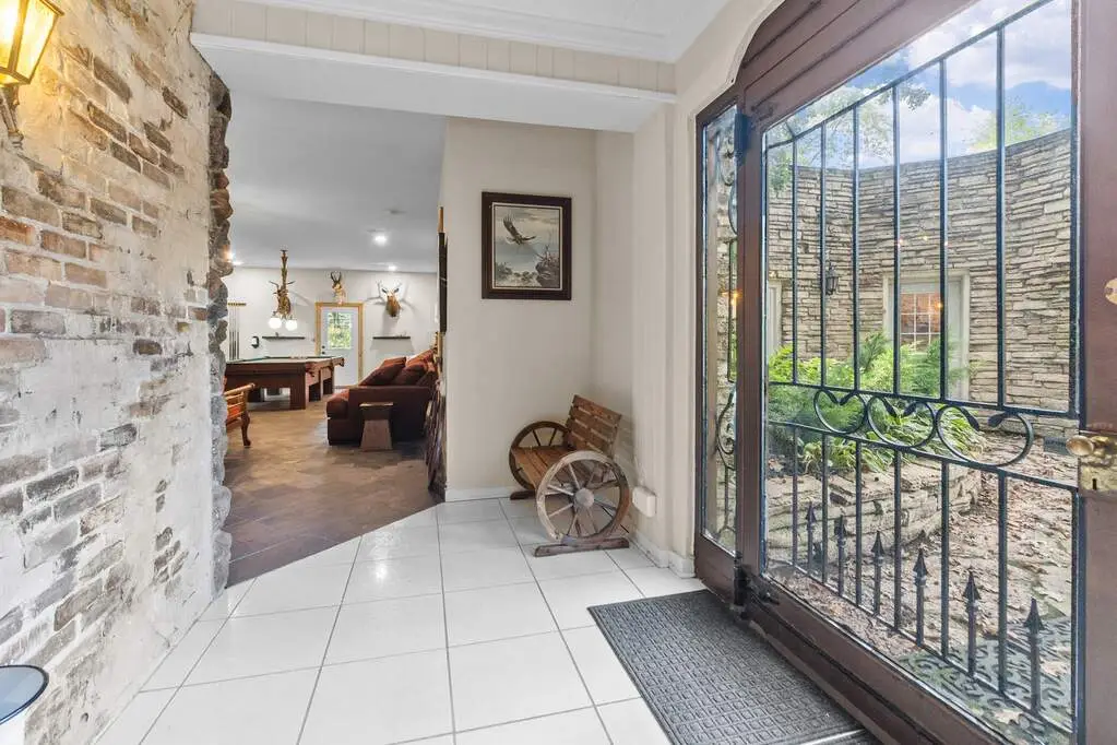 Welcome to one of Spring Grove's most captivating equestrian estates, where luxury, functionality, and natural beauty come together on over 9 acres of wooded and pasture grounds. Designed for those who dream of both refined living and wide-open space, this property is truly a destination. Your first stop is a versatile outbuilding thoughtfully designed with box stalls for small animals, generous storage, a large garage which can hold up to 14 vehicles and a remarkable event space. Complete with a full kitchen, two half baths, and expansive room for gatherings, it's the perfect setting for hosting celebrations, weddings, or private retreats. Opposite that are 2 pastures with their own barns for additional animals. The working farm currently has horses, goats, sheep, alpacas, ducks and chickens and a full time caretaker. The outdoor areas also consist of full size Italian bocce court, volleyball court and large children's playground. The entire property has European style lamp posts throughout which illuminates the entire property from front to back. The main residence, an impressive 9,000 square feet, offers an exceptional lifestyle. With 5 spacious bedrooms and 5 bathrooms, the home is built for comfort and entertainment. The home is built off a ravine which allows it beautiful views for miles of the valley. A full size theatre room invites movie nights at the highest level, while a dramatic wet bar with a custom live-edge wood top sets the stage for evenings with friends. A large party room all decked out in cedar wood can hold parties for up to 150 guests. Hidden behind a speakeasy-style entry lies an impressive wine cellar and tasting room - a true showstopper that exudes sophistication and charm. All custom built wine racks, a 20 foot live edge dining table, and custom built designed ceilings give it that true cave feeling for up to 20 of your friends. House was recently remodeled from top to bottom, all HVAC are new. Roofs have all been redone recently. State of the art whole house water filtration and softeners have recently been installed. Master bath has been recently remodeled with all Italian marble and views for miles from the bedroom. Entire property has been wired for sound, which includes both indoor and outdoor speakers to listen to your favorite music. Owner's private office has been completely restored by wood artisans to bring back the original feel of the wood from many years ago. Every detail is elevated by the backdrop of nature. Backing directly to Chain O'Lakes State Park, the property's entire back line touches the 7000 acre state park. Which offers hunting, fishing, and hiking. This property is truly one a kind offering unmatched privacy and panoramic views that stretch for miles. Whether enjoying the wooded trails, riding your horses across the pastures, or simply watching the sunset from your private retreat, this estate offers a lifestyle that is both extraordinary and rare. Call today for a private showing of this spectacular estate!
