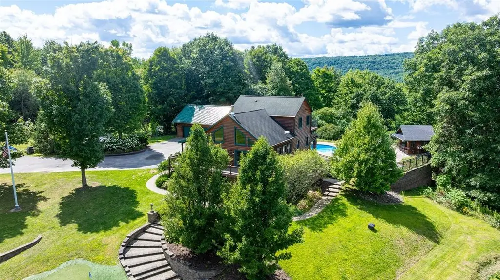 **ONE OF THE MOST BREATHTAKINGLY BEAUTIFUL RESORT STYLE HOMES NY HAS TO OFFER**THIS EXCEPTIONAL PIECE OF REAL ESTATE OFFERS THE PERFECT FUSION OF RUSTIC CHARM AND REFINED LUXURY**NESTLED AMID LUSH, TREE-LINED GROUNDS, YOU WILL FIND THE ULTIMATE PEACE AND TRANQUILITY** INGROUND POOL, OUTDOOR KITCHEN, CABANA/POOL HOUSE, AND HOT TUB ARE JUST A FEW OF THE OUTDOOR LUXURIES YOU WILL BE ABLE TO ENJOY**STEP INSIDE TO SOARING CEILINGS WRAPPED IN RICH NATURAL WOOD, BATHED IN SUNLIGHT THROUGH EXPANSIVE WINDOWS*C/B?B= PERFECTLY DESIGNED KITCHEN FEATURES NEW STAINLESS STEEL APPLIANCES, OVERSIZED ISLAND, AND EAT-IN, OVERLOOKING YOUR LIVING SPACE WITH AN EXQUISITE FLOOR TO CEILING STACKED STONE GAS FIREPLACE*THE PRIMARY SUITE INCLUDES CUSTOM BAR, PELLET STOVE PERFECT FOR THOSE COLDER NIGHTS, FULL BATH AND WALK IN CLOSETS* THIS HOME ALSO INCLUDES AN IN-LAW OR TEEN SUITE WITH SPIRAL STAIRCASE, FULL BATH, LOFT BEDROOM, AND DOORS TO YOUR BACKYARD PATIO/POOL AREA* PRIVATE DRIVEWAY, HUGE POND WITH PERMANENT DOCK, PUTTING GREEN, TWO STORY BALCONIES, AND SO MUCH MORE** THIS PROPERTY IS PERFECT FOR FAMILY LIVING OR THE PERFECT VENUE FOR YOUR NEXT EVENT OR EVEN AIR BNB!!!**