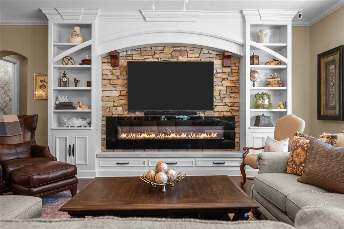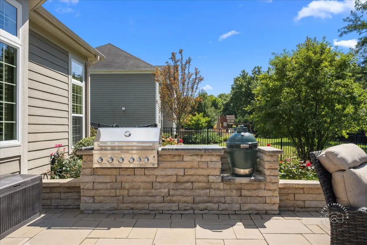 This stunning true ranch home is deceiving from the outside, offering nearly 2,900 sq. ft. of thoughtfully designed living space with an exceptional custom floor plan and high-end finishes throughout. From the moment you step inside, you'll notice the architectural details including custom crown moldings, baseboards, and cabinetry. The gourmet kitchen features granite countertops, premium appliances, and an open flow perfect for both daily living and entertaining. Offering three spacious bedrooms, 2.5 baths, and a versatile first-floor office, this home balances comfort and functionality. The outdoor living space is extraordinary-a fully fenced yard backing to a tree line, beautifully landscaped with mature trees, sprinkler system, and an expansive paver patio complete with outdoor fireplace and built-in grill. Perfect for gatherings large or small. Additional highlights include a three-car garage and a full unfinished basement for future expansion. Ideally located just minutes from downtown St. Charles, St. Charles North High School, I-90, shopping, and more, this newer custom-built home offers privacy, luxury, and convenience in one package.