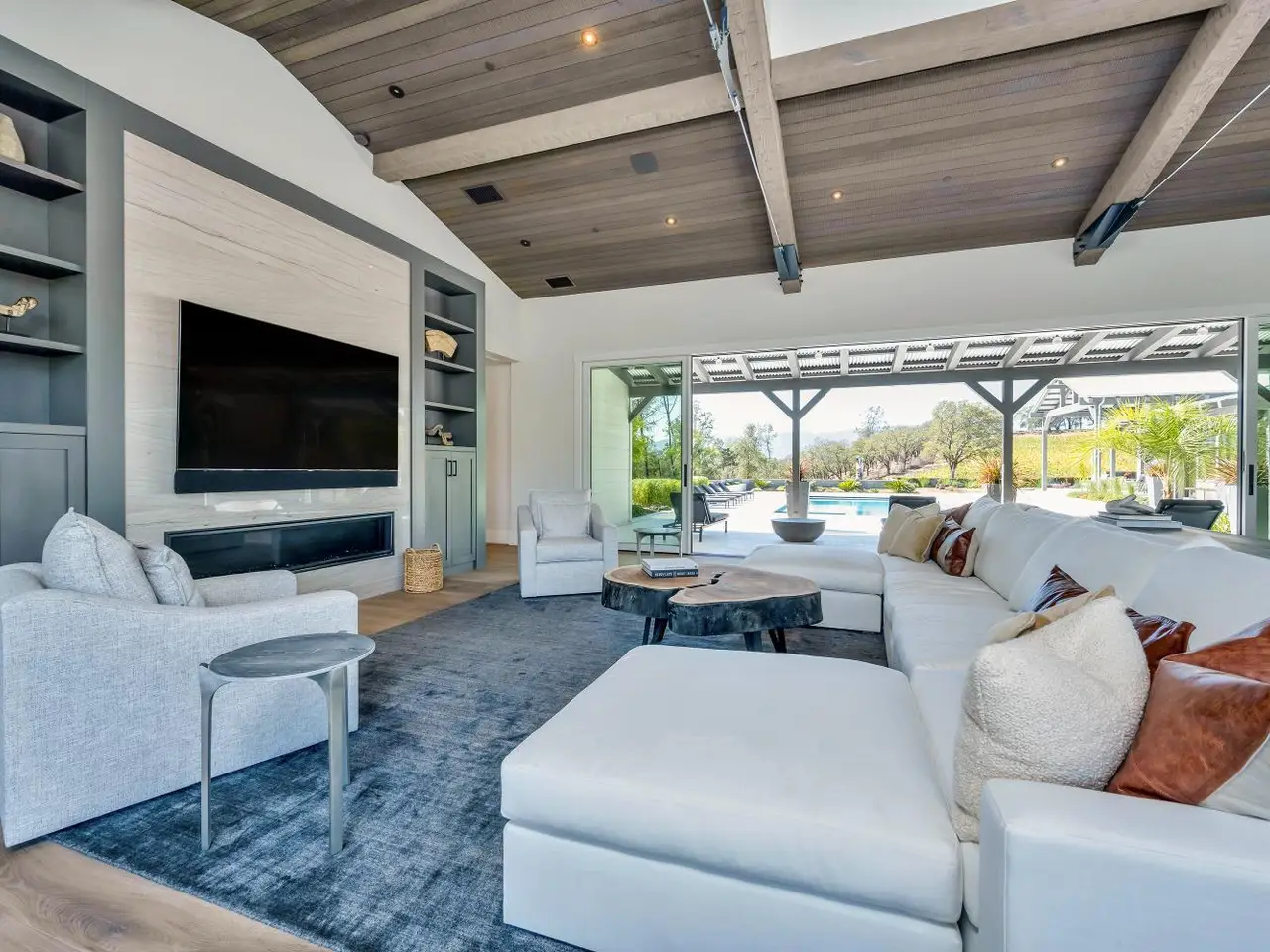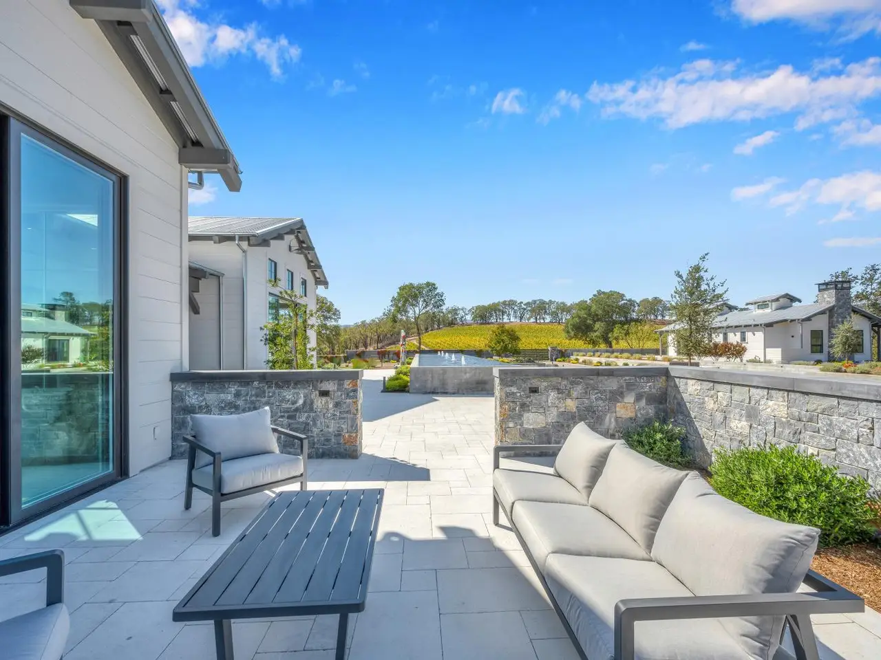A luxury estate set on 8.04 acres across from the famed upper ridge vineyards of Joseph Phelps, this property has been meticulously designed to maximize privacy, capture vineyard vistas, and harmonize with the surrounding topography. The 7,920 sq. ft. main residence showcases four bedrooms and is constructed with the highest quality materials and finishes. Inside, the home features a dramatic great room, a true chef's kitchen, office/study, walk-in wine cellar, media lounge, and a primary suite with its own private entry lounge. A secondary 1,200 sq. ft. dwelling offers two bedrooms, a full kitchen, living room, and covered patios at both the front and back, providing ideal accommodations for guests. Outdoor living is equally compelling, with more than 2,600 sq. ft. of covered space designed for seamless indoor/outdoor living. Expansive limestone patios lead to a fully equipped outdoor kitchen with pizza oven, resort-style pool and spa, two firepits, an outdoor fireplace, and a bocce courtall thoughtfully crafted for both intimate gatherings and large-scale entertaining.
