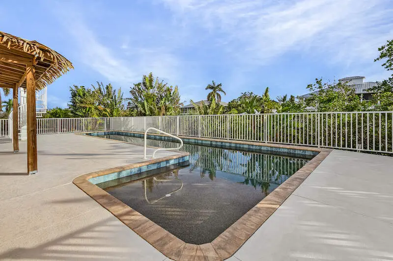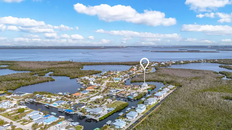 As you enter this unique custom home you will be surrounded by tropical colors accented with the warm tones of bamboo, cypress and mahogany. The architecture and decor was inspired by the current owners' travels to the Keys, Caribbean and South Pacific. The floor plan was designed with the retired couple in mind anticipating many visits from adult children and grandchildren. The master suite is located on the main floor, while the third floor has three bedrooms and its own bathroom. This giving privacy to all when wanted. A very comfortable home for day to day living. With its many windows and screened porches this home is bright and airy often times not even needing the AC due to the flow through breezes. There is even a small screened porch directly off the kitchen that was designed just for the grill. The floor treatments are a combination of tile, carpet, and wood for easy maintenance and sound control. Just inside the front door is a room that was designed as an office with double entry doors, perfect for a business in the home. There is a conveniently located elevator that goes to all three floors. On the main floor the elevator stop is in the kitchen making bringing up groceries from the garage to the kitchen a breeze. The ground level offers a large garage and an air conditioned bonus room with an attached bath and outdoor shower. The garage doors are 9 foot high along with a 10 foot ceiling in the garage. Lots of room for vehicles and storage. Outside you will find nearly one half acre of land with approximately 360 feet of waterfront. The environmentally friendly landscape includes many palms, bamboo, bougainvillea, hibiscus, oleander and even a gumbo limbo tree. The shoreline is lined with sea grapes and mangroves, true Florida native plants. As you step down onto the approximately 100 feet of dock you will find a 20,000 pound and a 7000 pound boat lift along with a covered fish cleaning station. From the main floor of the home you will enjoy descending the spiral staircase and onto the pool deck of the 50 foot by 10 foot lap pool. The pool also has an adjacent shallow area especially for the toddler grandchildren. On those hot Florida days you will like the pool deck option of the shade of the tiki and using the wonderful outside tiki shower. As an added feature all outside deck railings are low-maintenance aluminum, and decks and docks are composite planked. While not included in the price the price, some furnishing and the 21 foot Key West boat are negotiable.