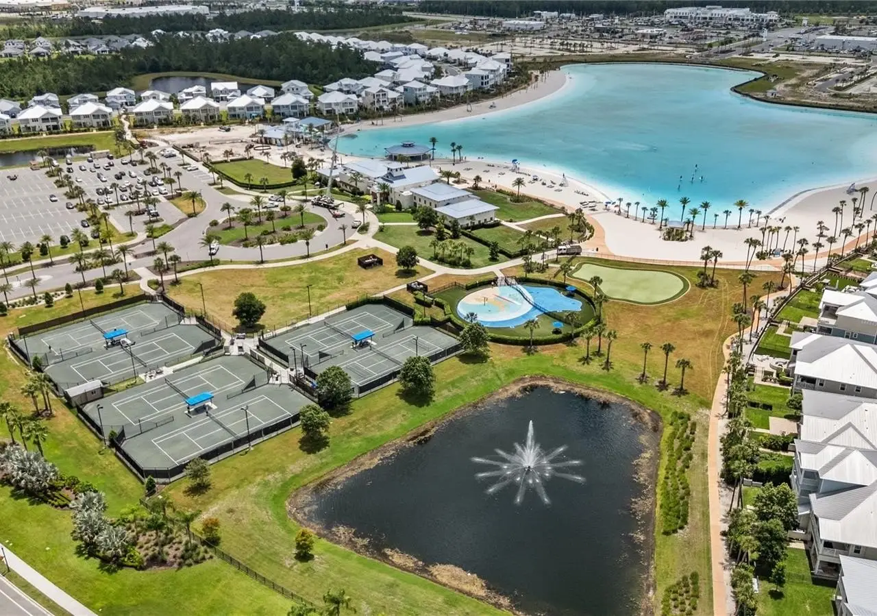 One or more photo(s) has been virtually staged. Welcome to Paradise at the Beachwalk! This is more than just a home — it’s a front-row seat to the ultimate lagoon lifestyle. Perfectly positioned on a premium corner lot with direct waterfront views and access. This is the only true 4-bedroom home on the lagoon, offering an unbeatable blend of luxury, comfort, and thoughtful upgrades throughout. Step inside and you’ll be greeted by extra-large windows that frame breathtaking views of the turquoise lagoon. The chef-inspired kitchen features soft-close cabinets, pull-out drawers, quartz countertops, stainless steel appliances, and an oversized walk-in pantry that provides all the storage you could ever need. The primary suite is a true retreat with a rainfall shower and an added window that brings in peaceful lagoon views. The home is wired for electric vehicle charging (50 amp), includes automatic stair lighting, and additional R19/30 insulation between floors for added privacy and soundproofing. Living in Beachwalk means every day feels like a vacation. Enjoy private beach access, a state-of-the-art fitness center, on-site dining, tennis, pickleball, paddleboarding, waterslides, and so much more. If you're looking for unbeatable views, the best location, and a home that checks every box — this is it. Schedule your private showing today and experience the Beachwalk lifestyle for yourself.