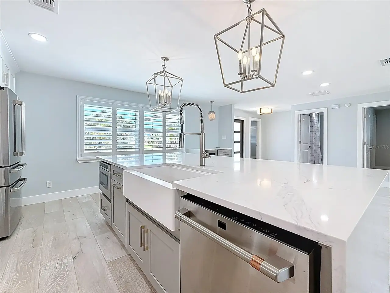 Welcome to Vina Del Mar!  A four-bedroom, two-bathroom waterfront home.  Upon entering the home, you will be greeted by a bright, airy open-plan living area, complete with a picture-perfect view of the waterfront backyard. The new gourmet kitchen is a culinary dream, featuring high-end all-new (2023) "Cafe" appliances, quartz countertops and generous storage for all your dining needs.  A spacious and comfortable living room completes the space, perfect for family gatherings and entertaining friends.   Hurricane rated windows and doors throughout the house. A new hurricane rated garage door was installed in 2023. The master bedroom is tucked away, complete with a walk-in closet and beautiful bathroom equipped with a backlit LED mirror.  The 3 additional bedrooms are perfect for family members, guests, or home office space. The secondary bathroom has dual sinks, a bathtub, and a doorway to one of the bedrooms.  A/C 2023, water heater 2022 with an additional instant hot water heater in the kitchen.  The backyard offers ample space for outdoor furniture, or a future outdoor oasis to kick back and soak up the sun while enjoying the views of the water.  Newly installed private dock with a 30,000 lb. custom boat lift makes it the perfect haven for boating enthusiasts and water lovers alike!  No bridges to the Gulf.  Walk, bike or golf cart to charming shops, restaurants, and the award-winning sunsets of Historic Pass-A-Grille! This golf cart-friendly neighborhood makes it easy to enjoy the Vina Del Mar Park that includes: small and large dog parks, tennis, pickleball, basketball, fenced-in playgrounds, fitness areas, and a covered picnic shelter.   Easy interstate access to St. Petersburg's vibrant downtown or to catch a Rays game. Memories made at the beach house last a lifetime!