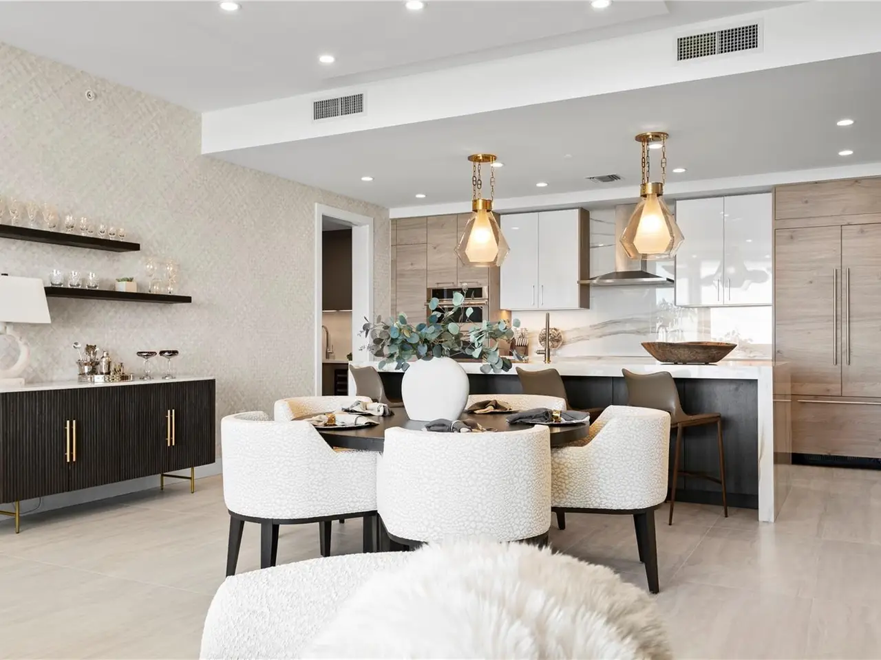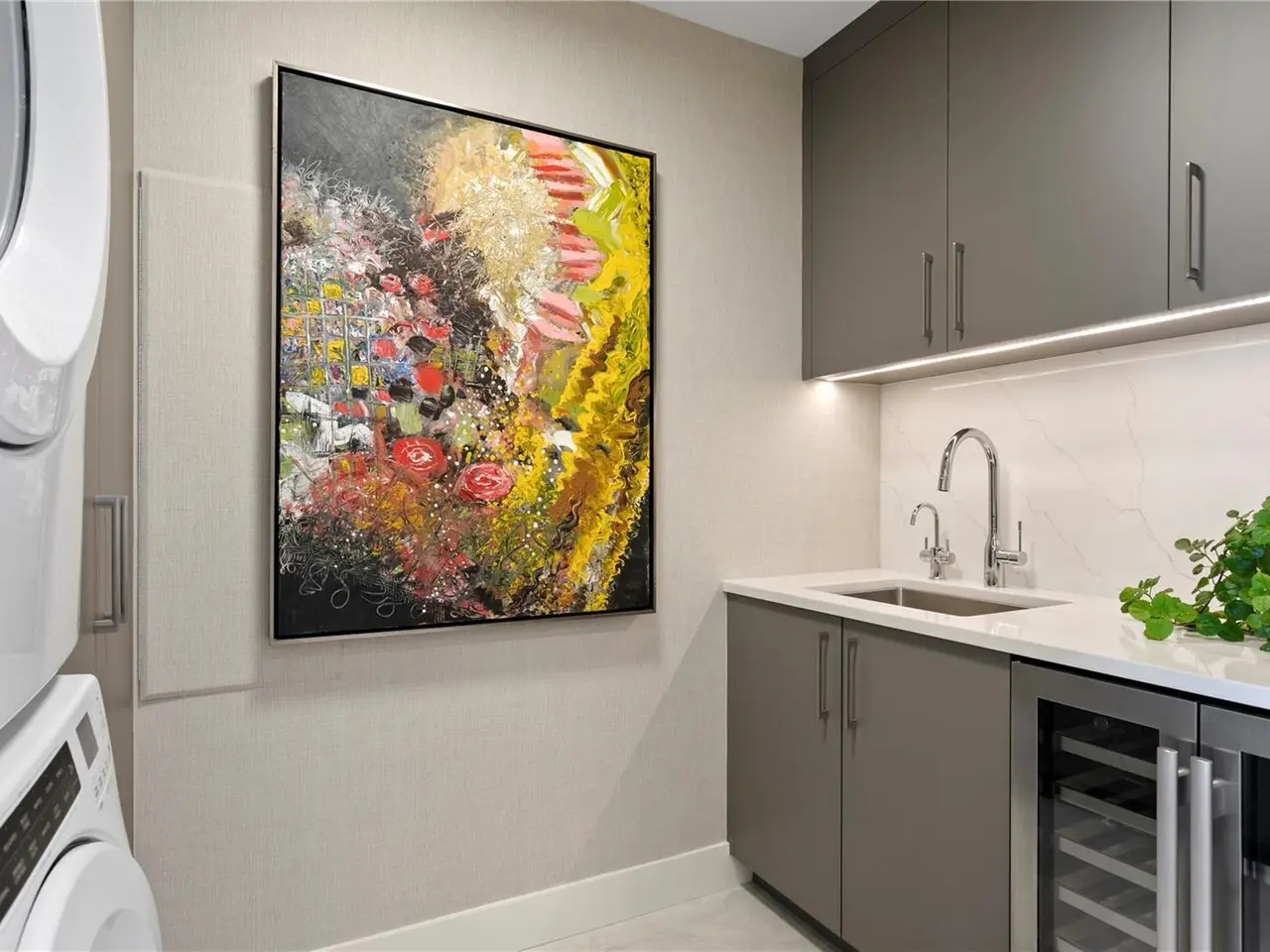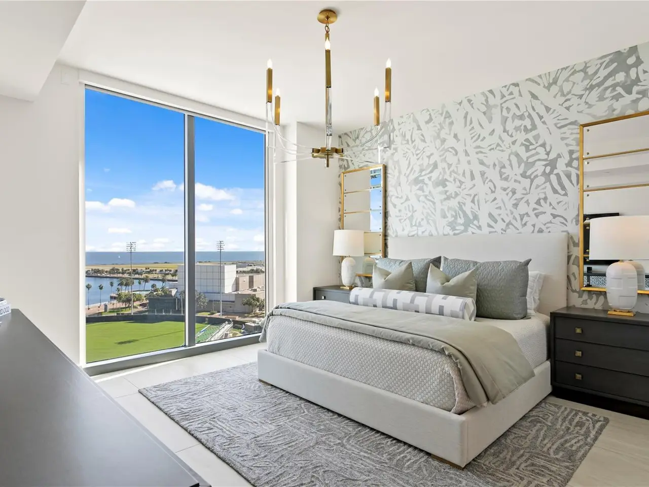 Fully Reimagined and designed in 2024, this new condo is a true masterpiece where every inch has been thoughtfully curated for the most discerning tastes. From the moment you step through the custom archway, the level of craftsmanship is evident, setting the tone for what's to come. The OPEN-CONCEPT LIVING SPACES are an absolute showstopper, featuring exquisite, HAND-SELECTED DESIGNER TOUCHES that elevate the space to another level of elegance. The main attraction is the CUSTOM MEDIA WALL WITH HIDDEN GUEST ROOM DOOR. The tone in the living room is set with THREE SILK-WRAPPED CHANDELIERS that illuminate, while a FRAMED ART WALL with TEXTURED WALLPAPER creates a bold statement. The ELEGANT TRAY CEILING with RECESSED LIGHTING enhances the sense of grandeur throughout the home. At the heart of this residence is a CHEF'S KITCHEN that is as beautiful as it is functional. The approx. 5'x11' EXPANDED ISLAND WITH A DOUBLE WATERFALL EDGE and concealed cabinetry, all WRAPPED IN SLEEK PORCELAIN, is a true work of art. The matching backsplash ties the entire space together in perfect harmony. The BUTLER'S PANTRY is a fusion of practicality and indulgence, complete with a WINE COOLER, QUARTZ COUNTERTOPS, CUSTOM CABINETRY, and laundry space, offering an unparalleled level of convenience. The DEN IS AN OASIS OF FUNCTIONALITY AND ELEGANCE, equipped with FULL-HEIGHT CUSTOM CABINETRY, an oversized chandelier that demands attention, and wallpapered accents for a refined, personalized touch. The OWNER'S SUITE OFFERS THE ULTIMATE RETREAT, combining peace and luxury with a WALLPAPERED ACCENT WALL, a DESIGNER CHANDELIER, and CUSTOM CLOSETS that are as stunning as they are spacious. The SPA-LIKE EN-SUITE BATH takes relaxation to the next level, boasting a CUSTOM LINEN CLOSET illuminated to highlight its beauty, along with three luxurious pendant lights. Every aspect of this home has been meticulously upgraded, from TILE FLOORING and LUTRON ELECTRIC BLINDS to thoughtfully curated designer finishes on walls, trim, and ceilings. As a resident of Saltaire, you'll enjoy world-class amenities including a resort-style pool, a state-of-the-art fitness center, expansive club rooms surrounded by glass that bring the outdoors in, and a pet-friendly dog park with a washing station. The 7th-floor terrace offers breathtaking panoramic views of the bay and downtown skyline, while the vibrant city life is just steps away from your front door. This is truly an extraordinary opportunity to live in a LUXURY HOME WHERE UNPARALLELED DESIGN MEETS EXTRAORDINARY CONVENIENCE. With the added peace of mind of the builder's warranty, this is a rare find in the heart of downtown.
