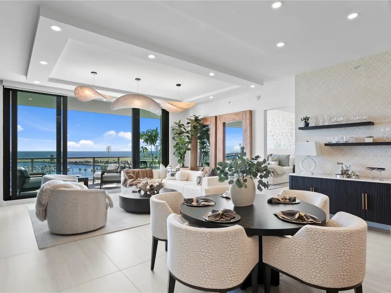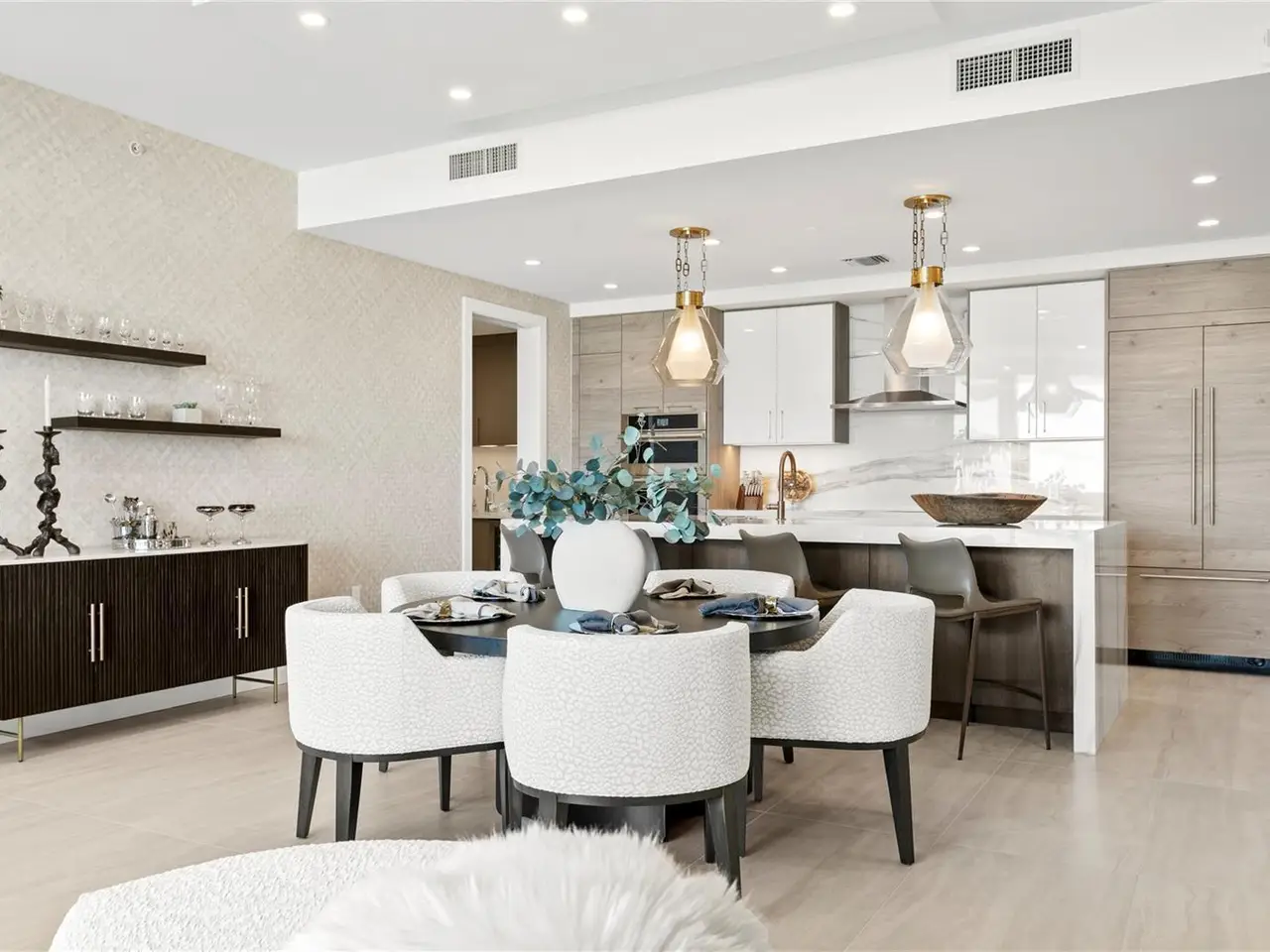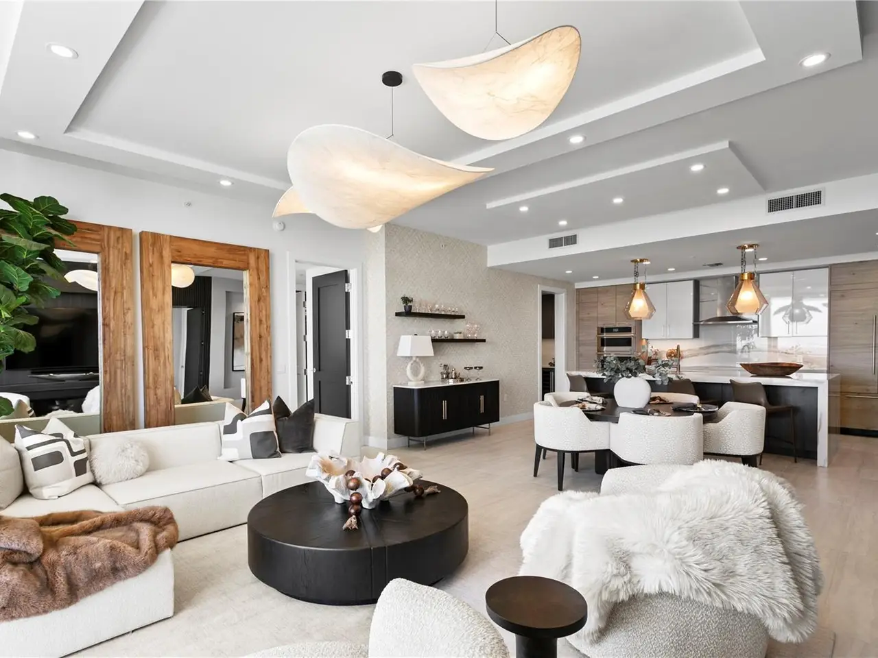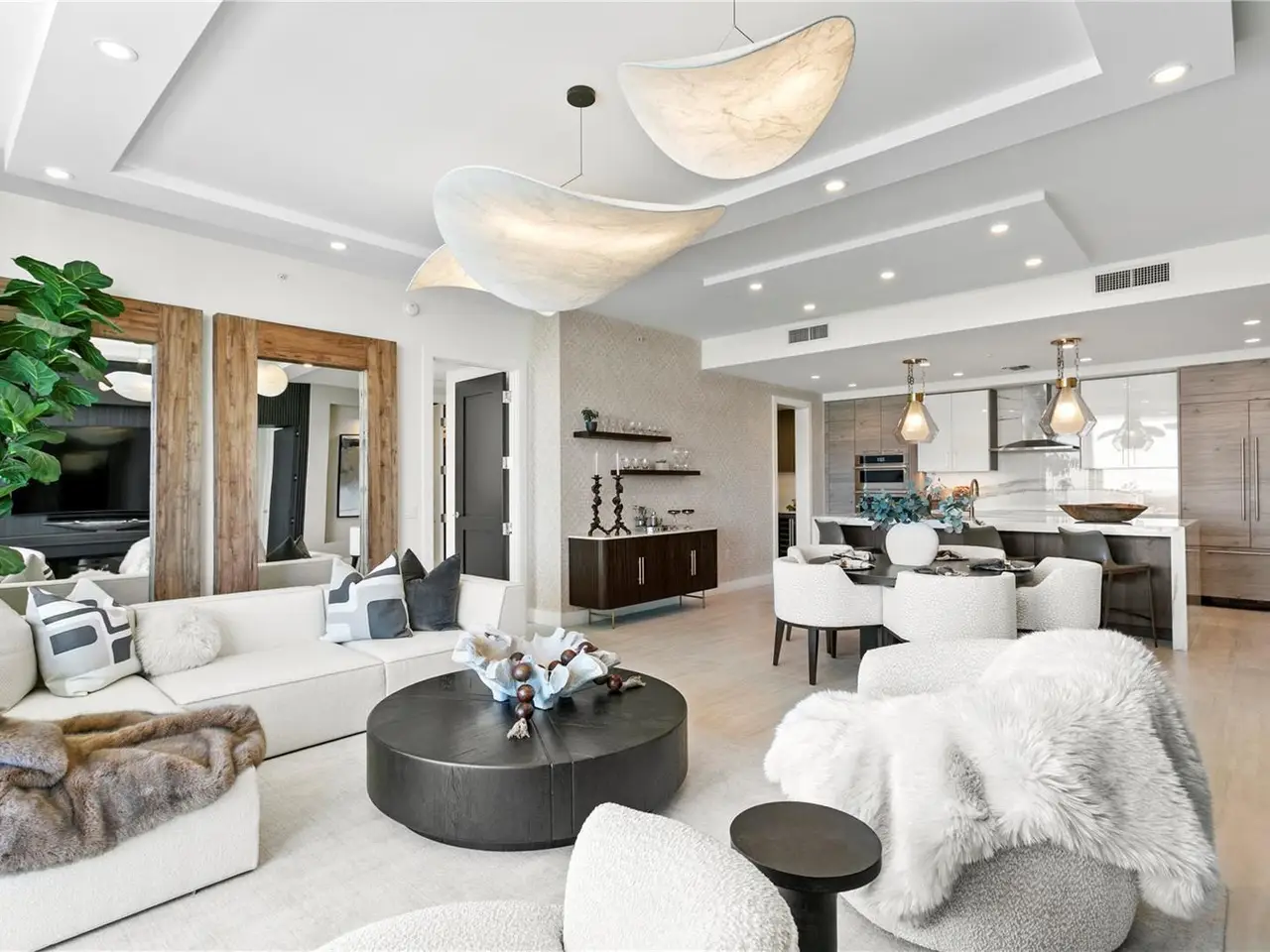 Fully Reimagined and designed in 2024, this new condo is a true masterpiece where every inch has been thoughtfully curated for the most discerning tastes. From the moment you step through the custom archway, the level of craftsmanship is evident, setting the tone for what's to come. The OPEN-CONCEPT LIVING SPACES are an absolute showstopper, featuring exquisite, HAND-SELECTED DESIGNER TOUCHES that elevate the space to another level of elegance. The main attraction is the CUSTOM MEDIA WALL WITH HIDDEN GUEST ROOM DOOR. The tone in the living room is set with THREE SILK-WRAPPED CHANDELIERS that illuminate, while a FRAMED ART WALL with TEXTURED WALLPAPER creates a bold statement. The ELEGANT TRAY CEILING with RECESSED LIGHTING enhances the sense of grandeur throughout the home. At the heart of this residence is a CHEF'S KITCHEN that is as beautiful as it is functional. The approx. 5'x11' EXPANDED ISLAND WITH A DOUBLE WATERFALL EDGE and concealed cabinetry, all WRAPPED IN SLEEK PORCELAIN, is a true work of art. The matching backsplash ties the entire space together in perfect harmony. The BUTLER'S PANTRY is a fusion of practicality and indulgence, complete with a WINE COOLER, QUARTZ COUNTERTOPS, CUSTOM CABINETRY, and laundry space, offering an unparalleled level of convenience. The DEN IS AN OASIS OF FUNCTIONALITY AND ELEGANCE, equipped with FULL-HEIGHT CUSTOM CABINETRY, an oversized chandelier that demands attention, and wallpapered accents for a refined, personalized touch. The OWNER'S SUITE OFFERS THE ULTIMATE RETREAT, combining peace and luxury with a WALLPAPERED ACCENT WALL, a DESIGNER CHANDELIER, and CUSTOM CLOSETS that are as stunning as they are spacious. The SPA-LIKE EN-SUITE BATH takes relaxation to the next level, boasting a CUSTOM LINEN CLOSET illuminated to highlight its beauty, along with three luxurious pendant lights. Every aspect of this home has been meticulously upgraded, from TILE FLOORING and LUTRON ELECTRIC BLINDS to thoughtfully curated designer finishes on walls, trim, and ceilings. As a resident of Saltaire, you'll enjoy world-class amenities including a resort-style pool, a state-of-the-art fitness center, expansive club rooms surrounded by glass that bring the outdoors in, and a pet-friendly dog park with a washing station. The 7th-floor terrace offers breathtaking panoramic views of the bay and downtown skyline, while the vibrant city life is just steps away from your front door. This is truly an extraordinary opportunity to live in a LUXURY HOME WHERE UNPARALLELED DESIGN MEETS EXTRAORDINARY CONVENIENCE. With the added peace of mind of the builder's warranty, this is a rare find in the heart of downtown.