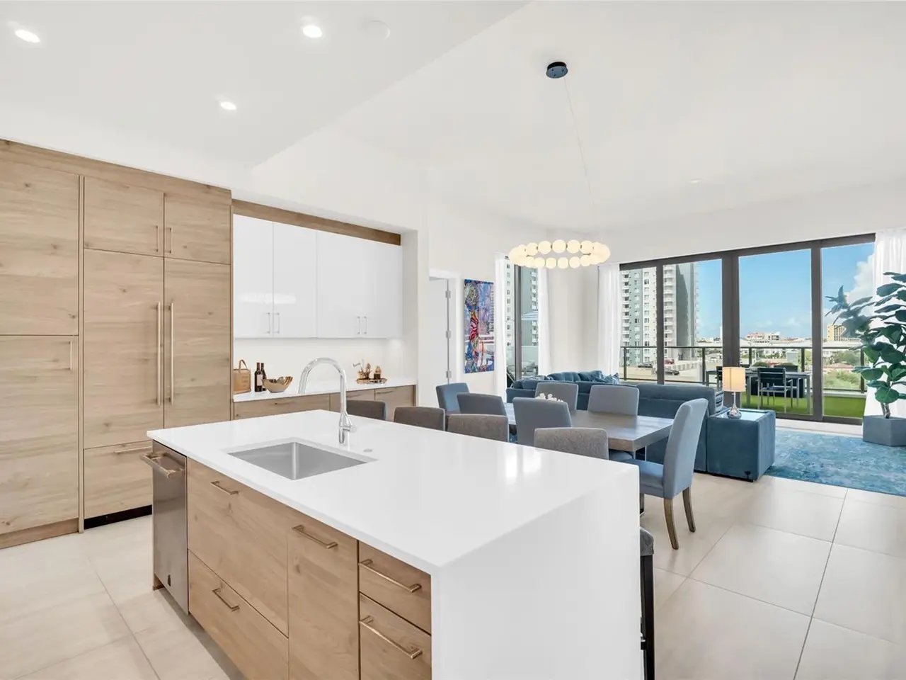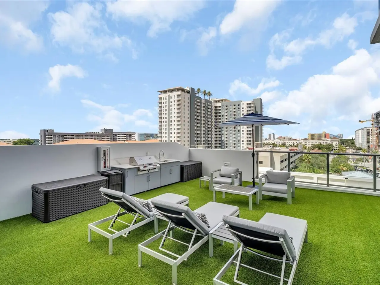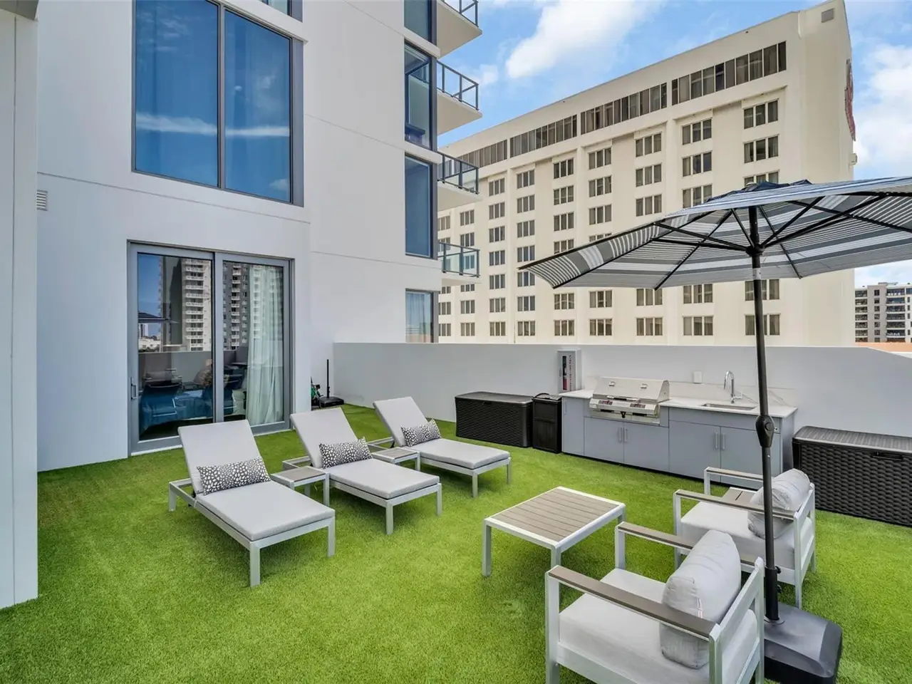 Exceptional Indoor-Outdoor Living at Saltaire: Rarely Available Terrace Residence Experience the pinnacle of luxury living in this rarely available 2-bedroom + den, 2.5-bath residence at Saltaire, where refined interiors blend seamlessly with one of the most impressive outdoor living spaces in downtown St. Petersburg. Spanning 1,667 square feet and offered fully furnished (excluding artwork), this home is one of only three residences located directly on the amenity deck, placing world-class resort-style features just steps from your door. Inside, you'll find 12-foot ceilings, elegant porcelain tile flooring, lighting, and window treatments, creating a sense of modern sophistication throughout. Both bedrooms include built-in headboards and walk-in closets, while the spa-inspired bathrooms offer a serene retreat. A well-appointed laundry room with additional cabinetry adding everyday functionality. The true centerpiece of this home is its expansive 1,158-square-foot private terrace, a rare urban sanctuary designed for both entertaining and relaxation. This outdoor space features lush Astroturf, a fully equipped outdoor kitchen with grill, a hose for easy upkeep, and high-end outdoor furnishings included with the sale. Whether hosting guests or enjoying a quiet evening under the stars, this terrace offers a lifestyle unlike any other in the city. Additional features include two (2) parking spaces and a climate-controlled storage unit for added convenience. As a resident of Saltaire, enjoy access to concierge service, a state-of-the-art fitness center, resort-style pool, and a spectacular amenities terrace with sweeping views of Tampa Bay, marinas and St Pete Pier. Perfectly positioned in the heart of downtown St. Petersburg, this residence offers immediate access to award-winning dining, cultural attractions, waterfront parks, and the vibrant marina district. strict.