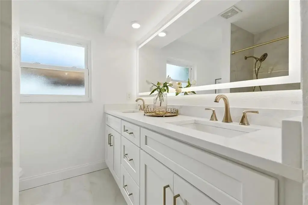 Magnificent Move-In Ready Four-Bedroom Waterfront Pool Home. This is one of those rare, needle-in-a-haystack homes that checks every box on a buyer’s wish list. From the ground up, every detail—inside and out—has been meticulously reimagined to cater to even the most discerning homeowner. From the moment you step inside, you'll be captivated by the stunning modern retreat that unfolds before you. Breathtaking water views greet you from nearly every room, while brand-new flooring flows seamlessly throughout, enhancing the home's elevated custom feel. What truly sets this property apart is its exceptional canal positioning. Unlike typical waterfront homes that face another backyard, this residence boasts unobstructed long-range views straight down the canal—delivering privacy, serenity, and the ultimate visual appeal. The open-concept living space remains beautifully intact, free from awkward patio conversions, step-downs, or unsightly ceiling beams. It’s a clean, cohesive design that maintains both form and function. Enjoy worry-free living with an array of high-end updates: a brand-new elevated HVAC system (2025), new water heater (2025), upgraded electrical, ample storage, and a fully redesigned kitchen and bathrooms. No expense was spared in transforming this rare four-bedroom, two-bath home into a modern showpiece. Set on an oversized lot, the property accommodates up to eight vehicles between the expansive driveway and garage. With no low bridge restrictions, enjoy direct Gulf and Bay large boat access from your own backyard with a private dock and 9,000 lb boat lift—perfect for boating, fishing, island hopping, or relaxing at nearby sandbars. The jaw-dropping chef’s kitchen is a dream, featuring custom cabinetry, designer lighting, brand-new Café appliances, quartz countertops with sleek hidden wireless chargers and dramatic waterfall edges. The luxurious primary suite feels like a five-star resort. Indulge in a spacious walk-in closet, a custom vanity with backlit mirror, elegant tile flooring, striking fluted tile walls with dual shower heads— all carefully curated to blend comfort with sophisticated design. Step through any of the four rear-facing sliders to your beautifully updated deck, ideal for entertaining or unwinding as you watch dolphins and manatees play in the water. The remodeled pool area is equally impressive, featuring new pavers, professional landscaping, upgraded lighting, and a tongue-and-groove ceiling—setting the scene for unforgettable evening swims or relaxed outdoor gatherings. Even the garage floor was thoughtfully upgraded with a sleek epoxy finish—no detail has been overlooked. Located in the warm and welcoming community of Ponderosa Shores—once hailed as "St. Pete’s Hidden Gem"—you’ll be just minutes from the vibrant energy of Downtown St. Petersburg. Cruise this golf-cart-friendly neighborhood, join the festive Shore Acres Holiday Parade, or enjoy a scenic bike ride along the Northeast Trail to Historic Vinoy Park and Downtown. With its unbeatable location, top-to-bottom updates, and luxurious waterfront lifestyle, this move-in ready masterpiece is a rare find. Don’t wait—schedule your private showing today and experience the pinnacle of Florida waterfront living.