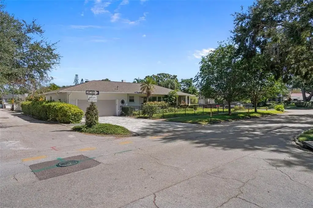 Visualize living in this elegant home located in the desirable Historic Old Northeast. Situated on an oversized 85’ × 110’ corner lot in a non-flood zone. The home offers a sense of space in this sought-after neighborhood. Step inside and you’ll instantly feel the charm that makes this home so special, with original terrazzo floors, warm hardwood floors, and vintage glass-panel interior doors that reflect its enduring authenticity. The spacious 2-bedroom, 2-bath, 2,553 sq. ft. floor plan offers generous room sizes and flexible spaces for endless possibilities. Natural light fills the home through large windows, and the welcoming sitting area just inside the front door provides the perfect spot to gather with friends. This inviting space opens through glass French doors to the living room, which features curved plaster walls and a fireplace. Just beyond the living room, a versatile den offers the perfect space for a home office, gym, or hobby room filled with light. The kitchen blends style and function with granite countertops, a five-burner gas cooktop, pot-filler, wine refrigerator, and premium Thermador appliances. The kitchen also features an island with seating for four, a convenient coffee nook, and abundant cabinetry. Off the kitchen, a large 24’ × 18’ family room—currently used as a media room—provides additional living space just inside from the backyard pool. The primary bedroom suite offers comfort and style with an ensuite bathroom, walk-in closet, ceiling fan, and plantation shutters on the windows. Down the hallway, you’ll find the second bathroom, a laundry closet with built-in shelving, and the spacious second bedroom, which can easily accommodate two beds—perfect for siblings or guests. Outside, the property is designed for easy Florida living. The entire yard is fully fenced, creating a perfect space for pets or play. The saltwater pool is surrounded by low-maintenance tropical landscaping, offering a private retreat for relaxing or entertaining. An irrigation system on a private well, natural-gas service from the street, and a dedicated gas hook-up for outdoor grilling make outdoor living effortless. A true two-car garage plus a new paver parking pad provide rare convenience in this coveted neighborhood. Located in one of St. Pete’s most desirable areas, you’re just blocks from Coffee Pot Bayou, Vinoy Park, and vibrant downtown St. Petersburg—home to world-class dining, boutique shopping, art galleries, and waterfront parks.
