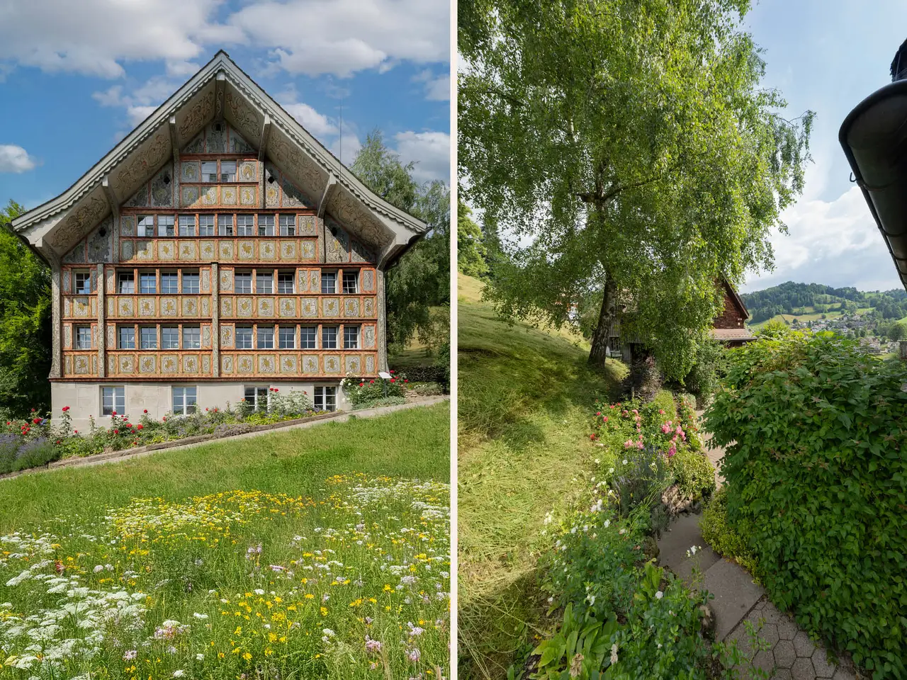 Nestled in the gentle rolling hills of St. Peterzell, the charming residence “Sonnental” offers a spacious floor plan of approximately 386.57 m² and features 11 rooms, combining generous living space with historic character. The peaceful rural setting provides pure relaxation with plenty of room for family, nature, and creative uses. The generous garden, sunny terrace, and barn create a unique ambiance for those who value space and individuality. Thanks to a separate entrance, the additional office is ideal for working from home or quiet creative pursuits. The living area’s fireplace adds warmth and coziness on cooler days. Despite its idyllic location, public transport is easily accessible. Perfect for families, entrepreneurs, or anyone seeking a distinctive home in a natural setting – whether as a primary residence or a second home.