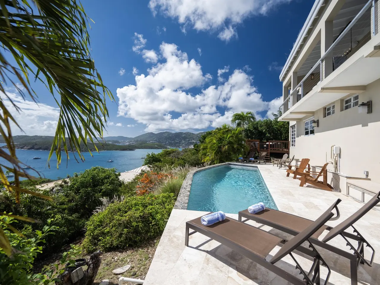 SPECTACULAR VIEW, AMAZING LOCATION! Welcome to your stunning slice of paradise in St. Thomas, where luxury meets island living. Nestled atop a lush hillside, this exquisite 4-bedroom, 3.5-bath residence offers breathtaking panoramic views of the crystal-clear Caribbean Sea. Enjoy dinner and drinks from your covered deck or relax by the pool. This home offers it all. The home also has the option to have one of the bedrooms as a separate apartment/caretaker unit/nanny quarters. Villa Solaris was remodeled in 2020 with gorgeous finishes including a new gourmet kitchen boasting top-of-the-line Thermidor appliances, sleek marble countertops, and custom cabinetry. Conveniently located near the newly opened the Westin Resort, pristine beaches, and the cruise ship dock.