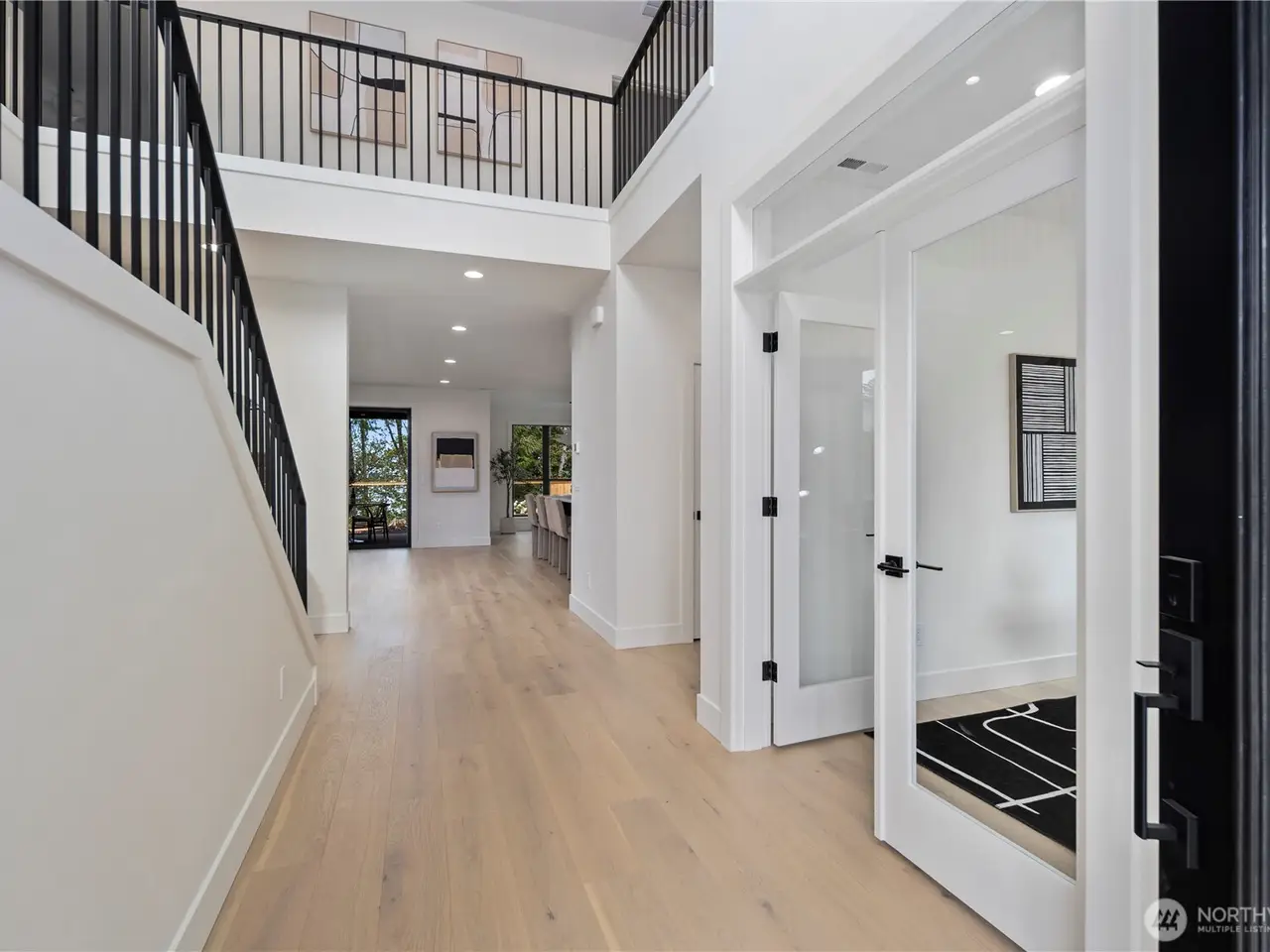 Luxurious custom built home in the heart of downtown Steilacoom. This home is 5 Bdrm 4.25 bath with an office on the main! Open concept floor plan w/ vaulted Entry & luxury engineered flooring throughout the home, beautiful gas fireplace in the living room area, designer kitchen w/ SS appliances, quartz counters & large island, tile throughout the bathrooms, Main-level guest suite with 3/4 bath. Primary bedroom with a peekaboo view of the sound, its own 5pc bath with his and hers walk-in closets, 2 car garage, covered outside patio with fully fenced yard, also professionally designed landscaping with irrigation front and back yard.No HOA, located just minutes away from downtown, parks, beaches, coffee shops, and the Anderson Island ferry.