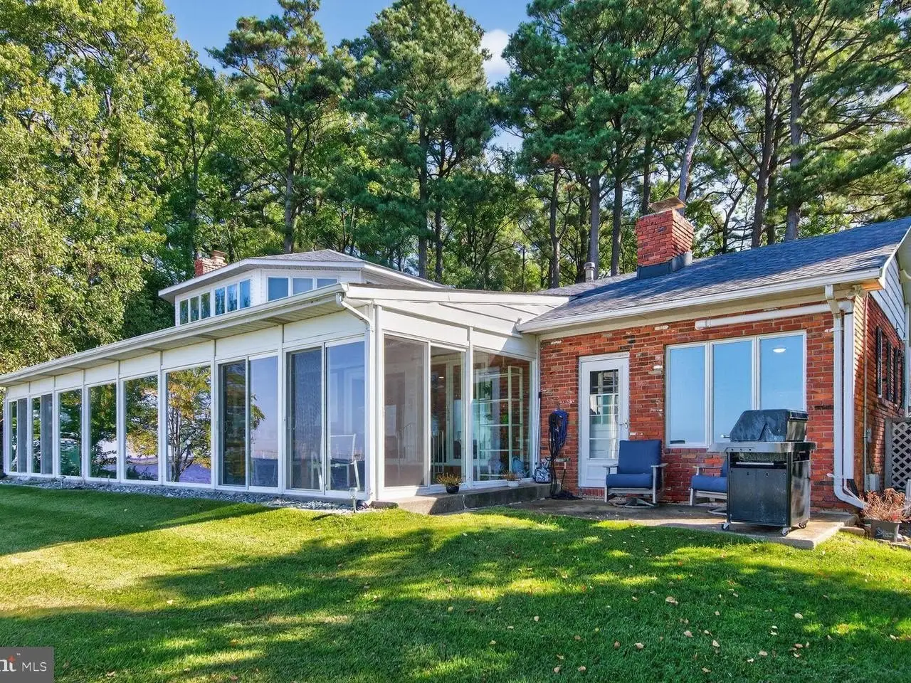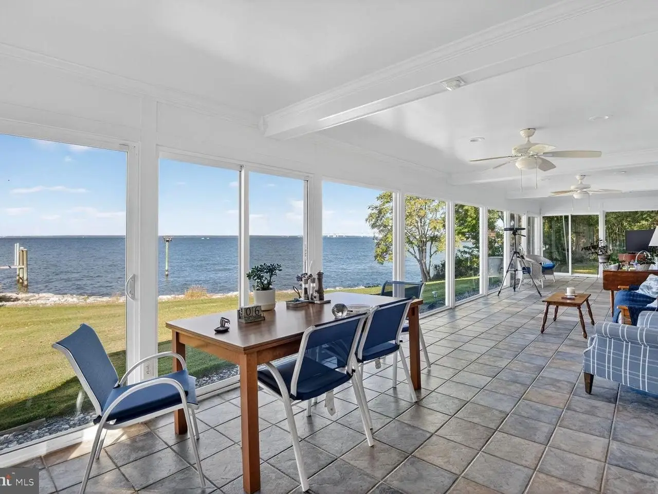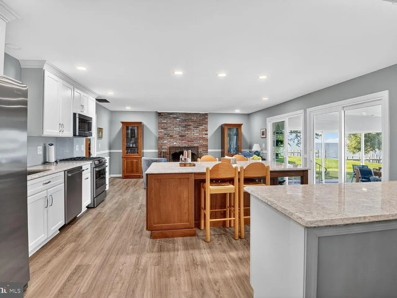 MATAPEAKE ESTATES NEIGHBORHOOD Unrivaled panoramic views across the Bay to Annapolis and Naval Academy, glorious sunset views and southwesterly breezes - every day feels like a vacation. Conveniently located just minutes from the Bay Bridge or Rt 301/50/404 ,community beach, boat ramp, Golf Course, marinas ,stores and close proximity to daily catch eateries, nature/recreational parks , the Kent Island Trail and the Matapeake beach and Beach Club. This solid brick rancher has been updated in 2018, there is a second story suite , the floorplan was transformed to an open floor plan with gleaming white kitchen cabinets , 2 bricked fireplaces and a wonderful spacious all season sun room. The dock has a 12000lbs lift and sun plat form to enjoy the southwesterly breezes. The property borders a beautiful wooded open space which provides privacy and protection from the elements. In 2026 the property will be able to connect to public sewer, all this is a unique opportunity for second home buyers or commuters alike. The Community charges $ 240 for road maintenance Buyers are offered a 1 year home warranty.