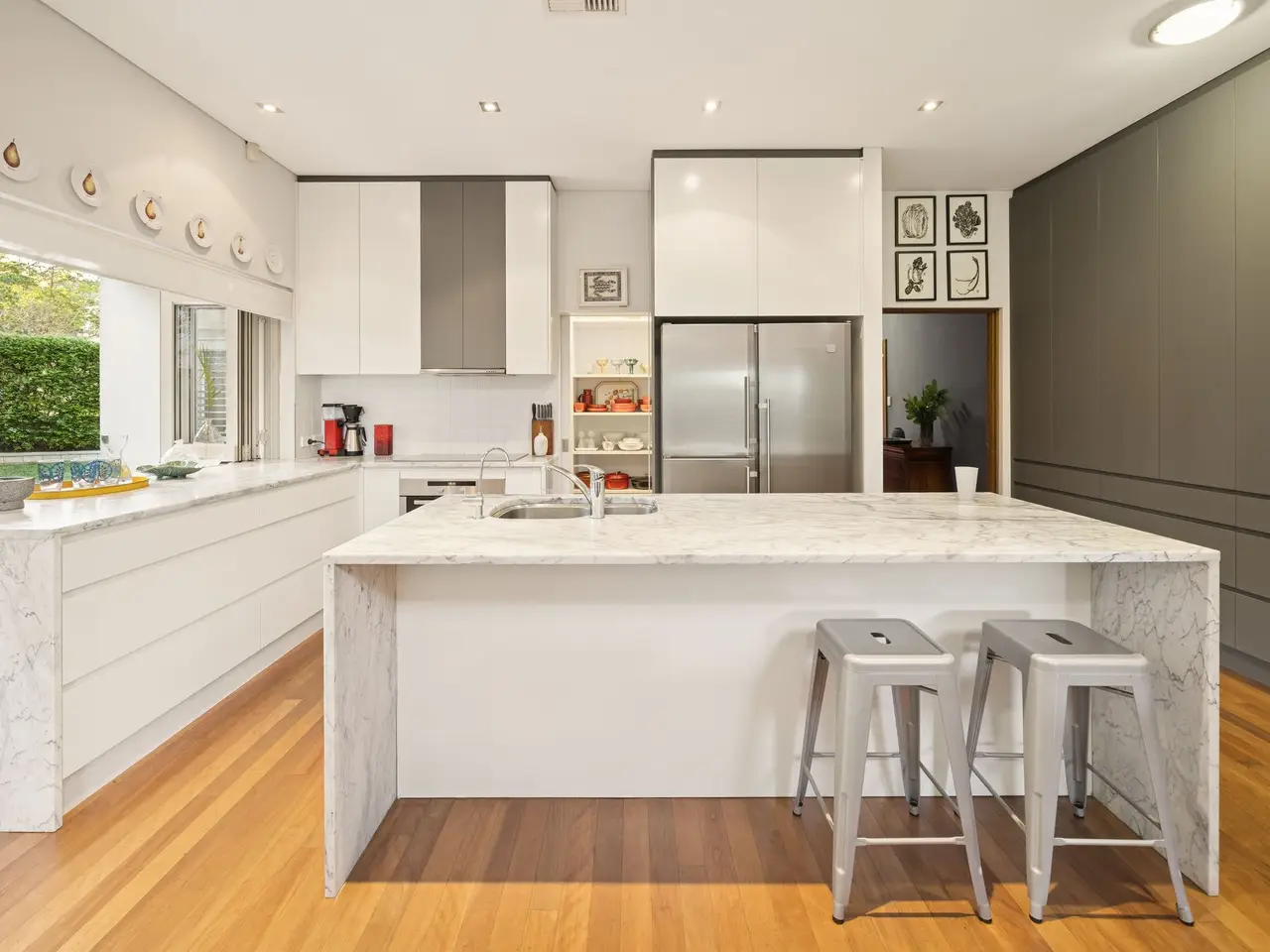 Nestled within Strathfield's dress circle locale, this grand family residence exemplifies timeless sophistication, quality craftsmanship and resort-inspired living. Enveloped by tropical gardens and framed with palms, the north-facing home unfolds over an elegant dual-level design while balancing luxury, space and family comfort. With its custom-appointed interiors, seamless indoor/outdoor transitions and collection of living spaces, this home is an address of refined distinction, enviably set just 1km from Strathfield Station, Plaza, cosmopolitan dining and elite schools. - Expansive living/dining zones enhanced with double-height ceilings, highlight windows and custom library cabinetry - Flawlessly landscaped tropical gardens surround the resort-style swimming pool and covered poolside terrace - The backyard is private and well-maintained, creating an idyllic setting for year-round entertaining and dining - Gourmet kitchen features a breakfast bar, premium appliances and a bi-fold servery that opens to the alfresco dining area on an expansive deck and BBQ area with beautiful garden views - Five generous bedrooms, each appointed with built-in robes and plush carpets, plus a dedicated study for work or leisure - Luxe master bedroom is complete with an ensuite bathroom, walk-in robe and adjoining study retreat - Three designer bathrooms reveal floor-to-ceiling tiles, the Master ensuite features Italian marble, separate baths and showers, finished with refined fittings - A large walk-in wine cellar with installed rack capacity for more than 300 bottles - Plantation shutters, polished timber floorboards, plush carpets, ducted air-conditioning and shadow-line ceilings - Opulent design palette blends rich textures and bespoke finishes to create an atmosphere of refinement - Perfect for growing families or discerning buyers seeking a statement home in a blue-ribbon enclave - Double garage, ample storage and a premier location within walking distance of Strathfield's amenities