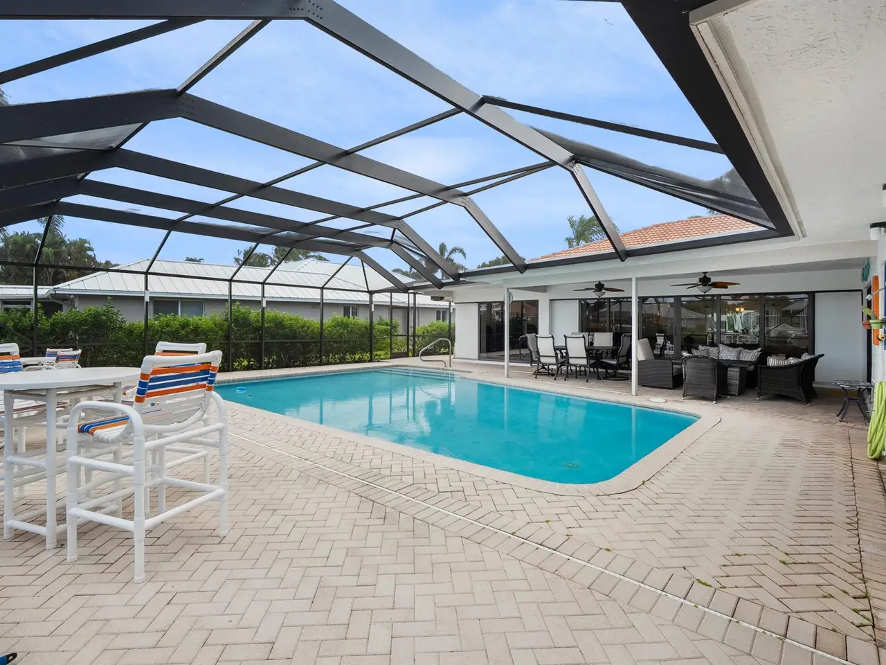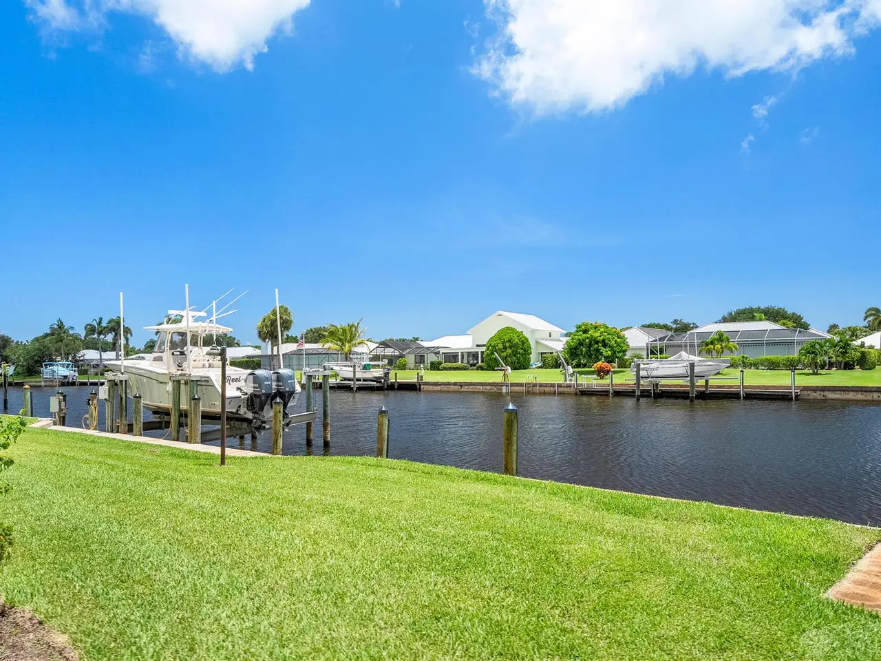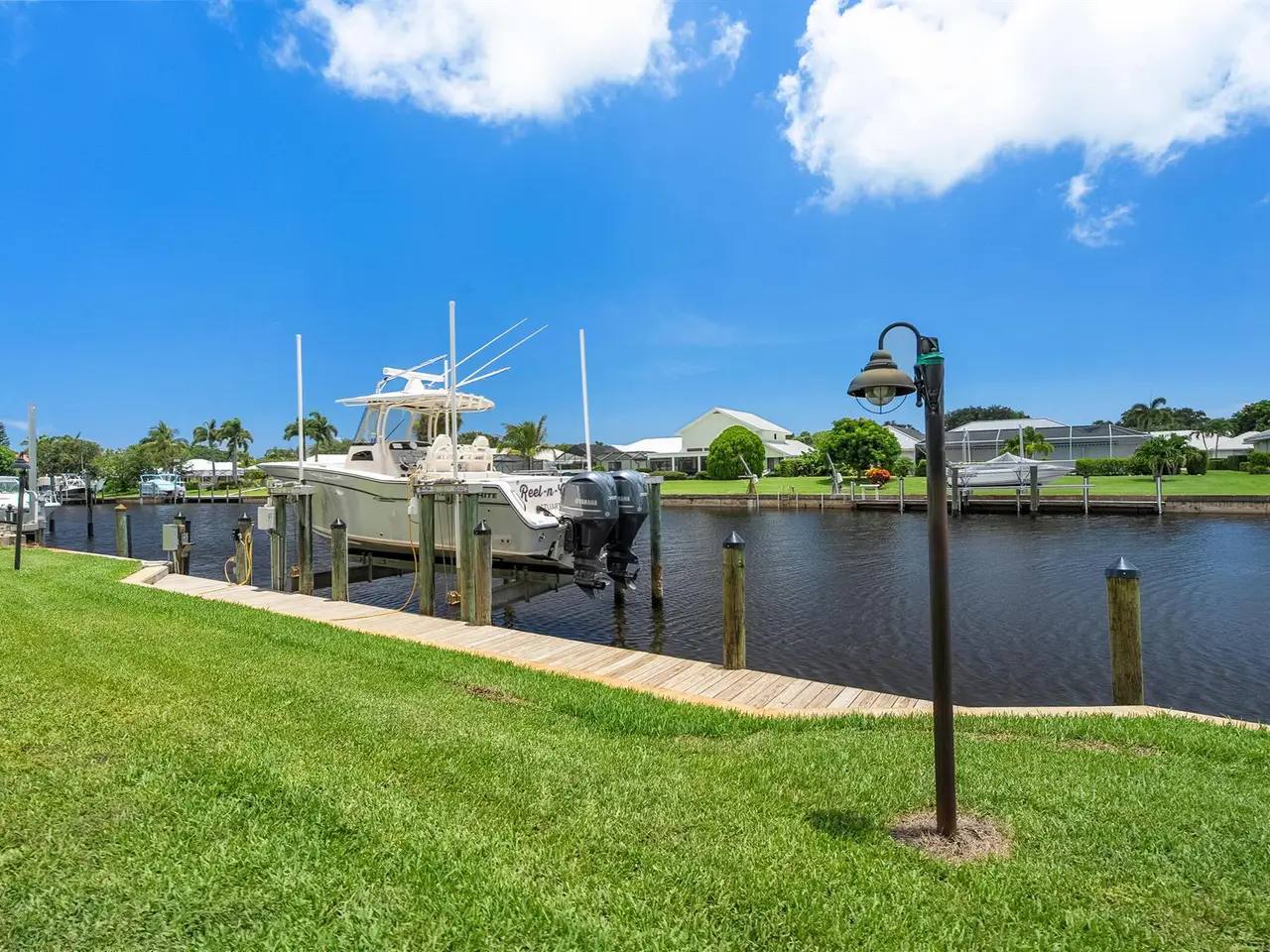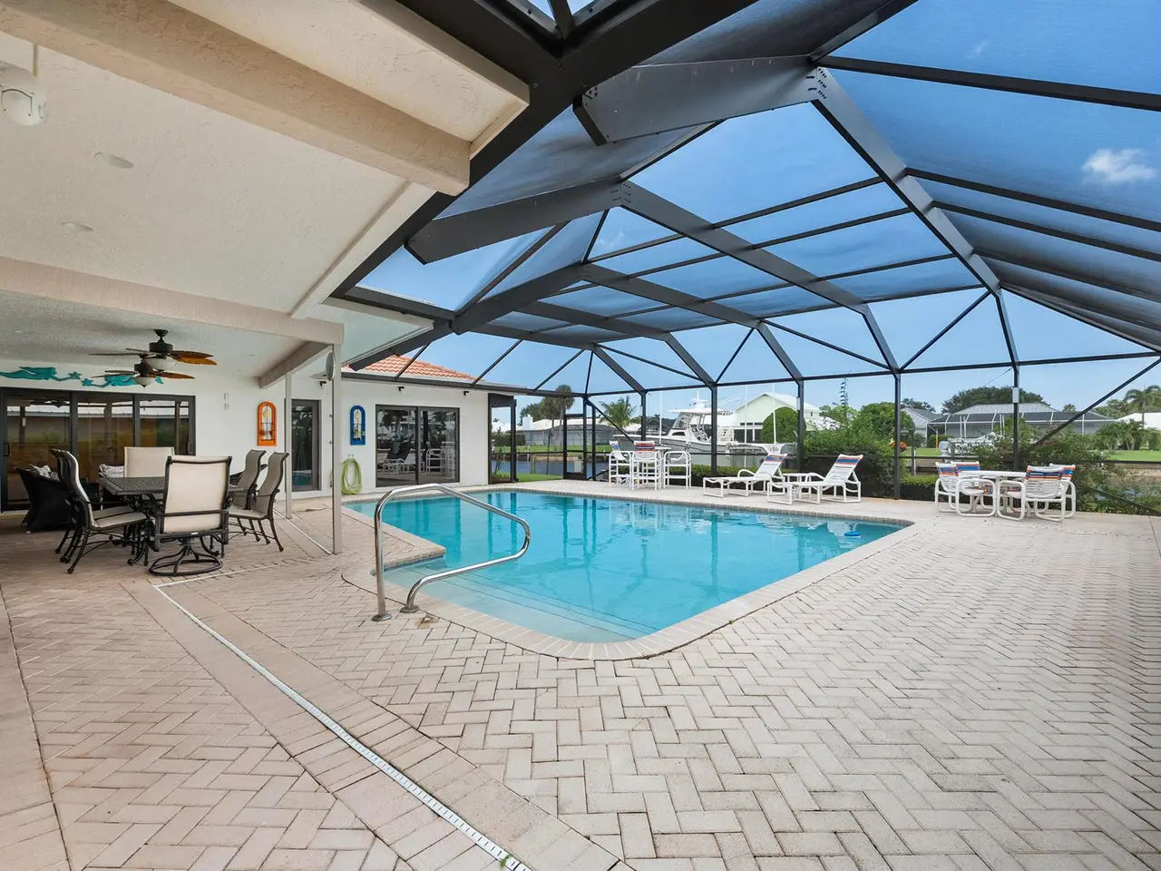 Welcome Home to your impeccably renovated 3-bdrm, 3-bath waterfront home with private dock located in the prestigious, guard-gated Stuart Yacht & Country Club. Perfectly positioned on a quiet cul-de-sac with direct canal access, this residence blends luxury living with effortless coastal charm. Designer chef's kitchen boasts custom cabinetry, Thermidor 6‑burner gas range & wall oven, wine fridge and newer S/S fridge, dishwasher & microwave. Airy and open living area perfect for entertaining or just relaxing, impact glass window's/sliders throughout, owner's suite w/ spa bath; 2 en‑suite guest rooms. Step through the sliders to your newly screened lanai and stunning pool! 30,000 lb boat lift with newer Seawell cap and tiebacks (2019). Enjoy this low HOA gated community with golf