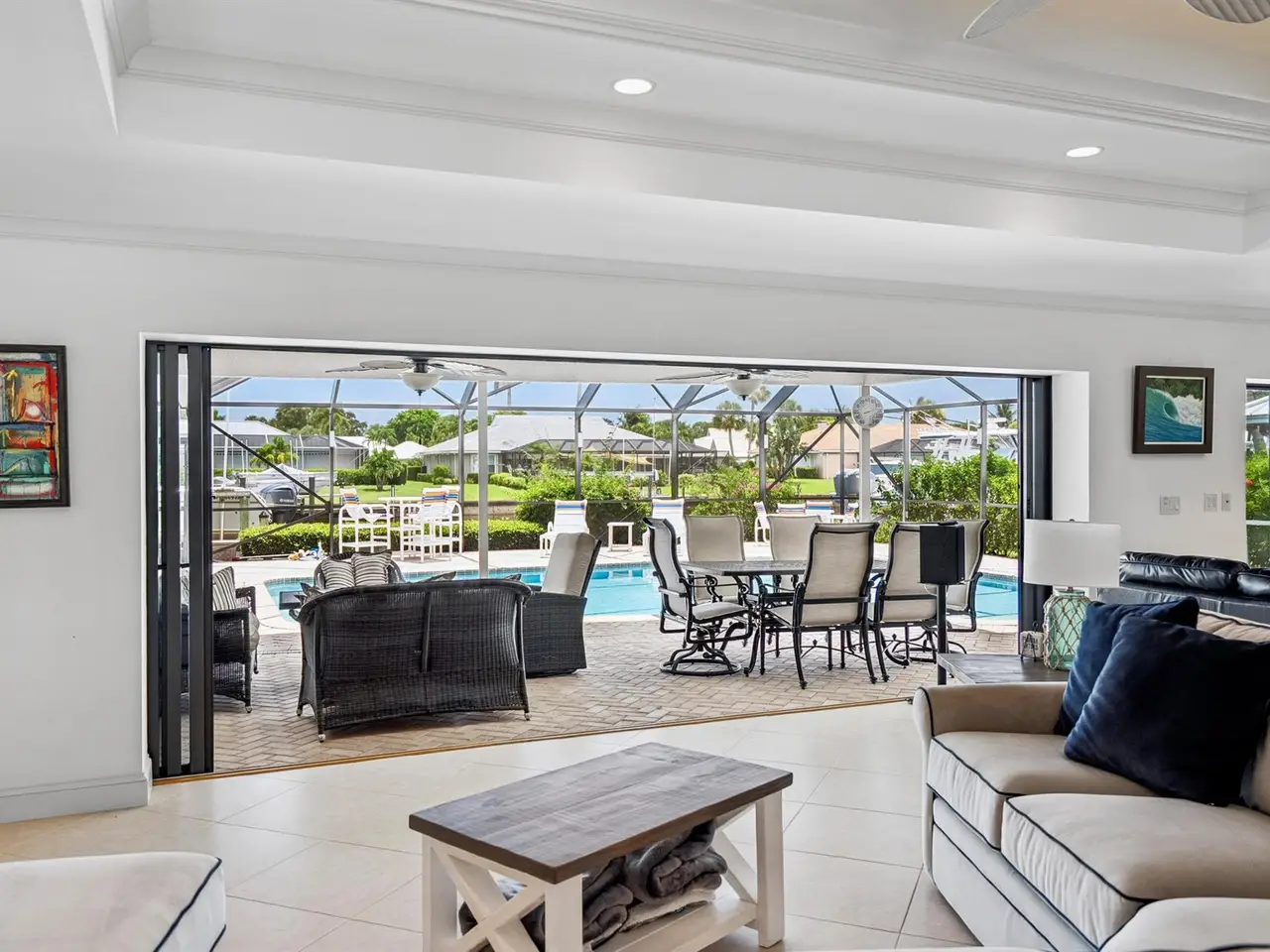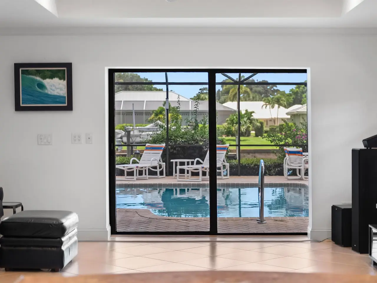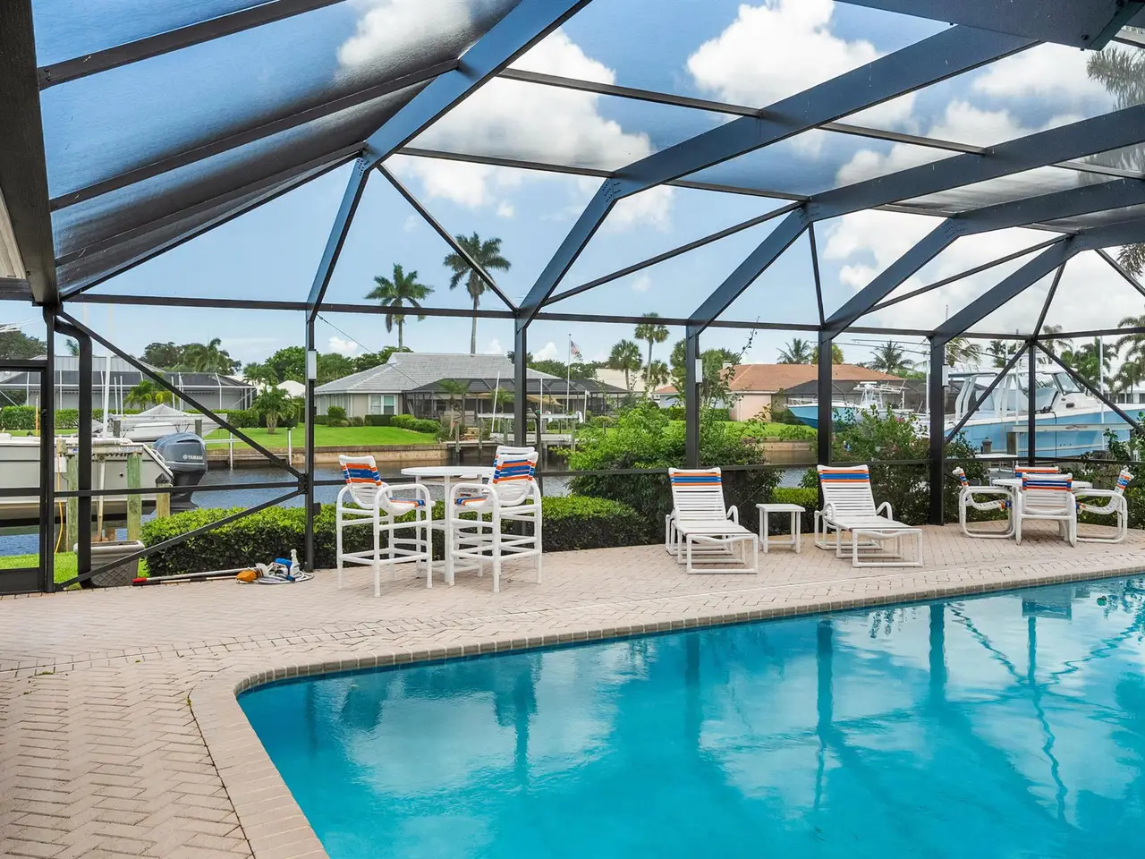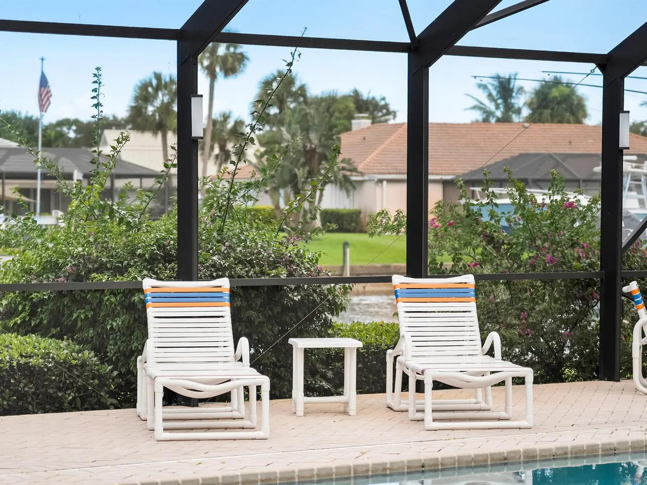 Welcome Home to your impeccably renovated 3-bdrm, 3-bath waterfront home with private dock located in the prestigious, guard-gated Stuart Yacht & Country Club. Perfectly positioned on a quiet cul-de-sac with direct canal access, this residence blends luxury living with effortless coastal charm. Designer chef's kitchen boasts custom cabinetry, Thermidor 6‑burner gas range & wall oven, wine fridge and newer S/S fridge, dishwasher & microwave. Airy and open living area perfect for entertaining or just relaxing, impact glass window's/sliders throughout, owner's suite w/ spa bath; 2 en‑suite guest rooms. Step through the sliders to your newly screened lanai and stunning pool! 30,000 lb boat lift with newer Seawell cap and tiebacks (2019). Enjoy this low HOA gated community with golf