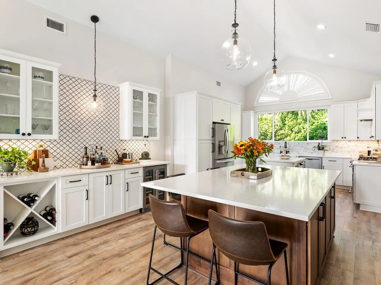 This Downtown Stuart-area home exudes true Florida style with functionality. Pride of ownership is felt the moment you cross the front door. New impact glass windows & doors, a reconfigured kitchen with large gathering island, & bar area beckon the true entertainer. Separate living room offers picture window views of the lush landscaping. Additional sitting area with accent fireplace. Garage doubles as an air-conditioned life/workspace. Outside, the home shines day or night, with multiple seating areas, plunge pool, gas-fed firepit, and water feature. Upgrades include home generator, 2023 new roof, owned solar panels & SPAN home center. A bonus, 40-plus foot dock at the Outrigger Harbour Marina (Jensen Beach) & 24k lift offered for $325