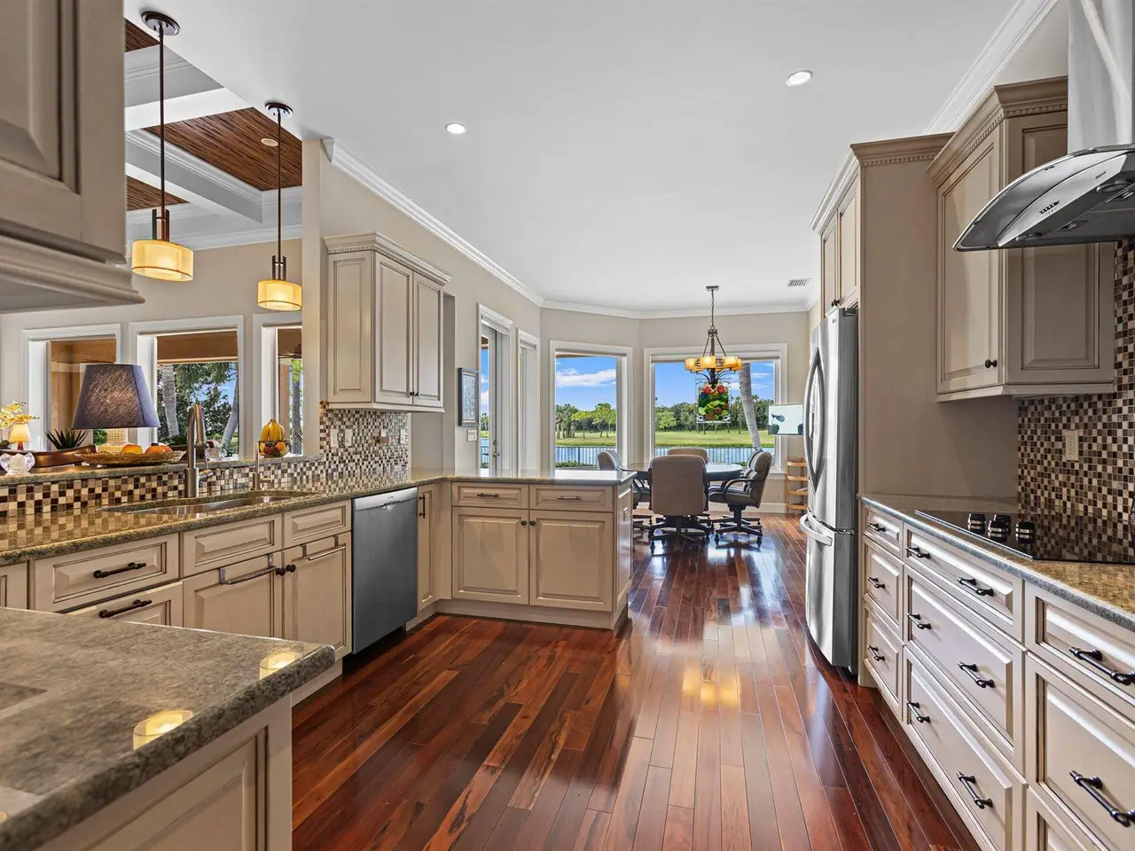 If you want arguably the best wide sweeping private views of lakes & fairways in the distance at Mariner Sands, look at this home. One of the newest concrete block homes in this country club community. Top of the line everything inside from the coffered ceiling with pecky cypress inlays to the impact resistant windows to the gorgeous wood floors. High ceilings. Gourmets delight open kitchen with all the upgrades. Split bedroom design offering privacy for the master suite. Cul-de-sac location offering no thru traffic. Huge lot. Over 1/2 acre in size. 221 feet of lake frontage in the back yard. High elevation. Whole house generator. Golf, tennis & more!